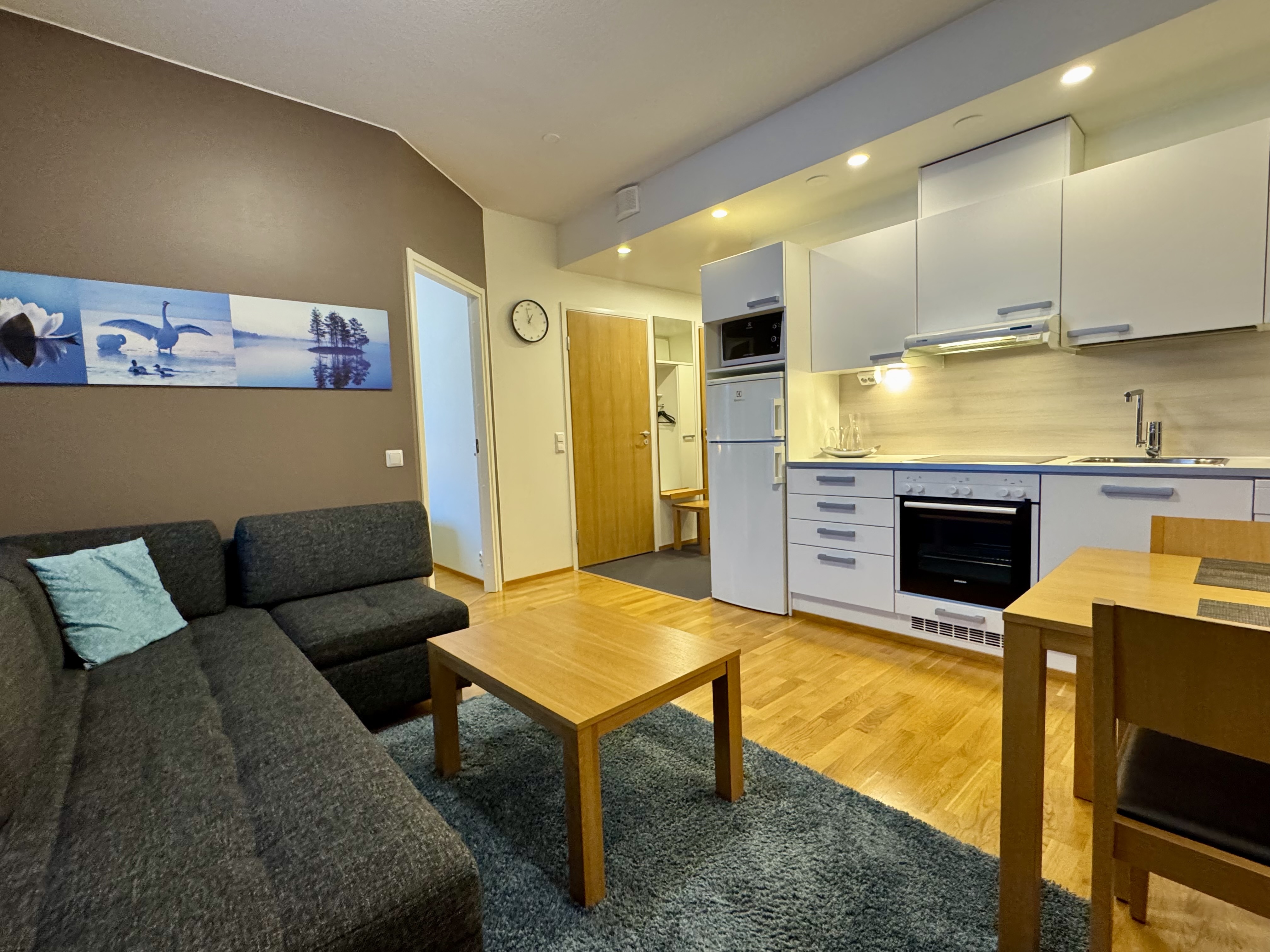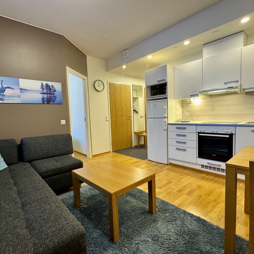Vietä lomasi aivan Rukan kylän ytimessä ja asu omassa, täydellisesti kalustetussa ja varustetussa, viihtyisässä 46 m² huoneistossa neljännen kerroksen upeissa maisemissa.
