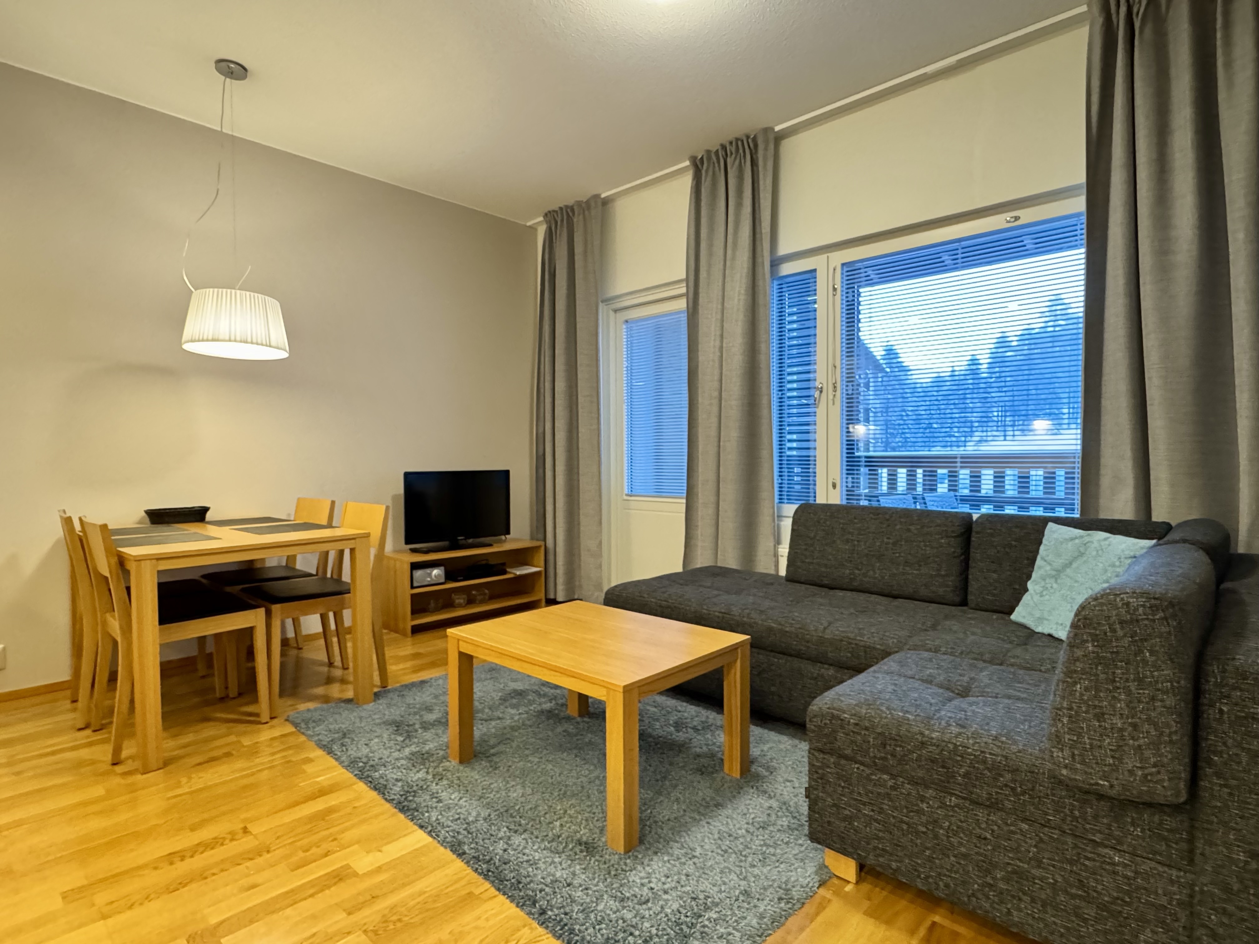 Kaikki ravintolapalvelut, harrastusmahdollisuudet, laskettelurinteet, hiihtoladut ja kaupat aivan vieressäsi, tällä lomalla et tarvitse omaa autoa.