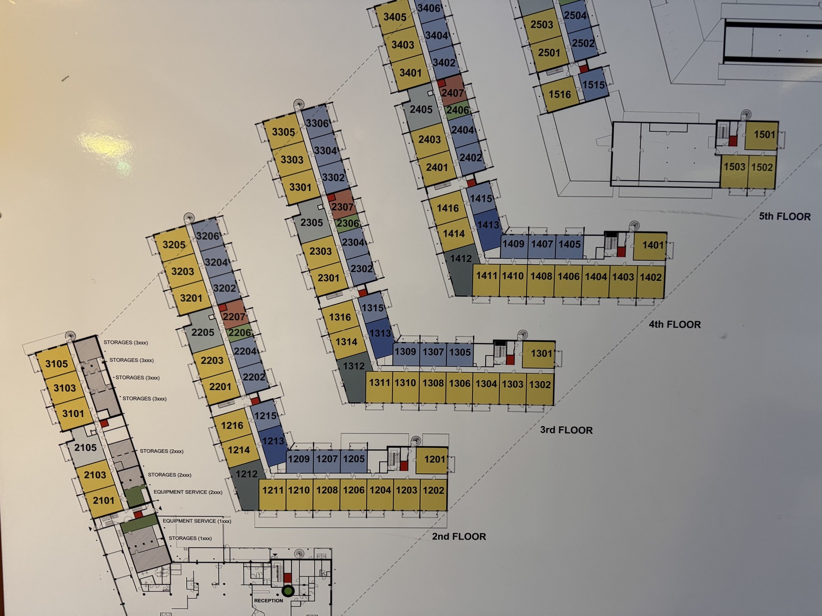 Suksivarastot Chalet 1&2 välissä ensimmäisessä kerroksessa