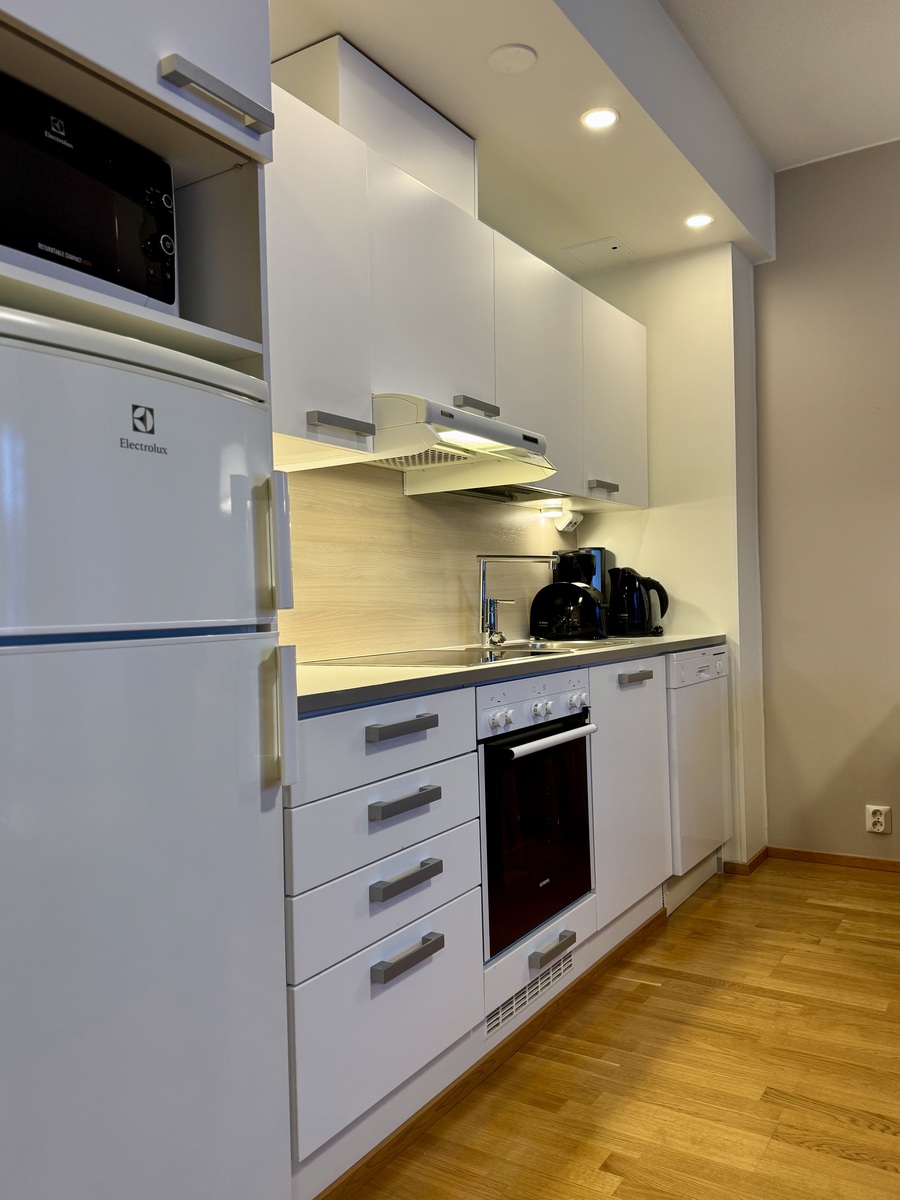 Varusteet: liesituuletin, mikroaaltouuni, astianpesukone