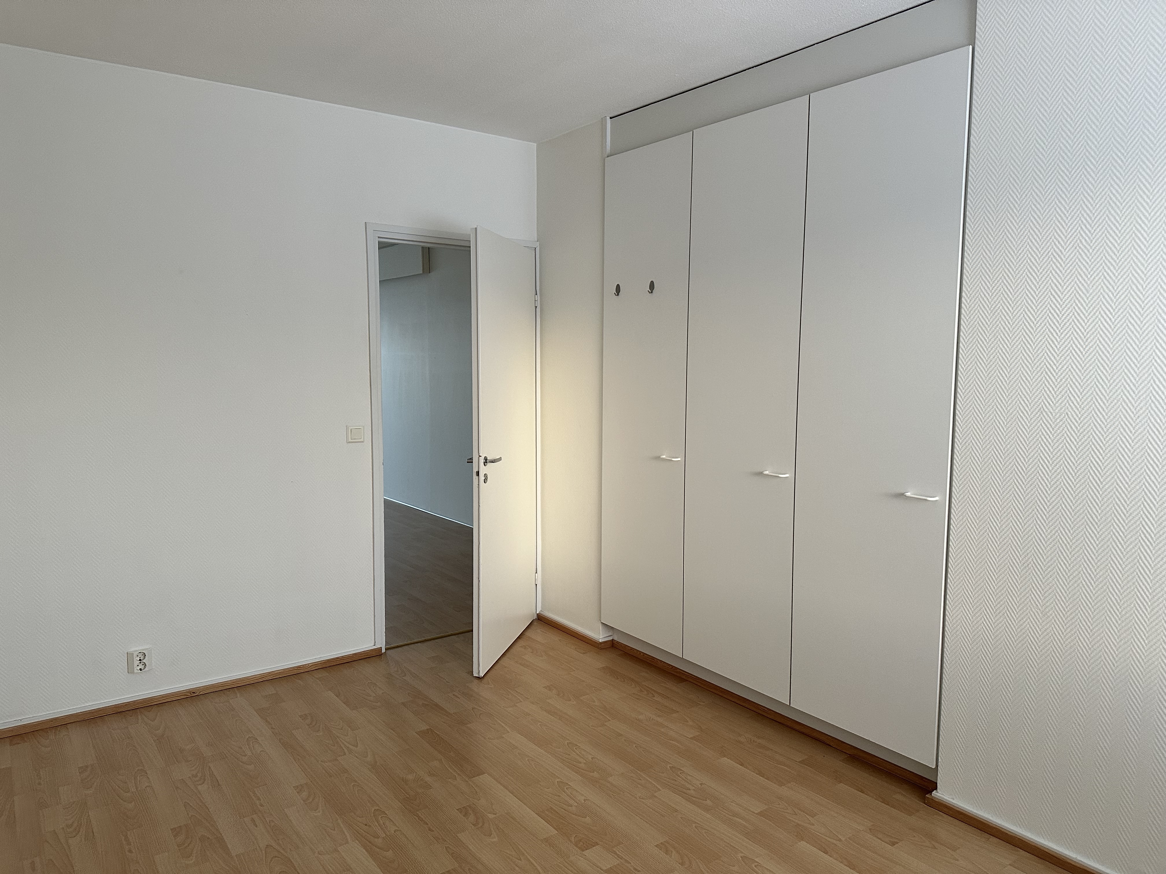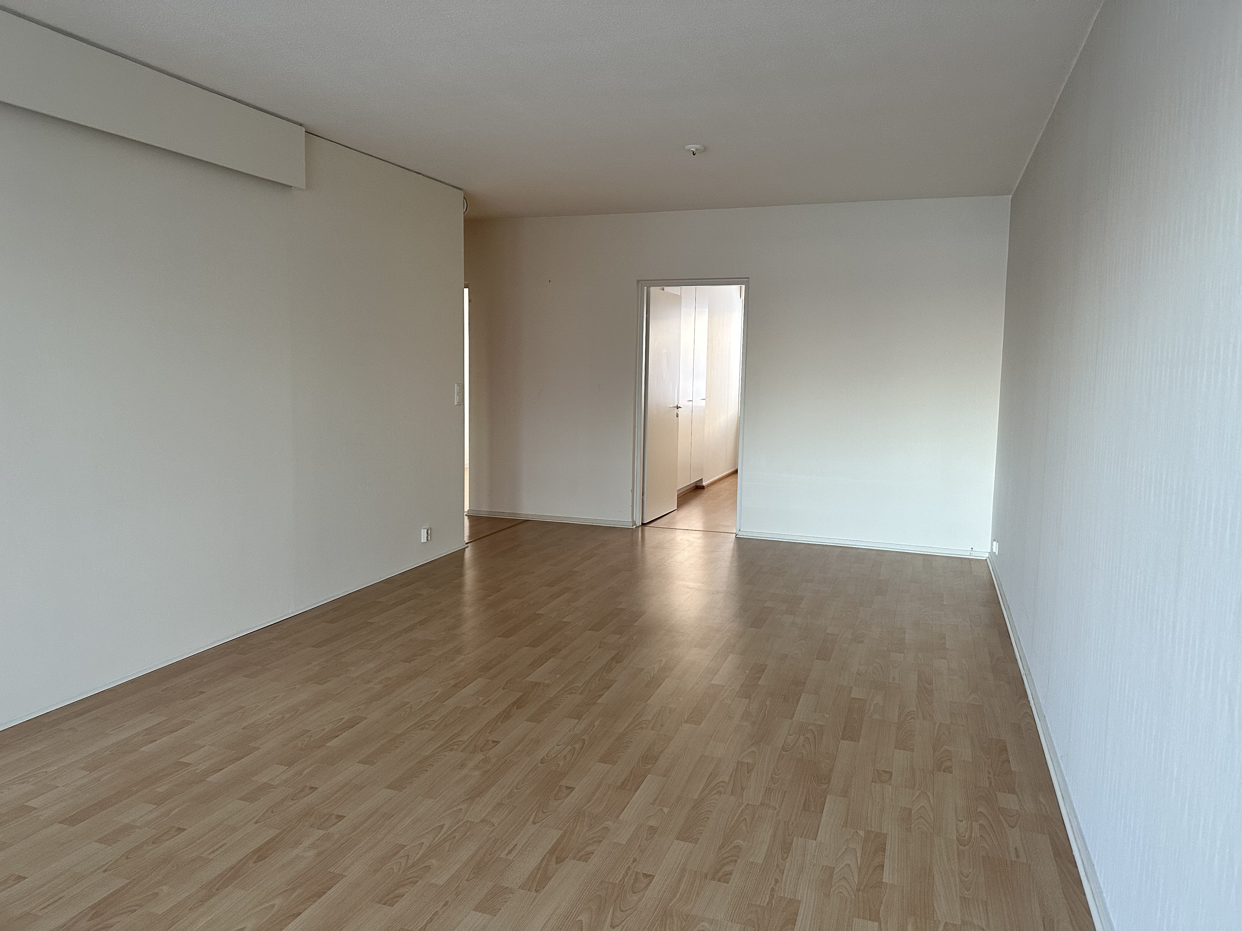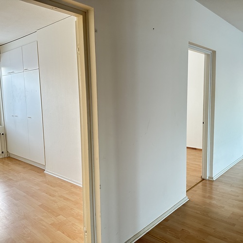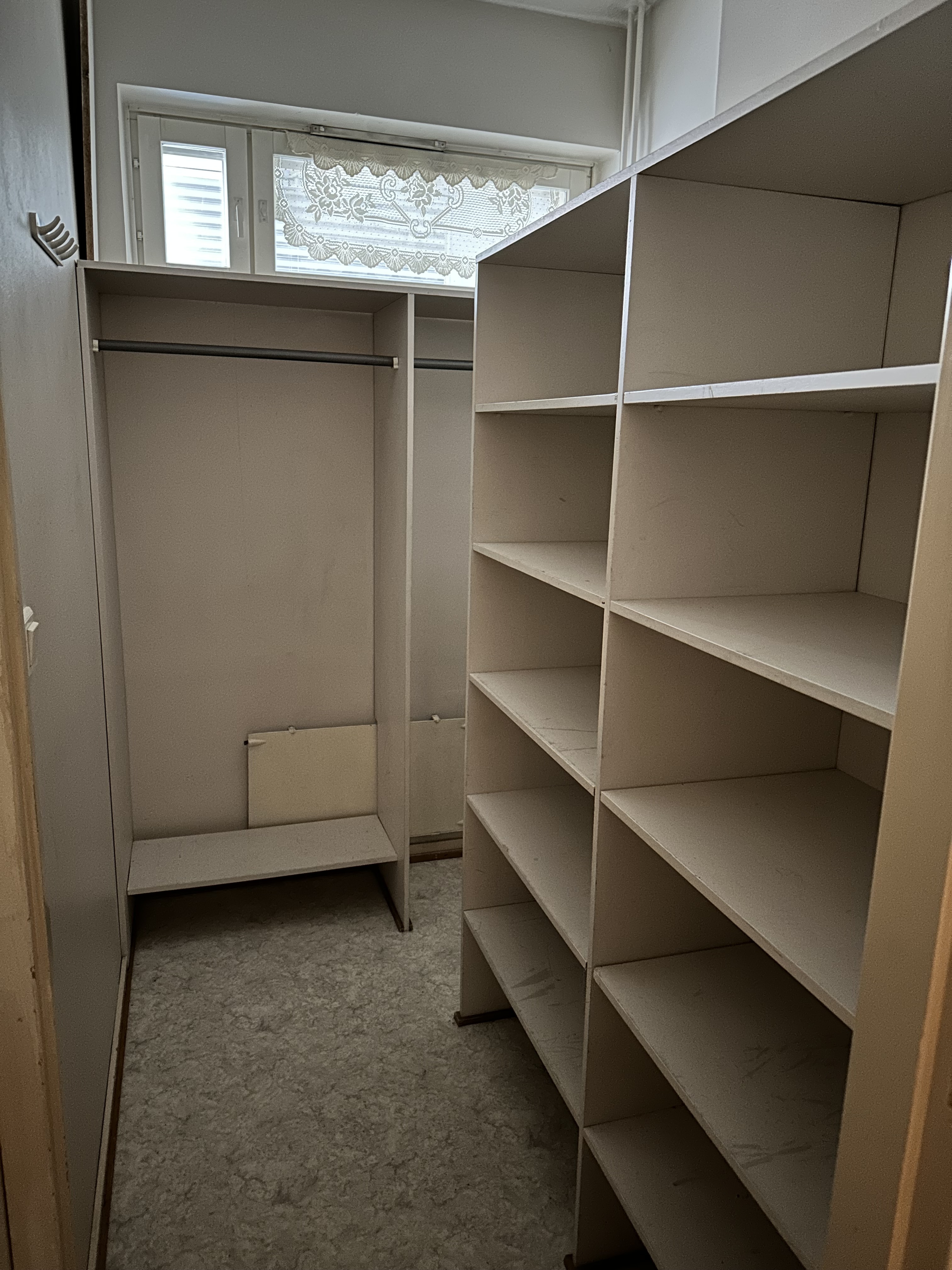 Huoneiston levyinen lasitettu parveke. Tilava vaatehuone.