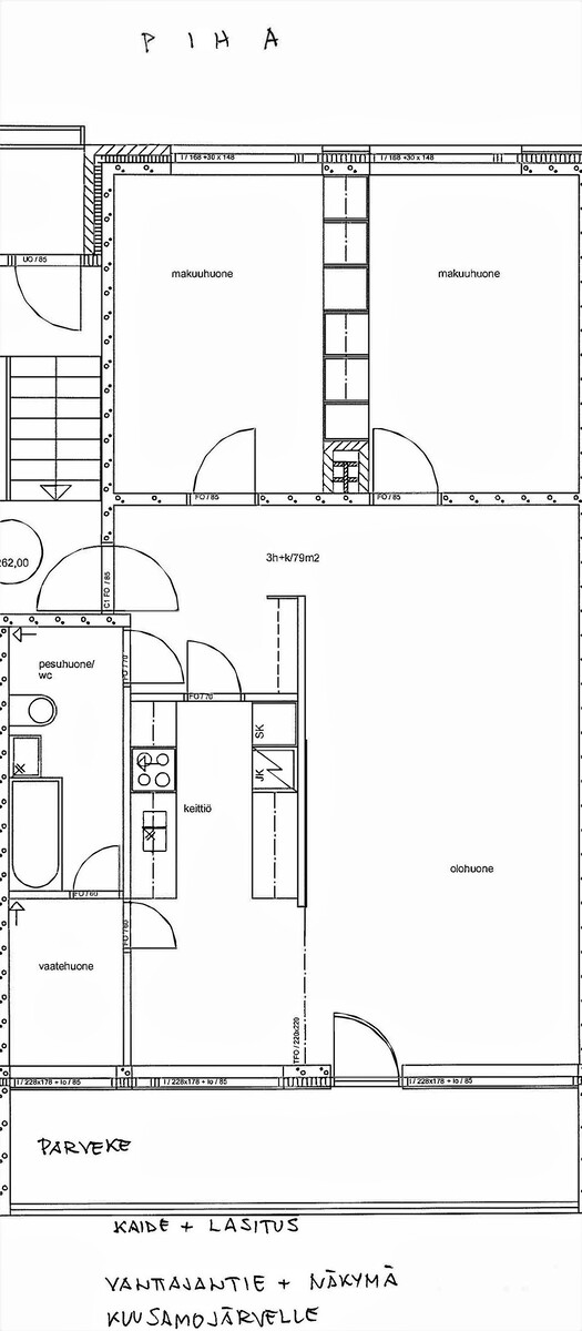 Parvekkeelta Vanttajantielle, makuuhuoneista piha-alueelle/Kitkantielle.
