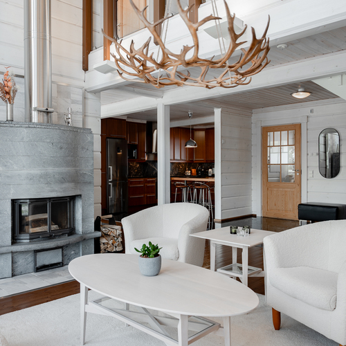 Tässä Honkarakenteen upeassa huvilassa on isot ikkunat oleskelutiloista ja yläkerran aulatilasta suoraan Rukan tunturimaisemiin. Huvila on ollut ainoastaan myyjän omassa käytössä ja tarjoaa mitä parhaimmat puitteet niin omaan kuin vuokrauskäyttöön ympäri vuoden.