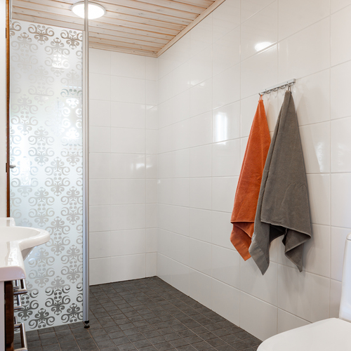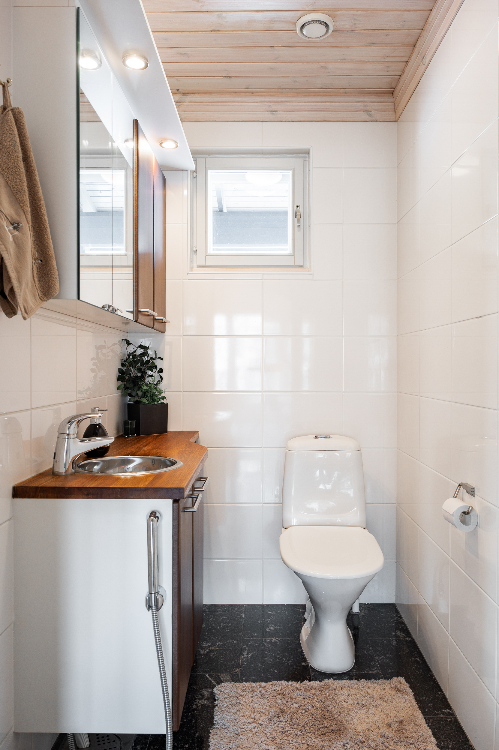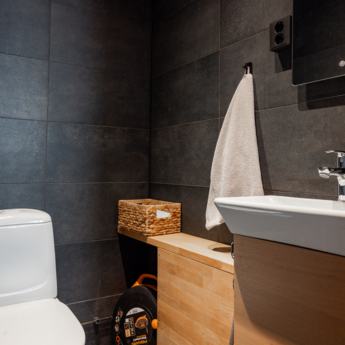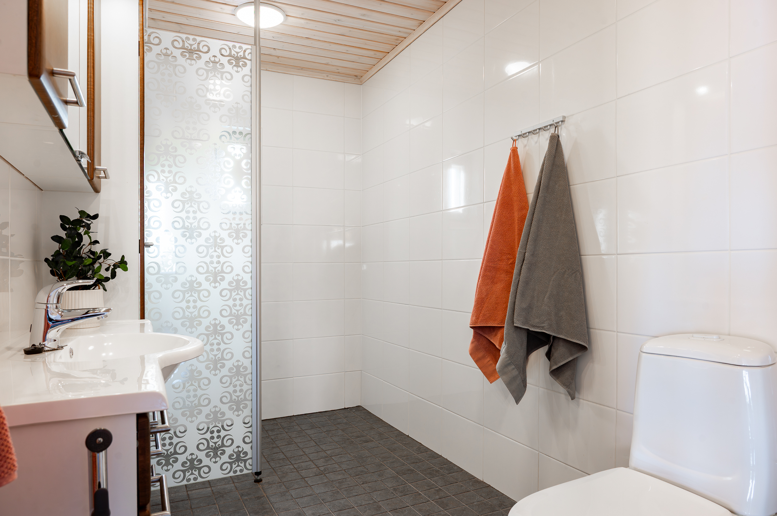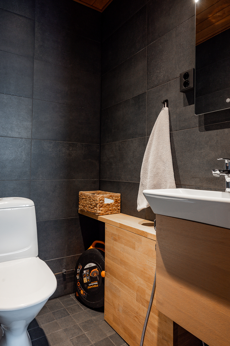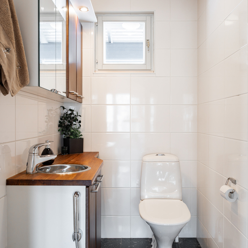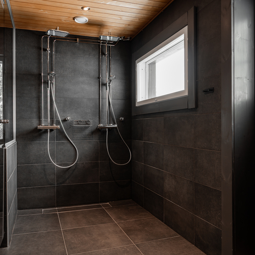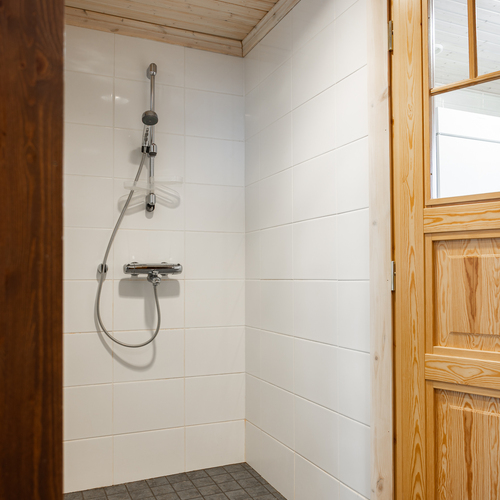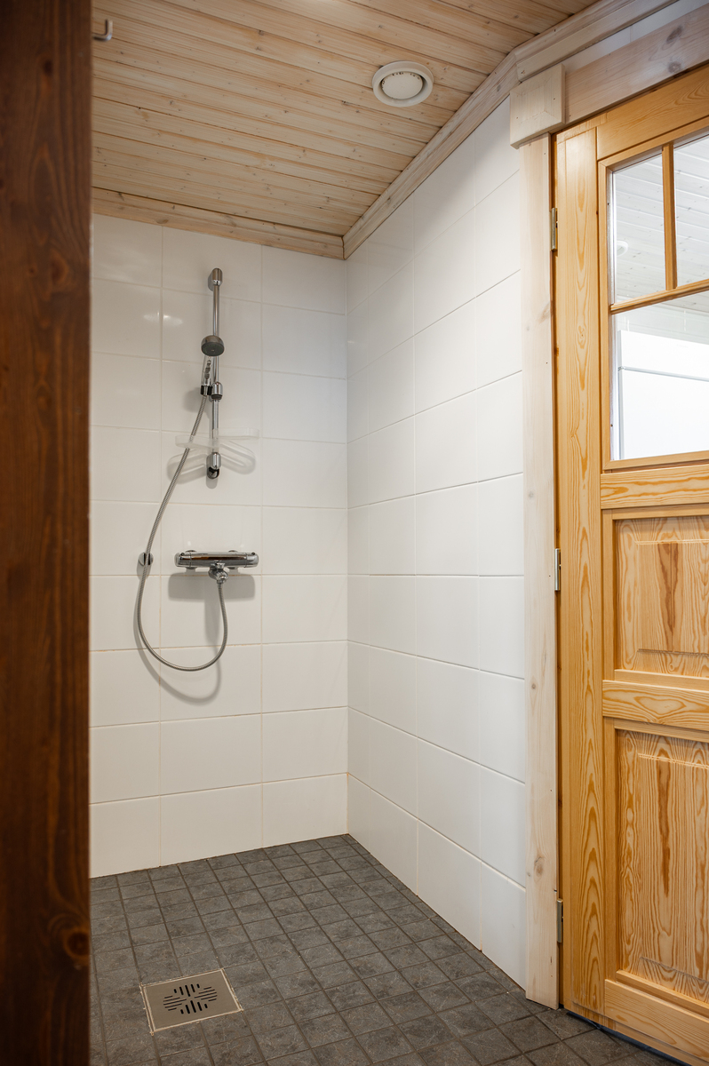 Varusteet: lattialämmitys, lattiakaivo, suihku, suihkuseinä, peilikaappi, bidee-suihku