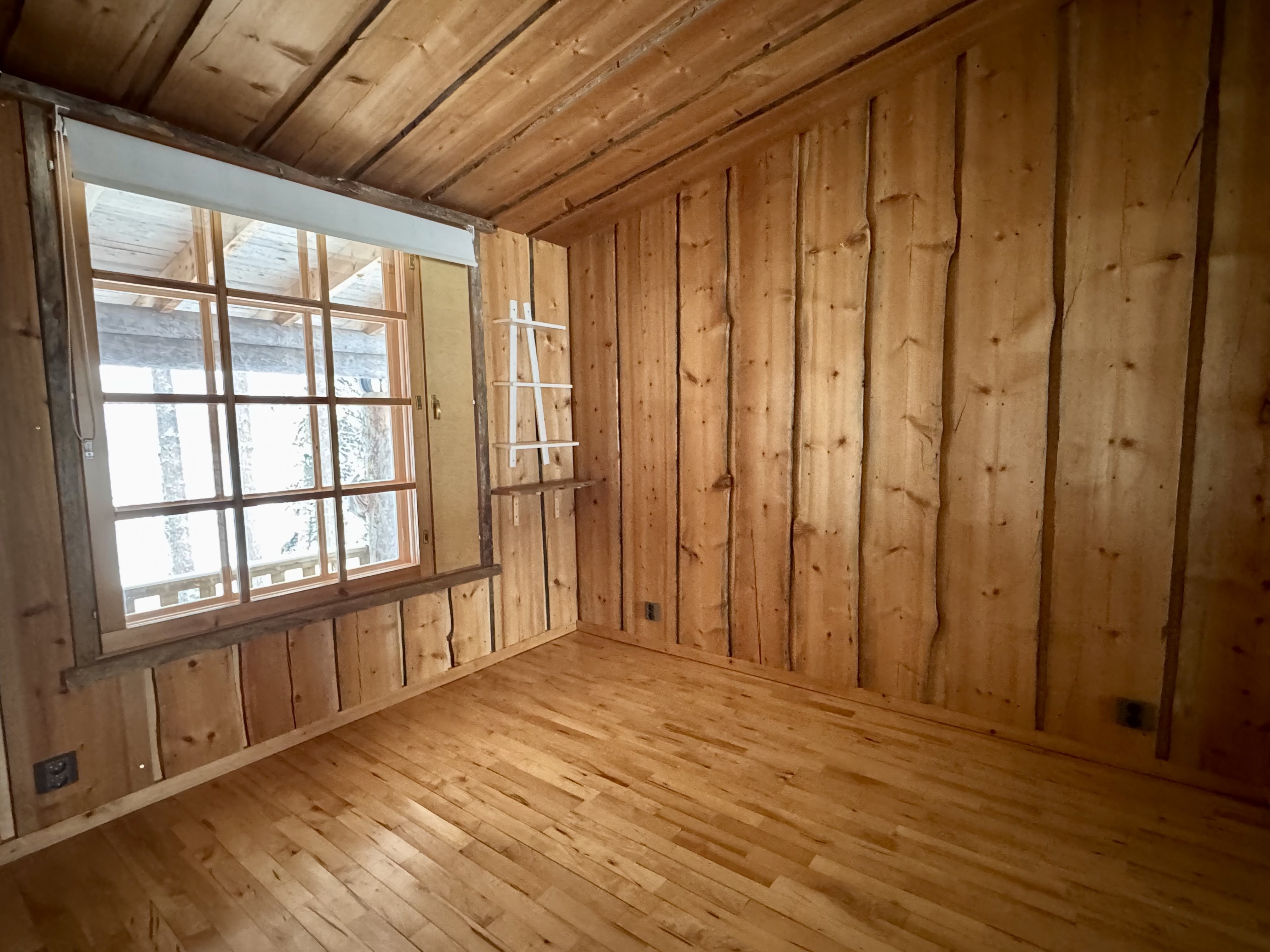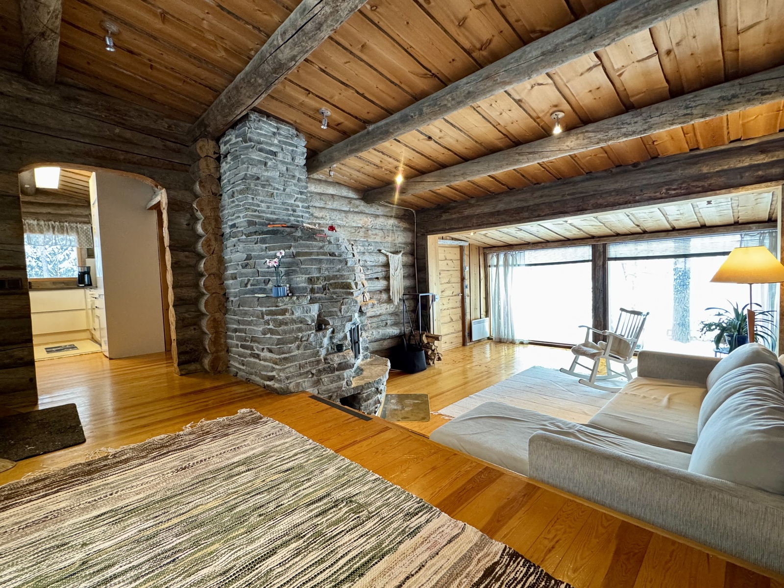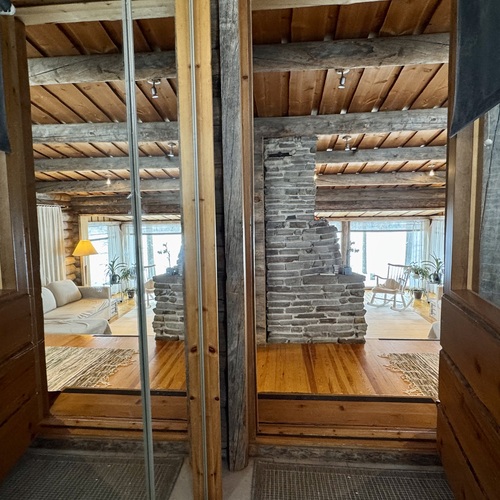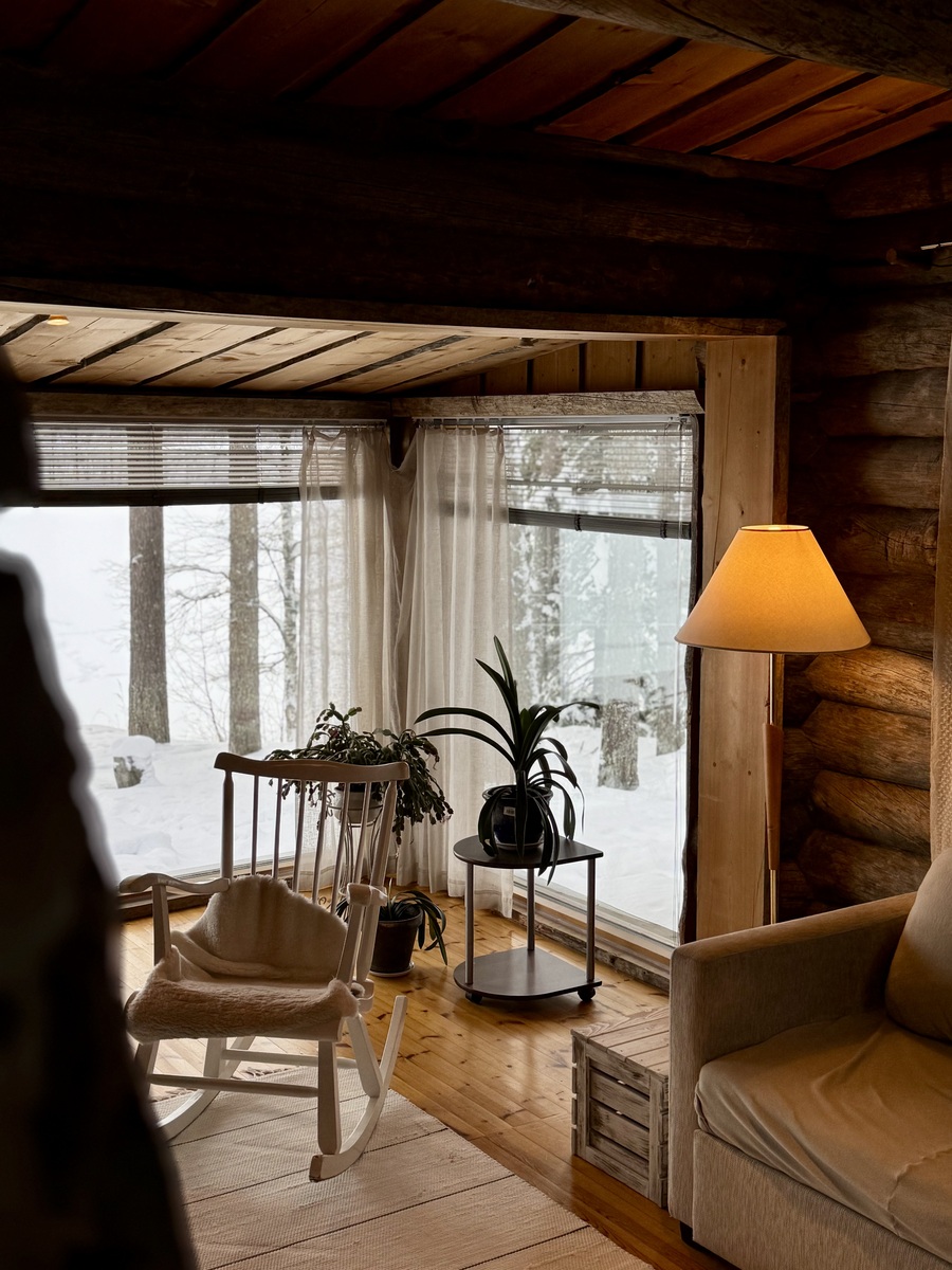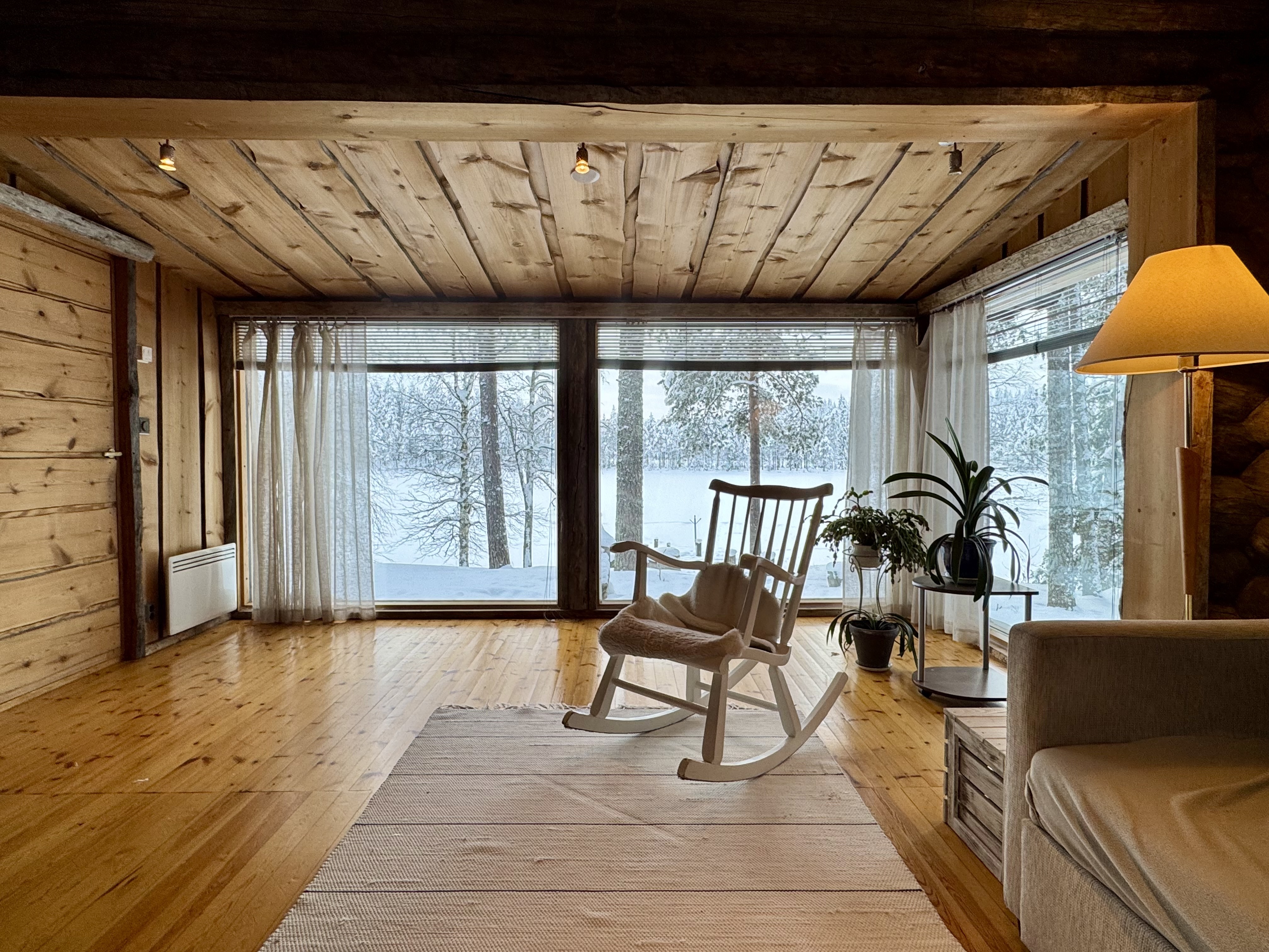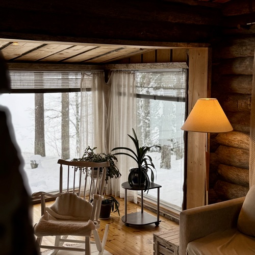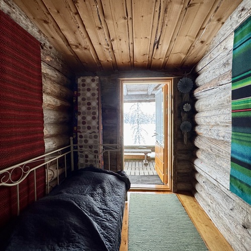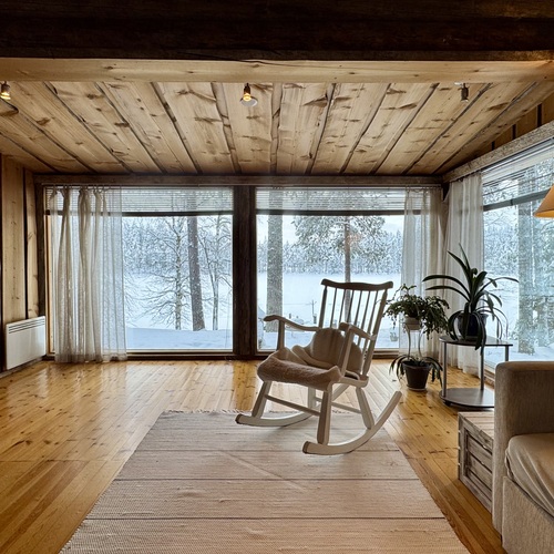 Mökki on sijoitettu tilan niemennokkaan, josta avautuvat esteettömät näkymät järvelle – maisemat, jotka muuttuvat vuodenaikojen mukana ja tarjoavat ainutlaatuista tunnelmaa ympäri vuoden. Tavallista korkeampi huonekorkeus tuo lisää tilan tuntua ja valoa.
