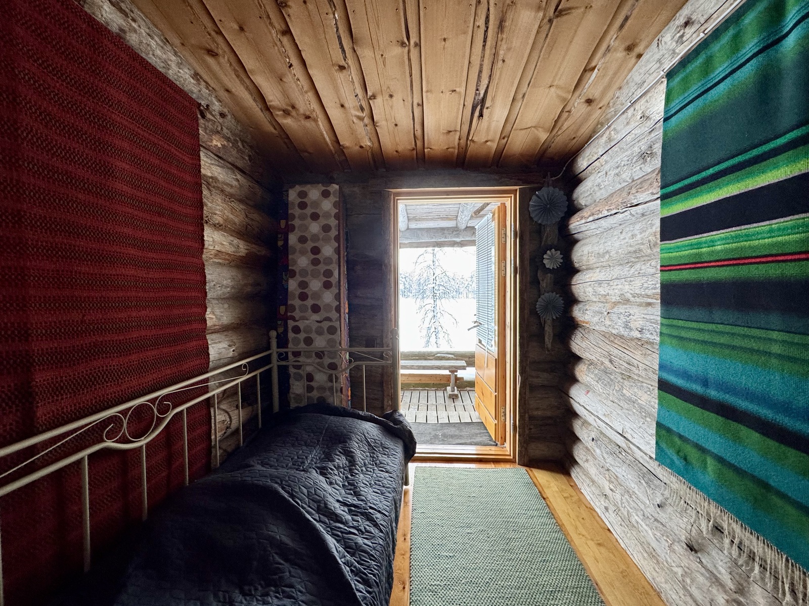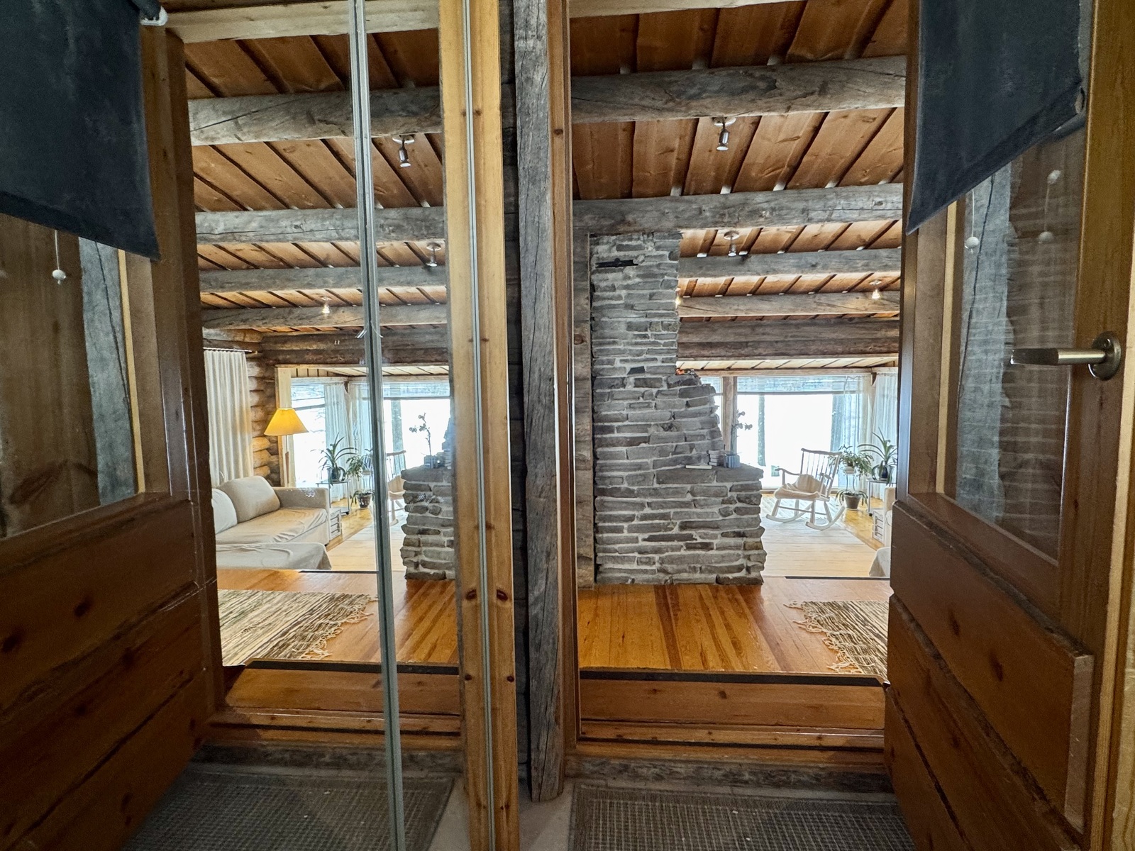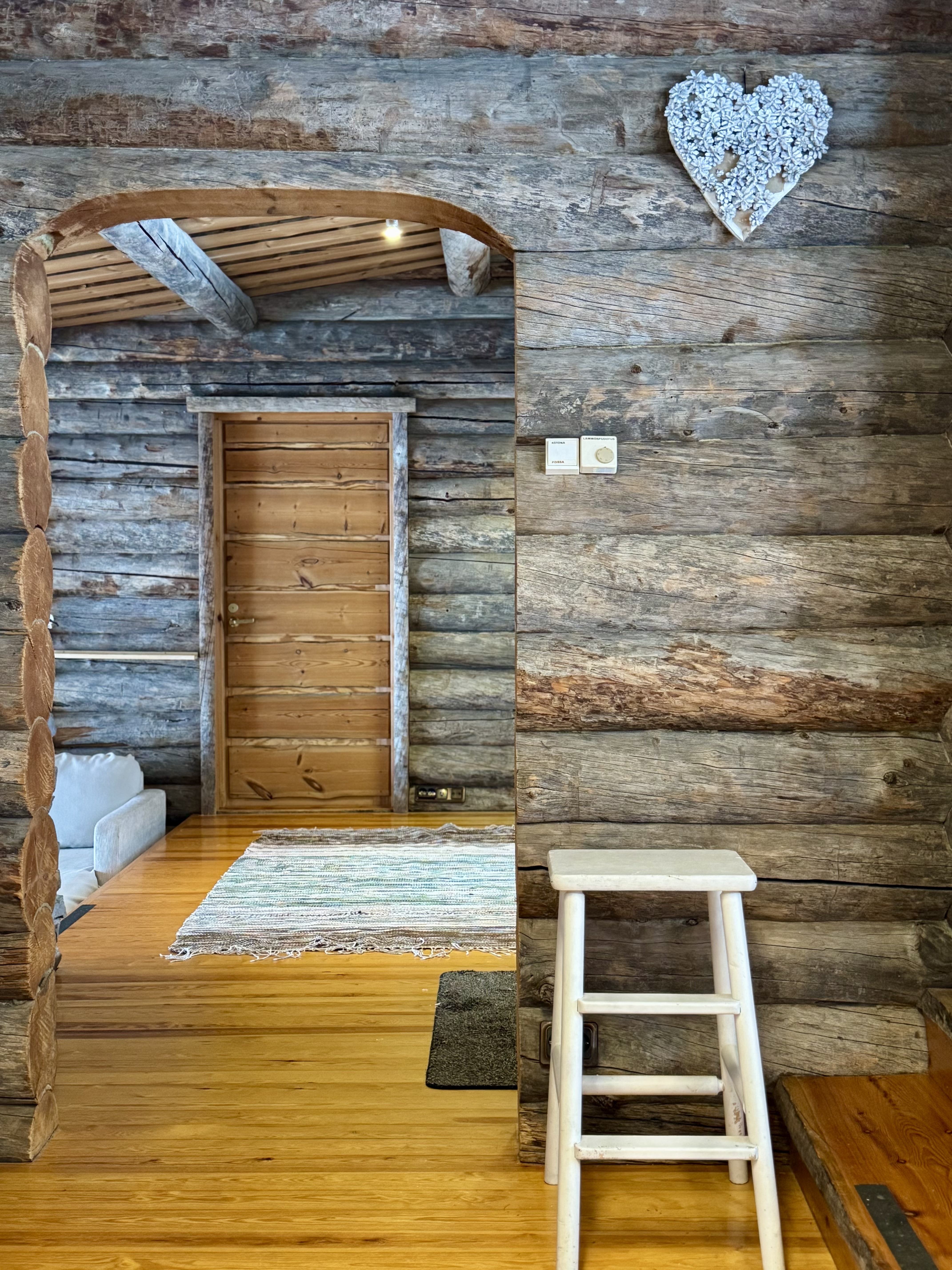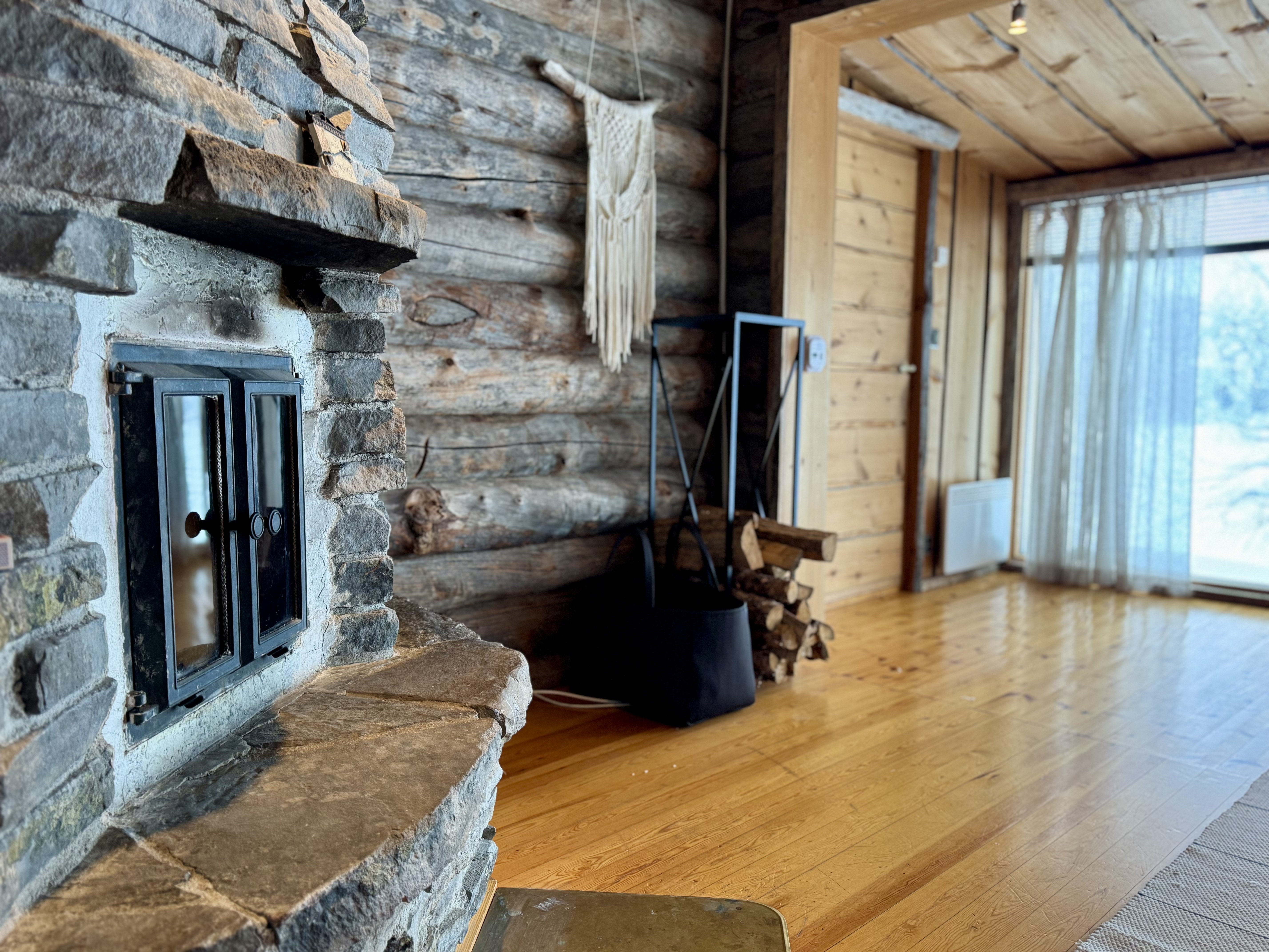 Mökki on sijoitettu tilan niemennokkaan, josta avautuvat esteettömät näkymät järvelle – maisemat, jotka muuttuvat vuodenaikojen mukana ja tarjoavat ainutlaatuista tunnelmaa ympäri vuoden. Tavallista korkeampi huonekorkeus tuo lisää tilan tuntua ja valoa.