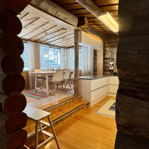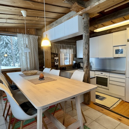 Vuonna 2002 laajennettu mökki sijaitsee rauhallisen Välijärven rannalla, vain noin 20 minuutin ajomatkan päässä Kuusamon keskustasta – täydellinen paikka luonnonrauhaa ja huolettomuutta arvostavalle.