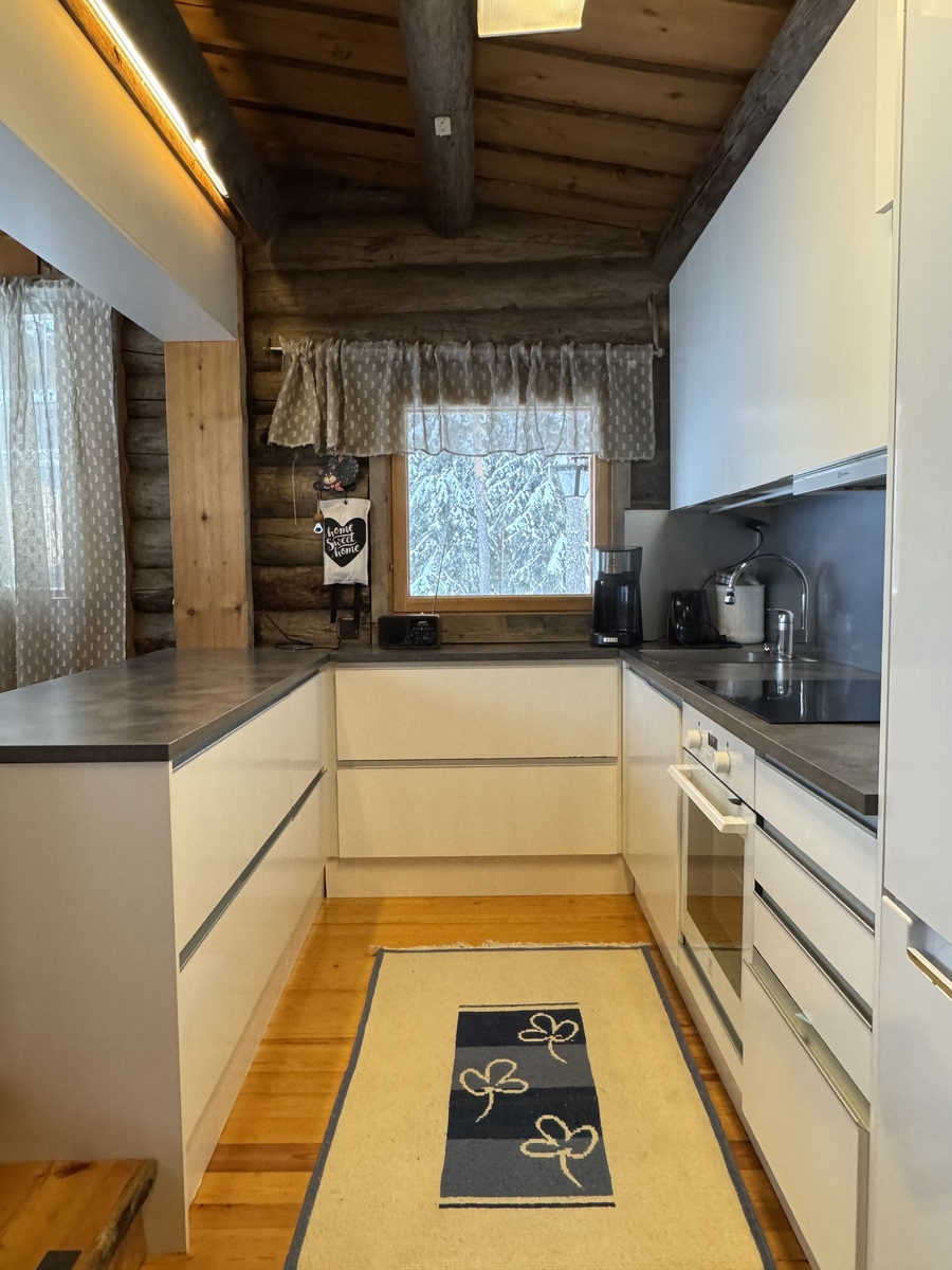 Vesi tulee Kantojärven vesiosuuskunnan vesiverkosta, turvallinen ja huoleton ratkaisu mökkikäyttöön. Keittiössä nautit myös arjen mukavuuksista kuten astianpesukoneesta.