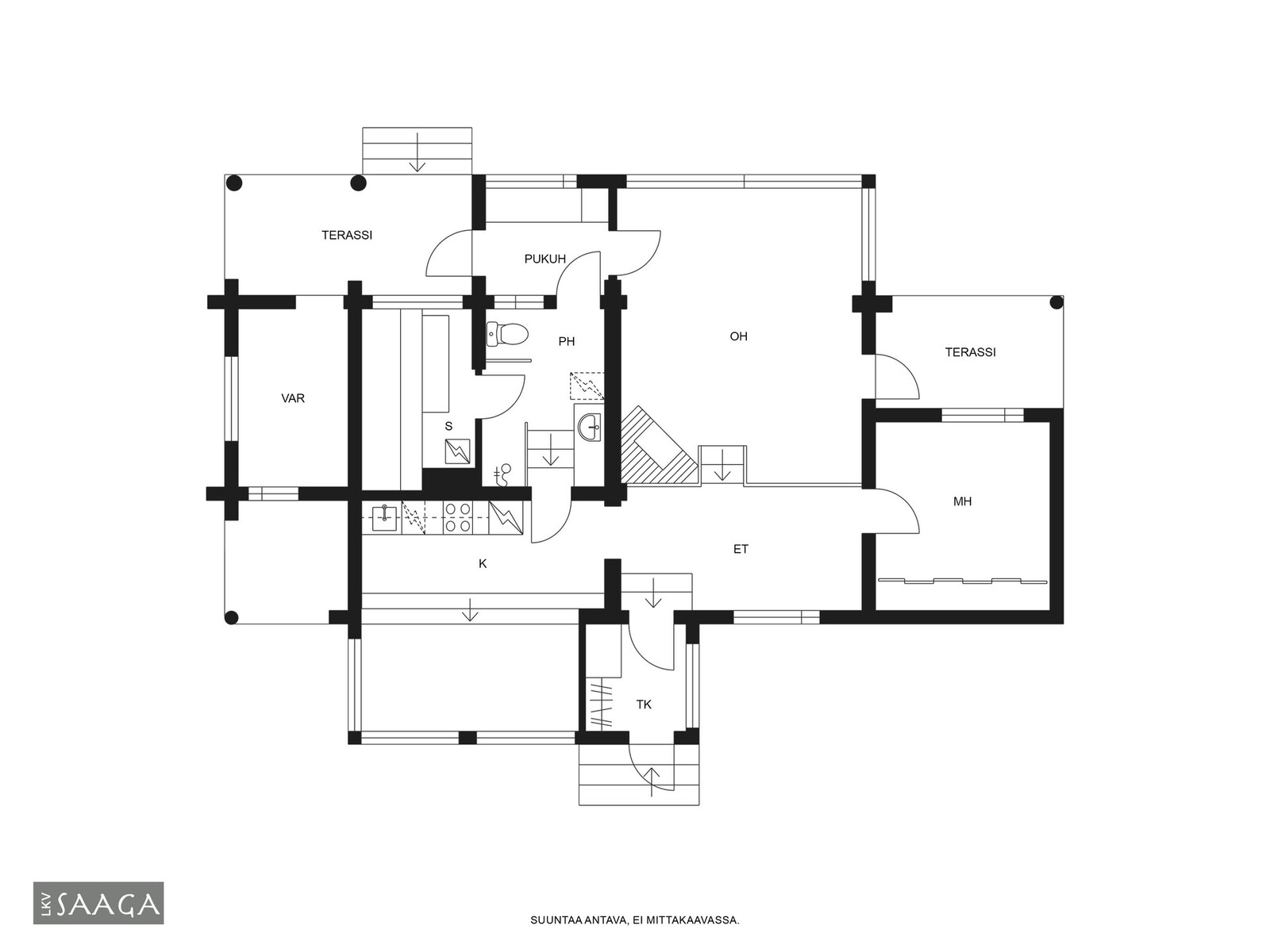 keittiön ja olohuoneen terassit tehty asuinkäyttöön.