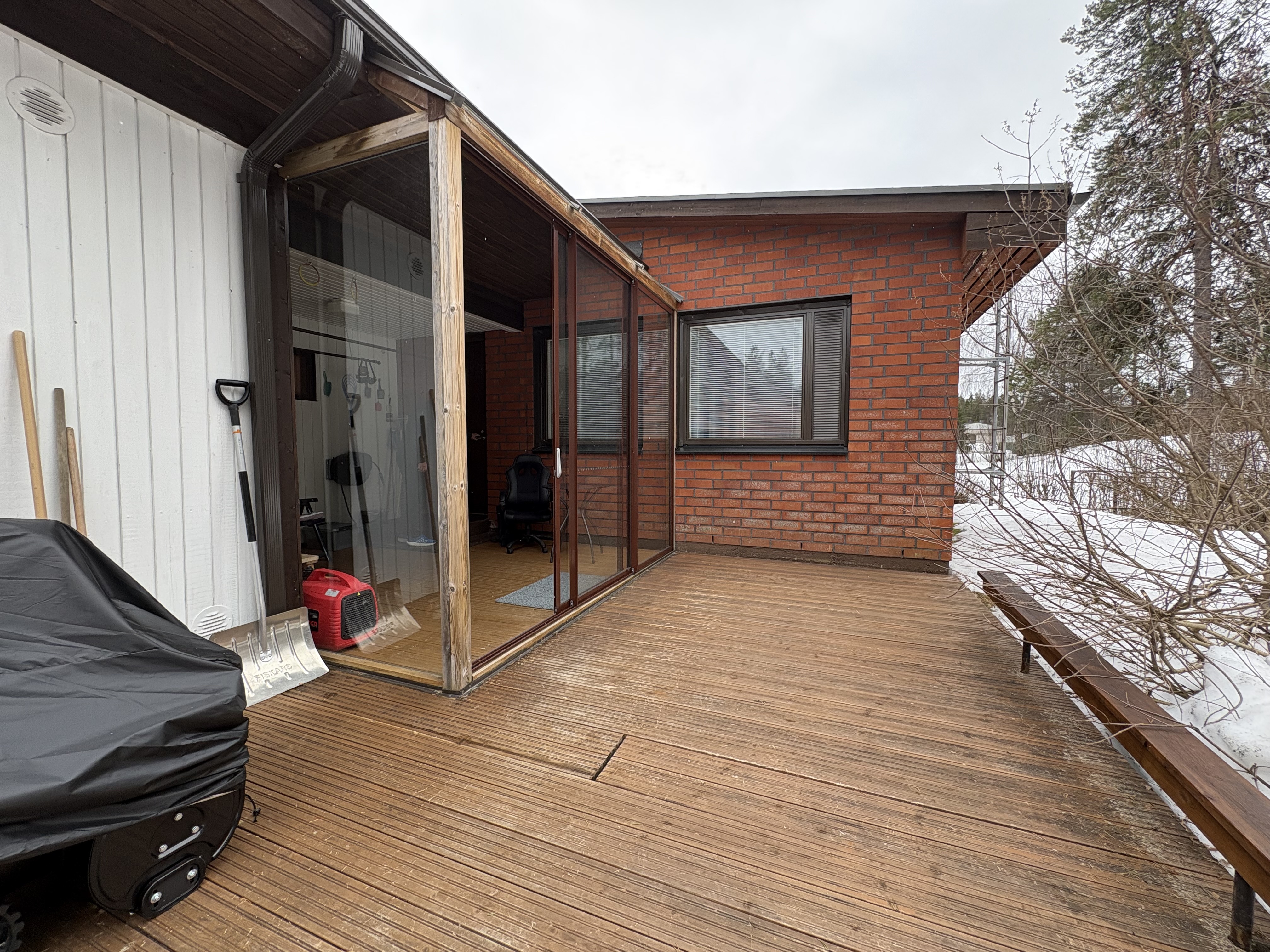 Eteinen, tuulikaappi, lasitettu terassi