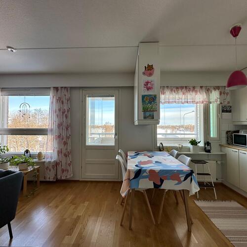 Tässä valoisassa kodissa on runsaasti ikkunoita, toimiva pohjaratkaisu ja hyvin kaappitilaa sekä upeat maisemat. Huoneistossa on väljä eteinen, yhdistetty olohuone-keittiö, makuuhuone, pesuhuone/wc/sauna sekä erillinen wc ja lisäksi lasitettu parveke Keilahallin suuntaan järvinäkymin. Kauppahintaan kuuluu myös ovellinen autokatospaikka (5 000 euroa) erillisenä osakesarjana.
