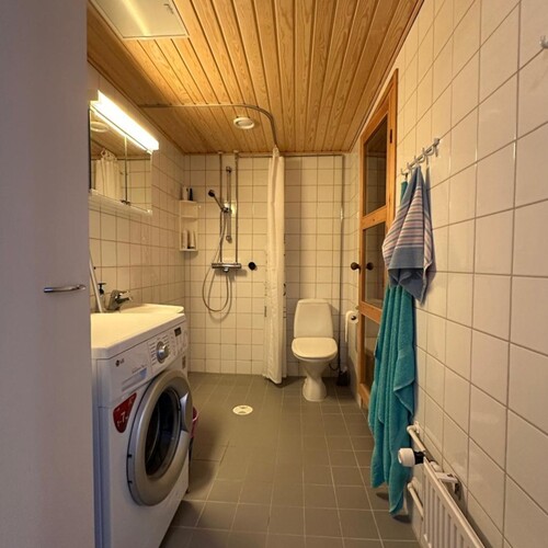 Lämmitysmuotona kaukolämpö ja taloyhtiö on rauhallinen.