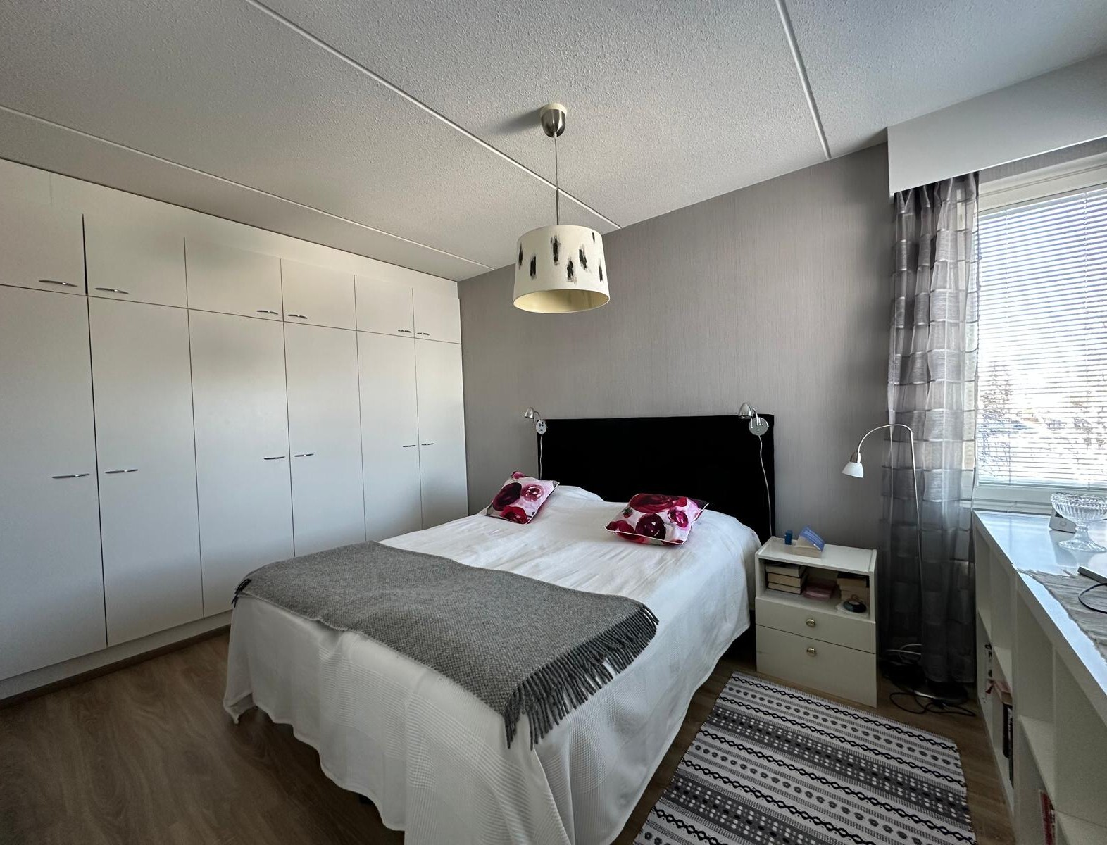 Varusteet: kaapistot, sälekaihtimet/rullaverhot, verhotangot, kiinteät valaisimet