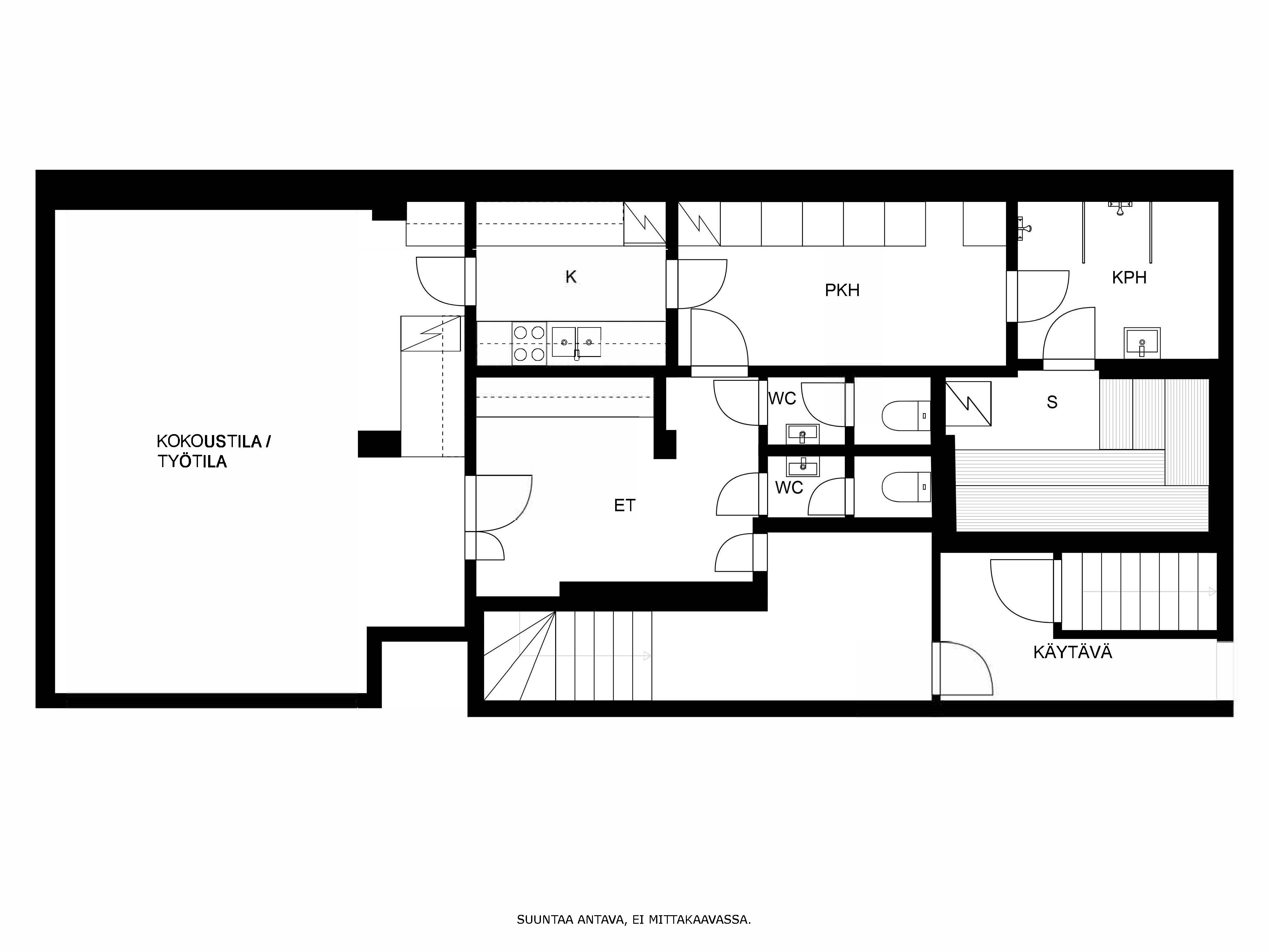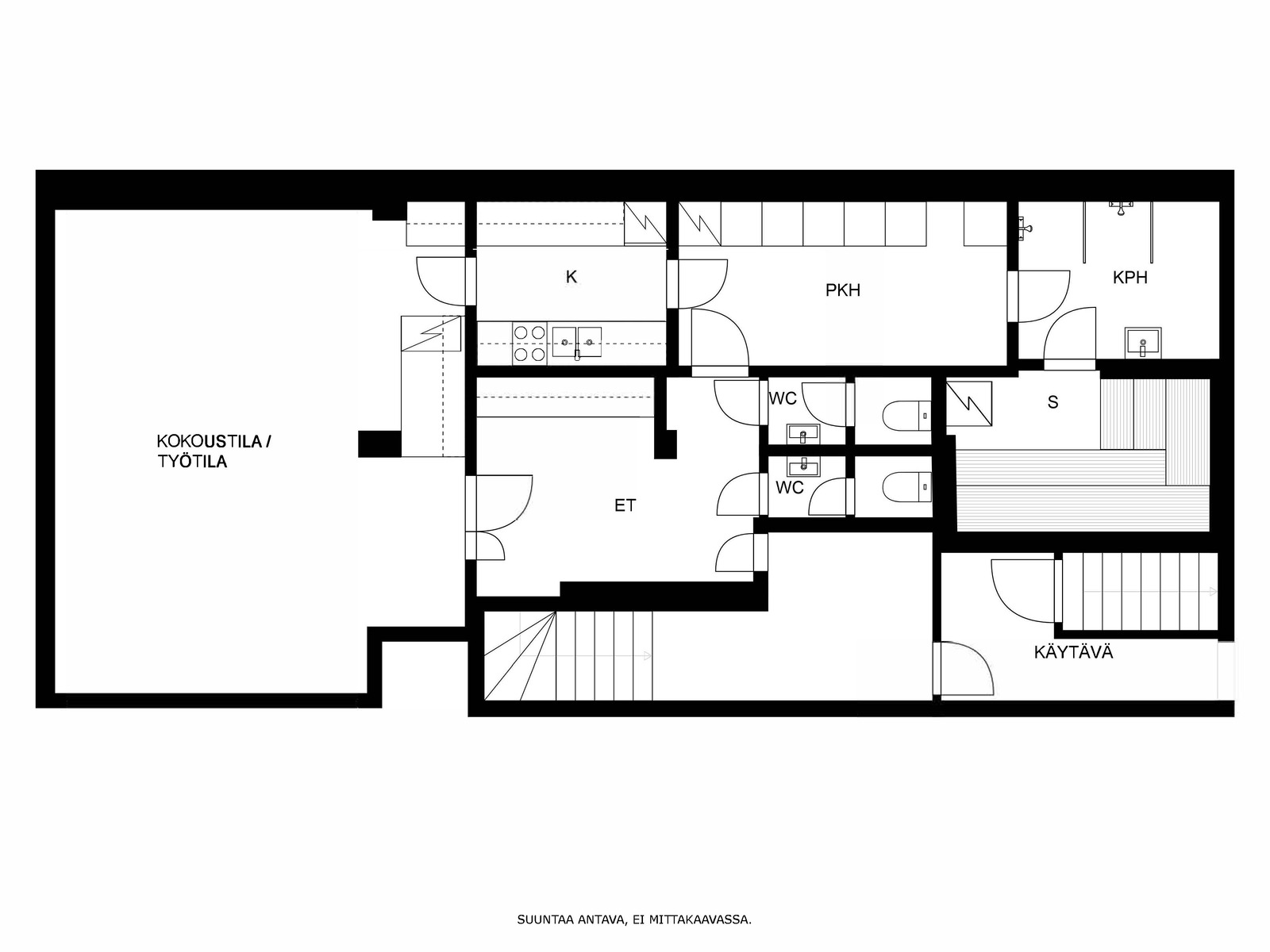 Sauna ja työtila. Yhtiöjärjestyksen mukaisesti ei asuinkäyttöön.