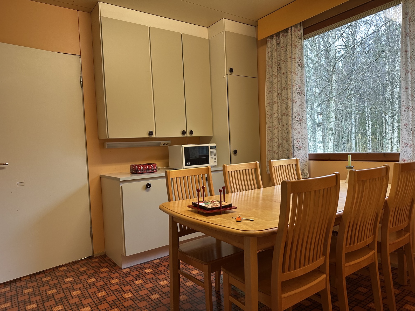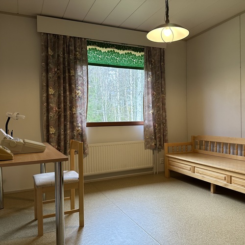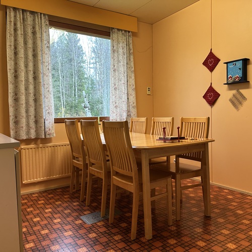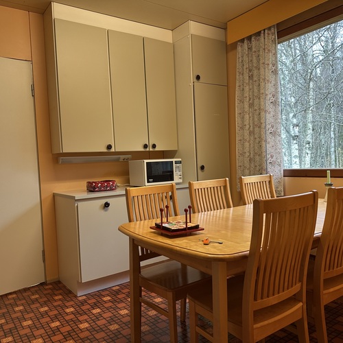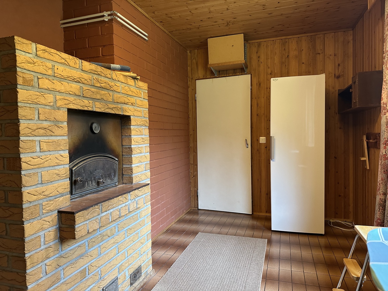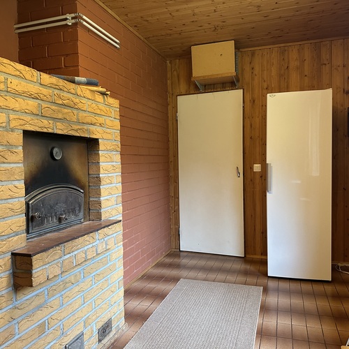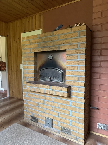 askarteluhuone/apukeittiössä leivinuuni, joka on tällä hetkellä käyttökiellossa: Hormin sisällä hormin alaosassa on kiilaavaa tiili/muurauslaasti ainesta joka estää tällä hetkellä pellin ja uunin käytön.