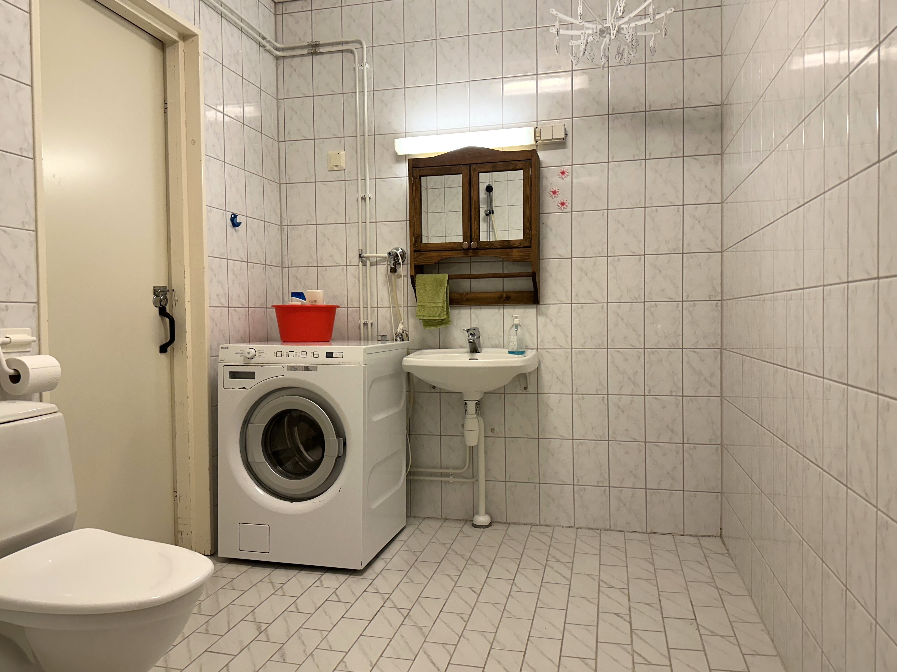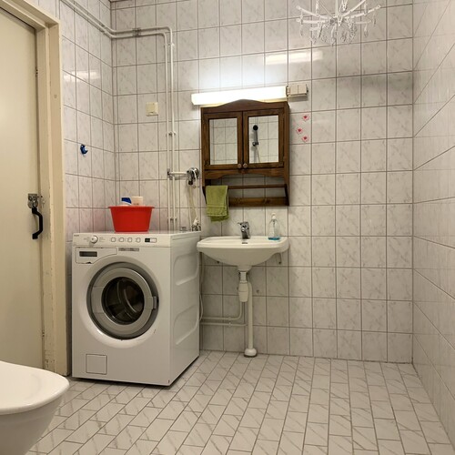 Varusteet: pesukoneliitäntä, lattialämmitys, wc-istuin, suihku, kiinteät valaisimet