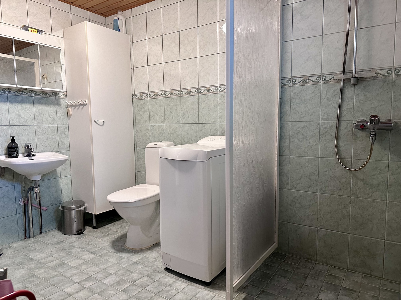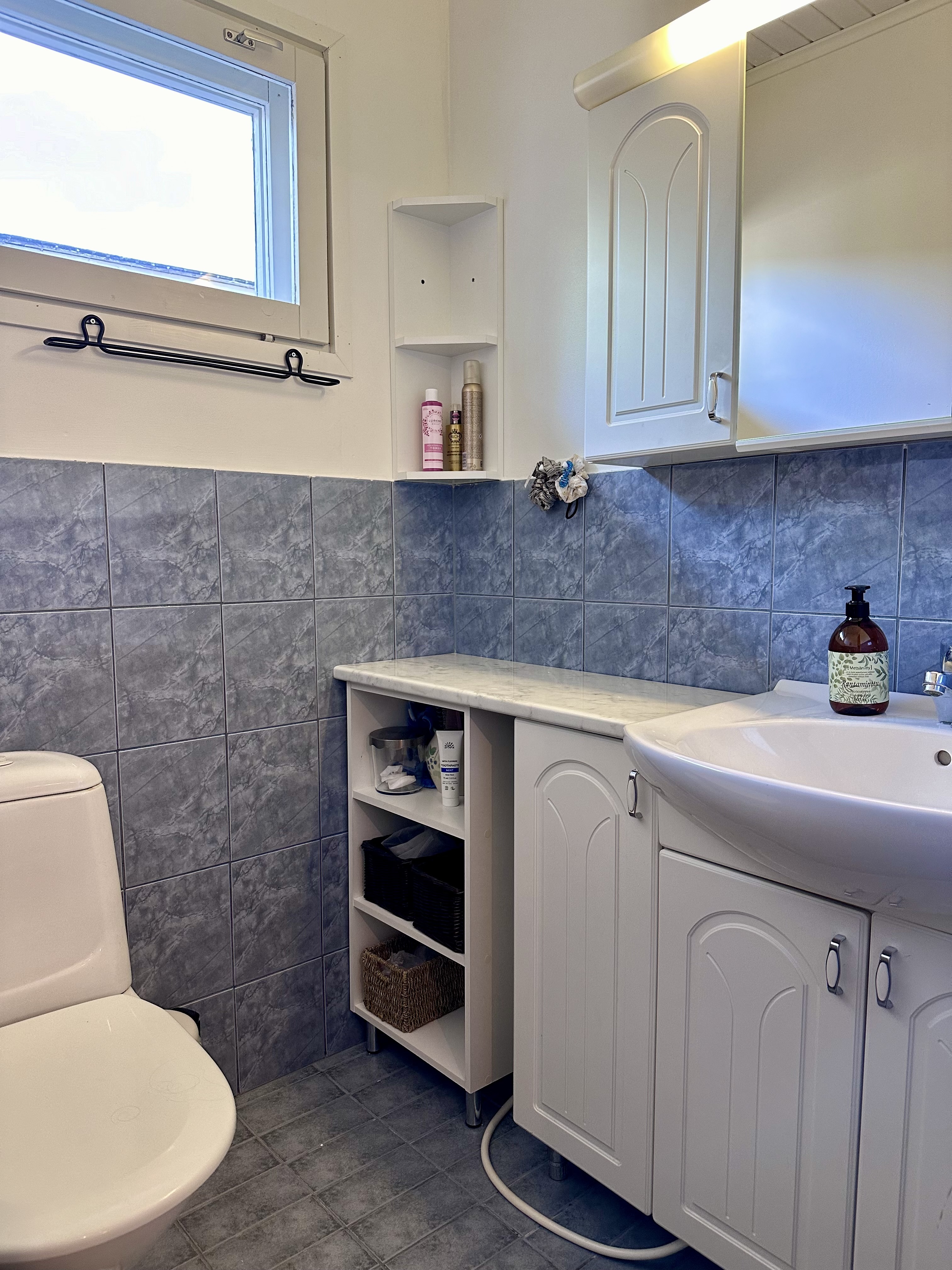 Varusteet: peilikaappi, bidee-suihku