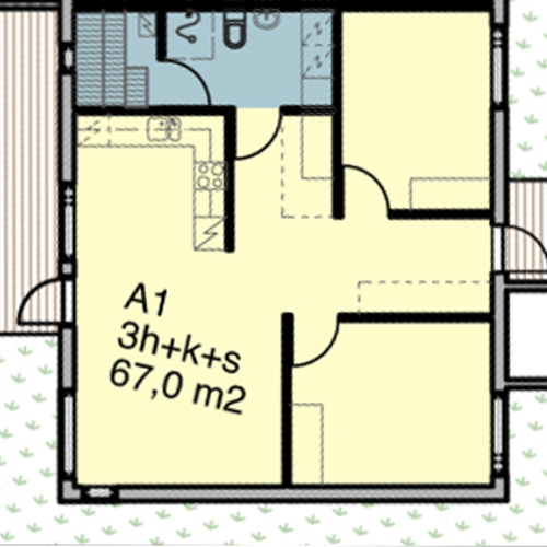 Varusteet: kaapistot, sälekaihtimet/rullaverhot, verhotangot, kiinteät valaisimet, huoneistokohtainen ilmanvaihtokone