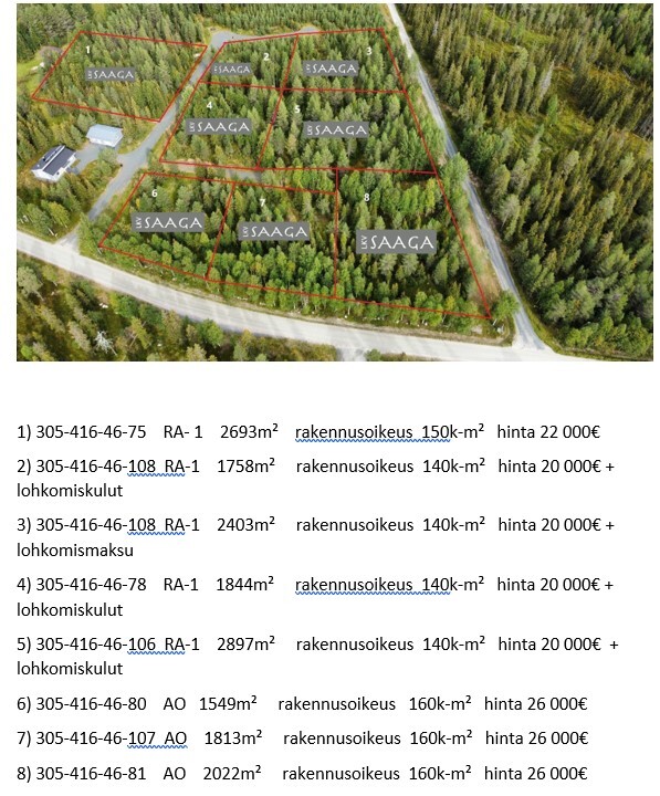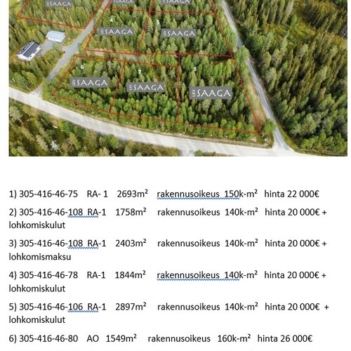 2) 305-416-46-108 RA-1 1758 m² rakennusoikeus 140 k-m² hinta 20 000 € + lohkomiskulut