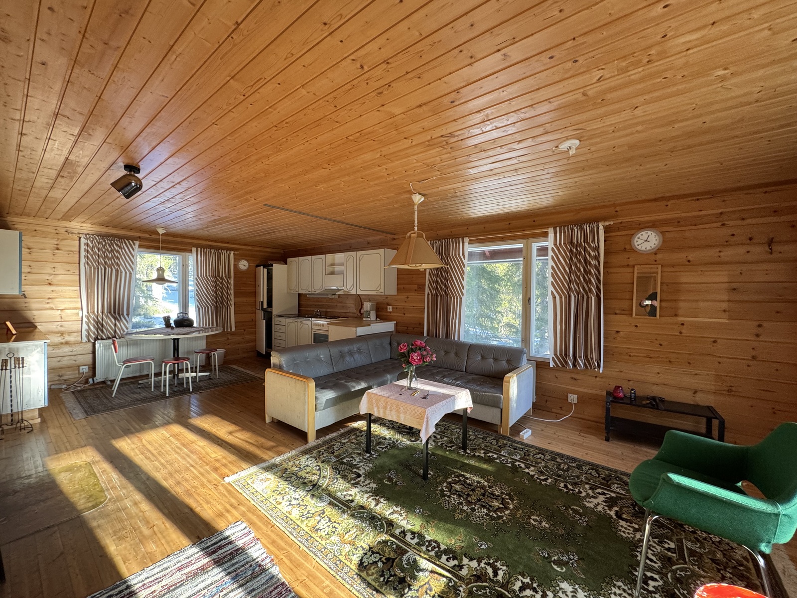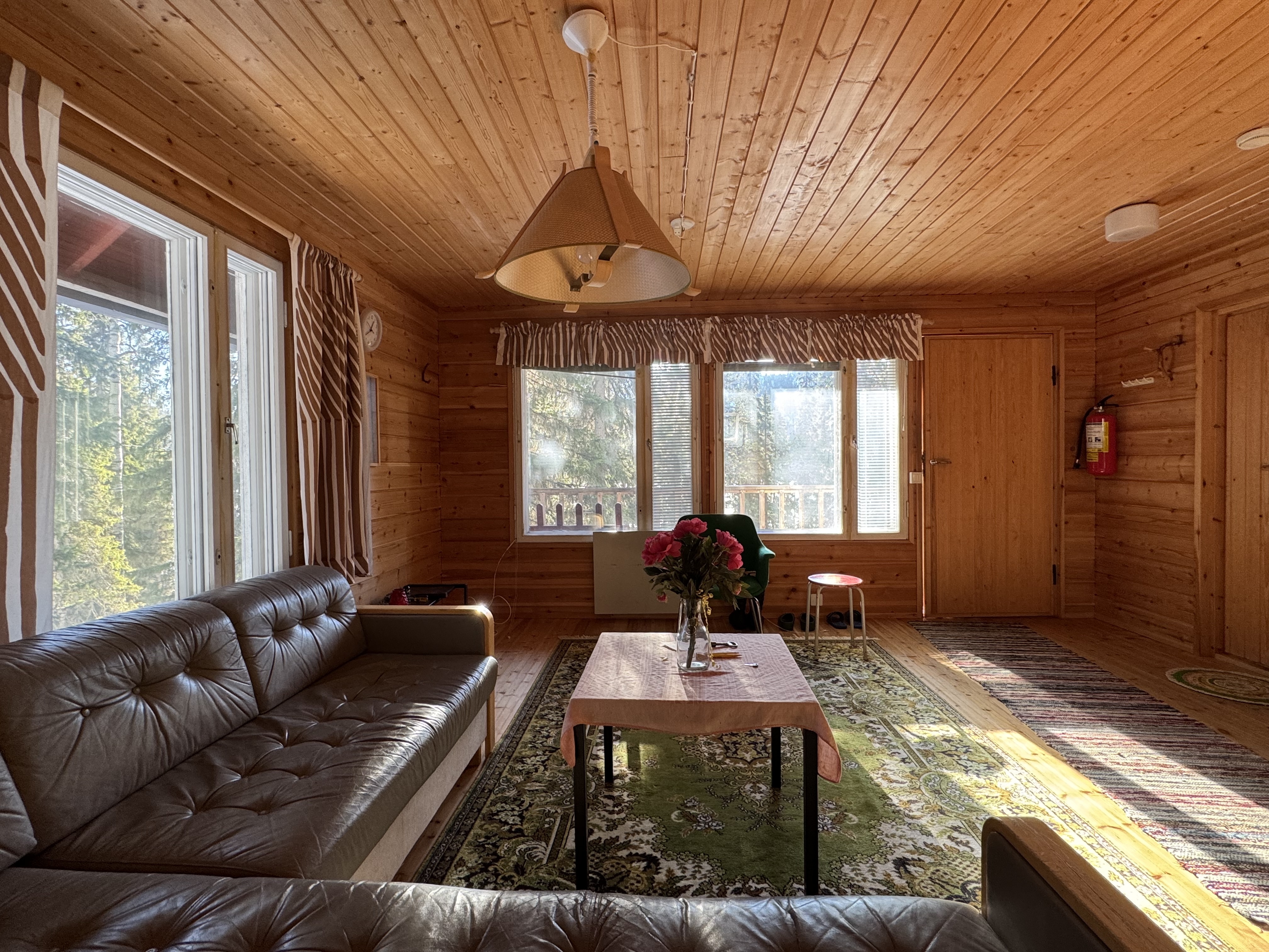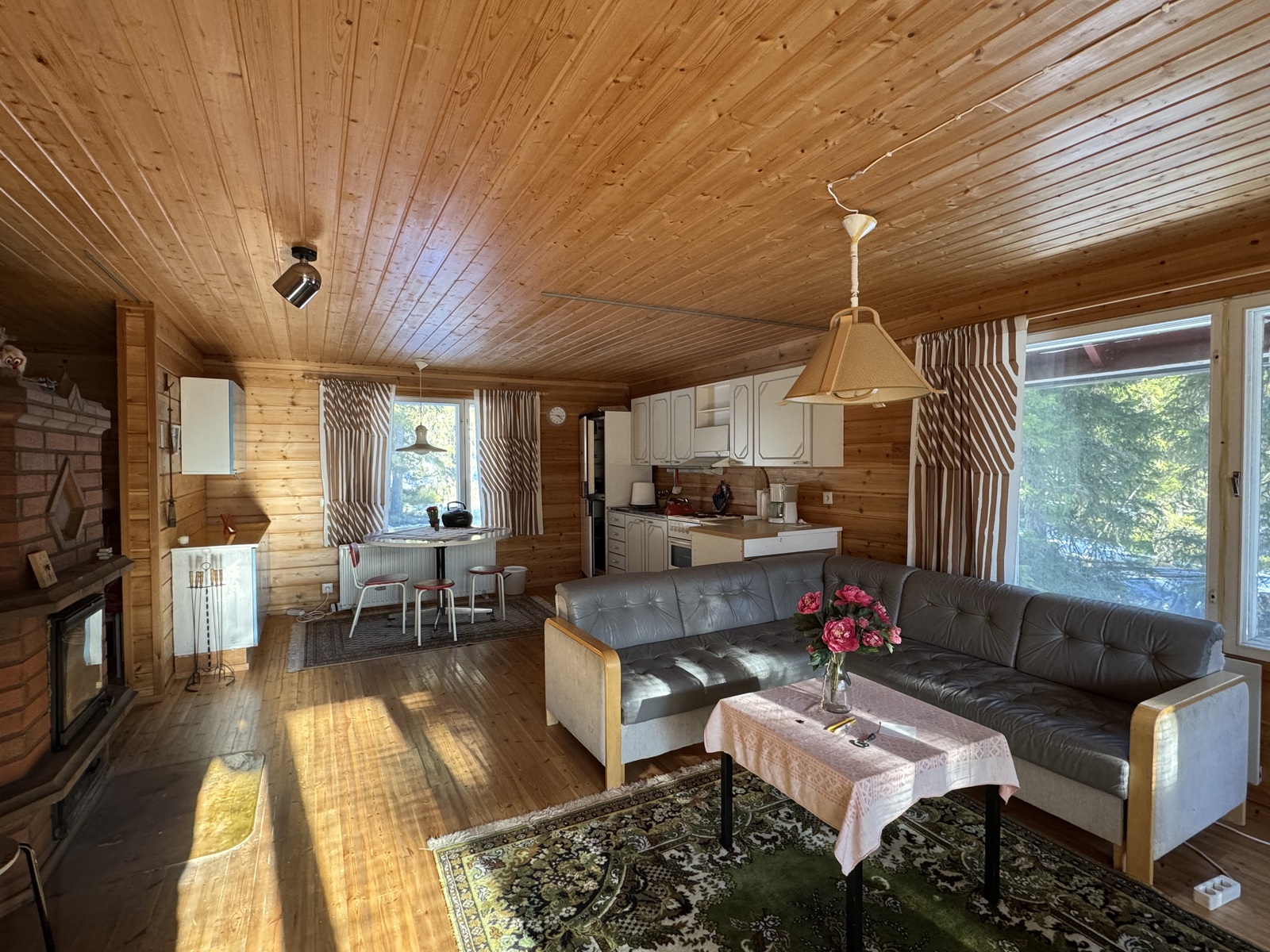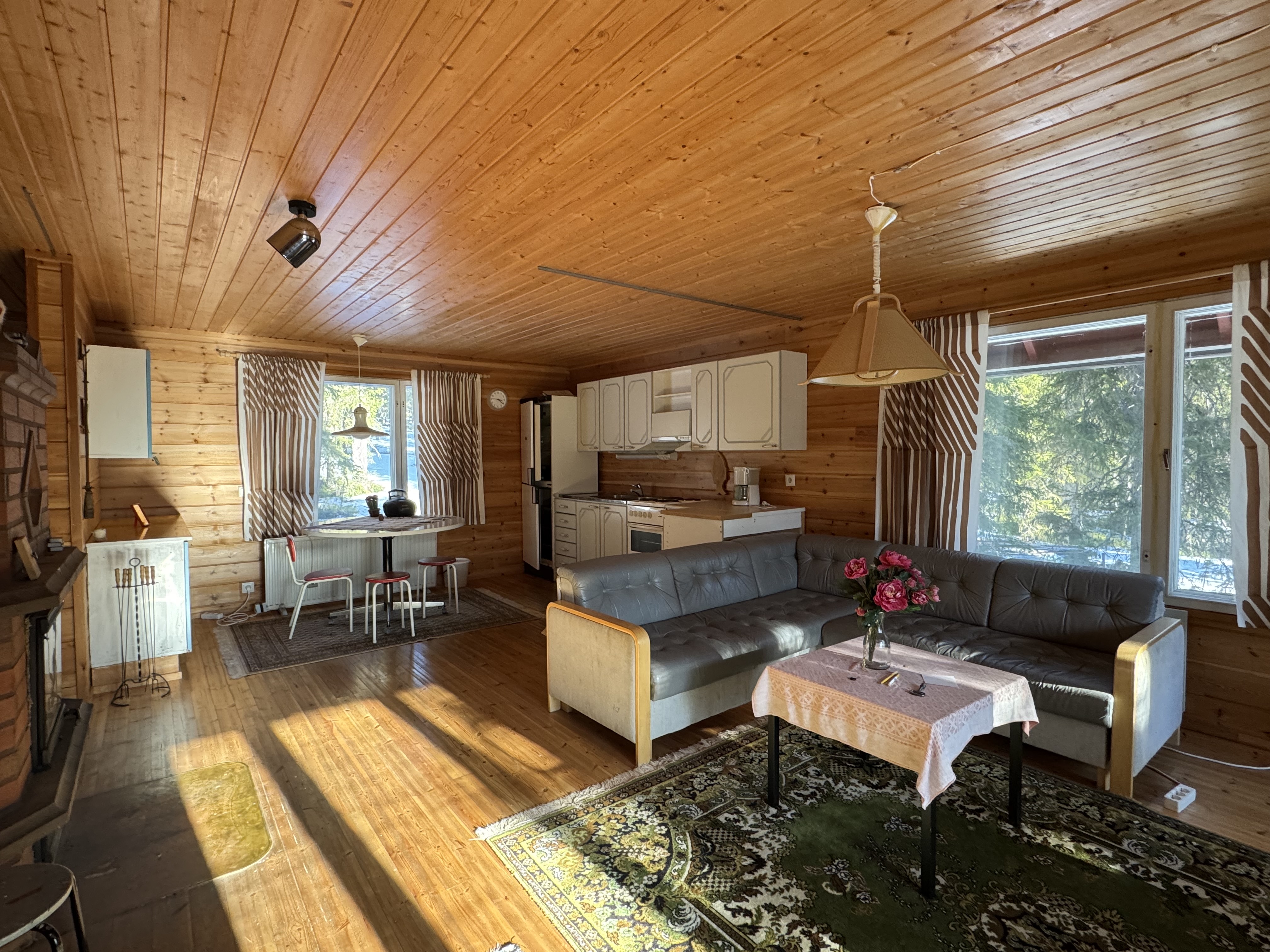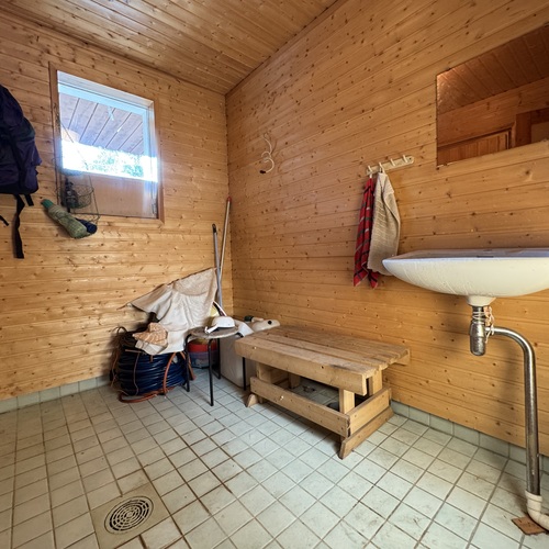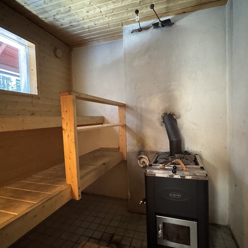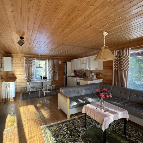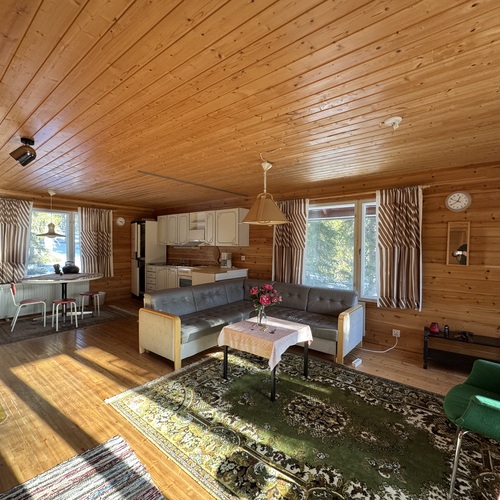 Tupa ja keittiö ovat yhtenäistä avaraa tilaa, jossa varaava takka lämmittää. Yksi makuuhuone ja pesuhuone sekä sauna. Mökki on sähköistetty, vesi kantovetenä. Hyvät peruslähtökohdat unelmien lomapaikalle on olemassa mutta rakennus kaipaa remonttia mm. ikkunoiden vaihtaminen, katon uusiminen sekä pesu- ja kylpyhuoneen remontointi. Mökissä myös yläkerta, joka rakentamaton. Tontilla on rakennusoikeutta 120 + ta30.