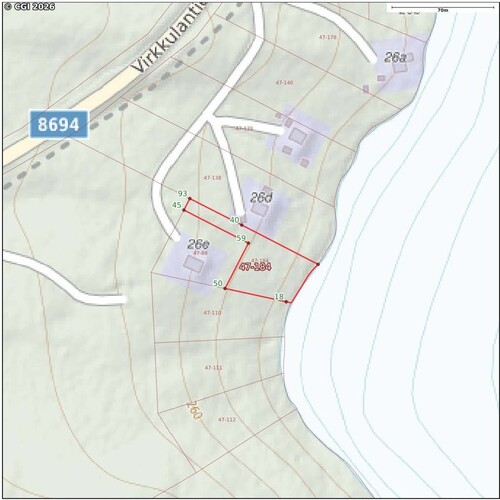 Hintaan sisältyy kaksi vierekkäistä kiinteistöä, joista lomarakennus sijaitsee toisella ja toinen kiinteistö on rakentamaton rajoittuen Konttaisjärveen.