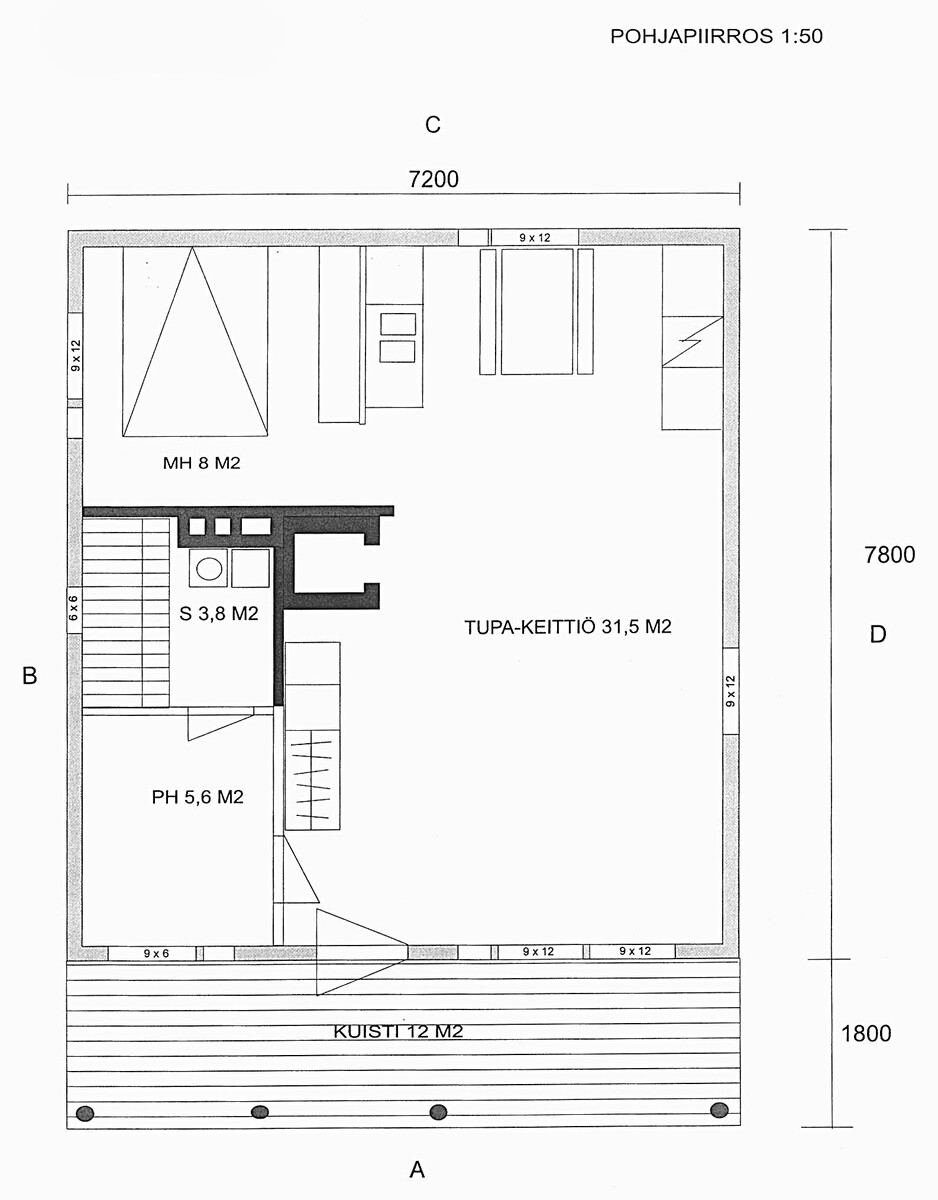 Katon kunto: Alkuperäinen, sammaloitunut