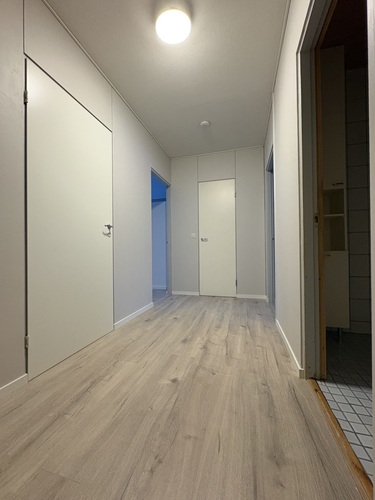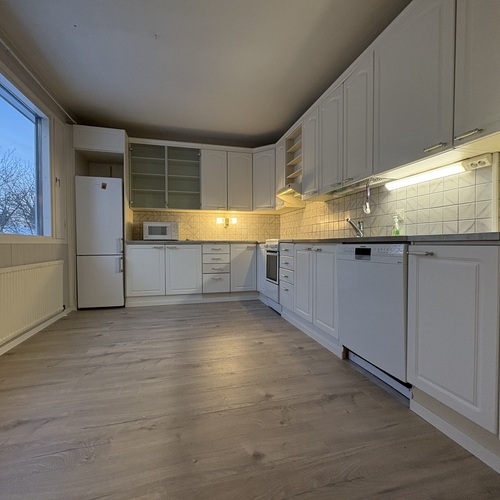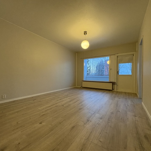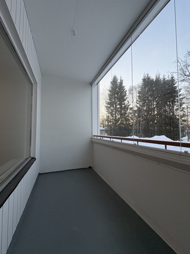 Rauhallinen taloyhtiö, jossa julkisivuremontti juuri valmistunut.