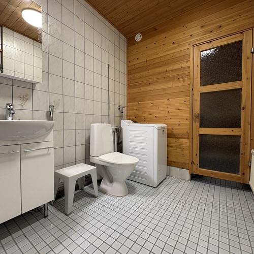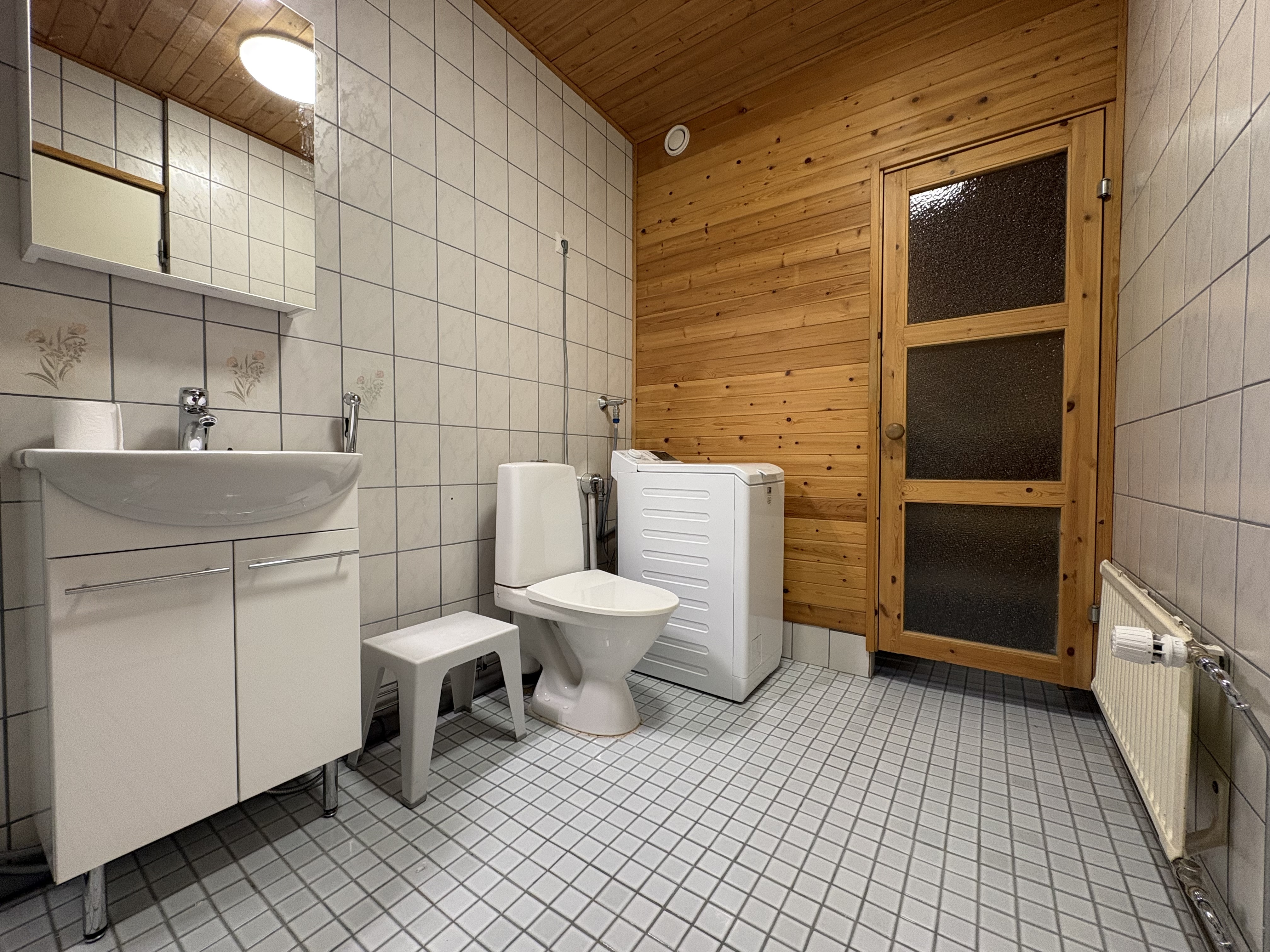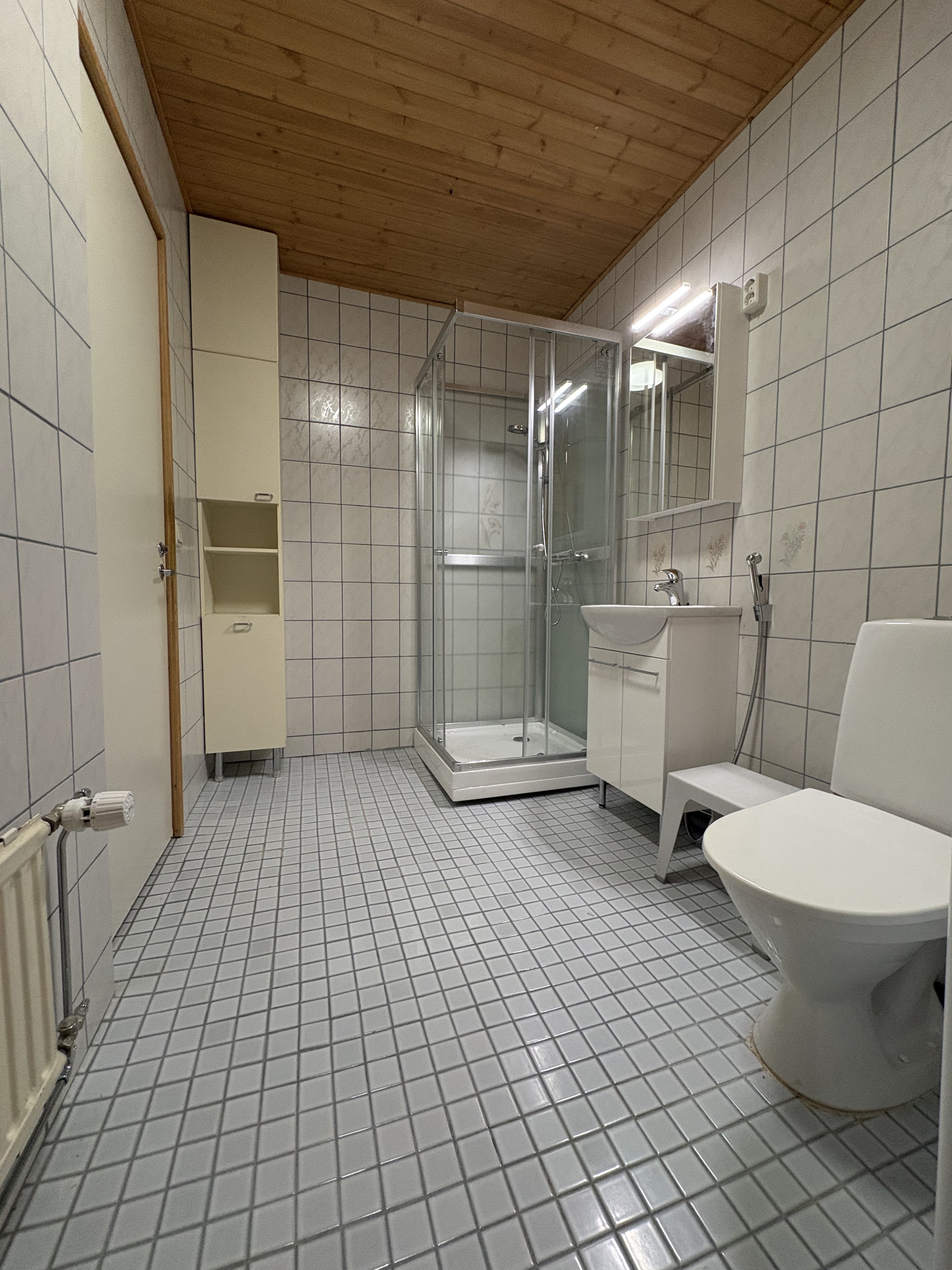 Varusteet: suihkukaappi, wc-istuin, peilikaappi