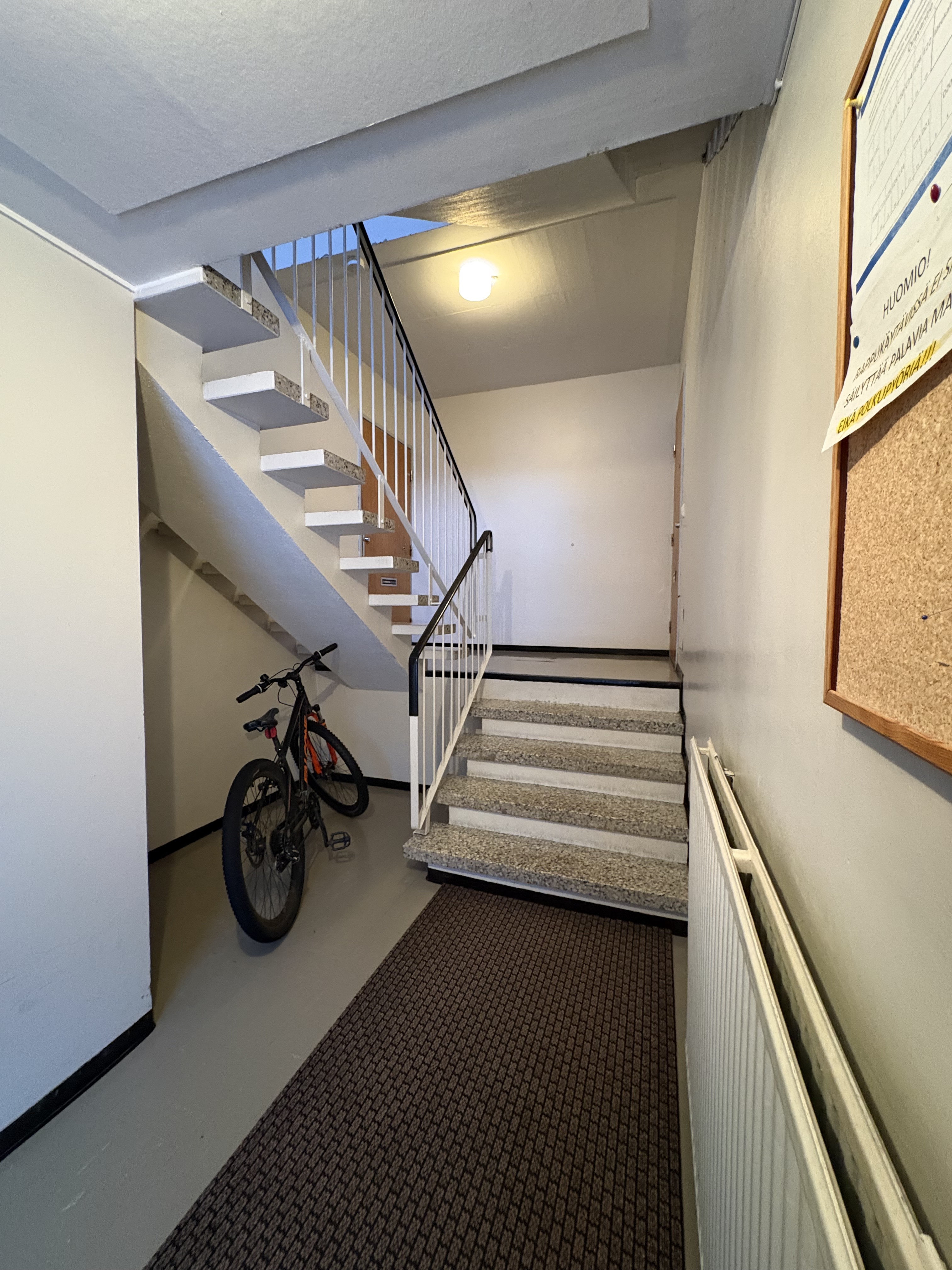 Taloyhtiön kellaritiloissa varastot ja tilavat siistikuntoiset taloyhtiön saunatilat.