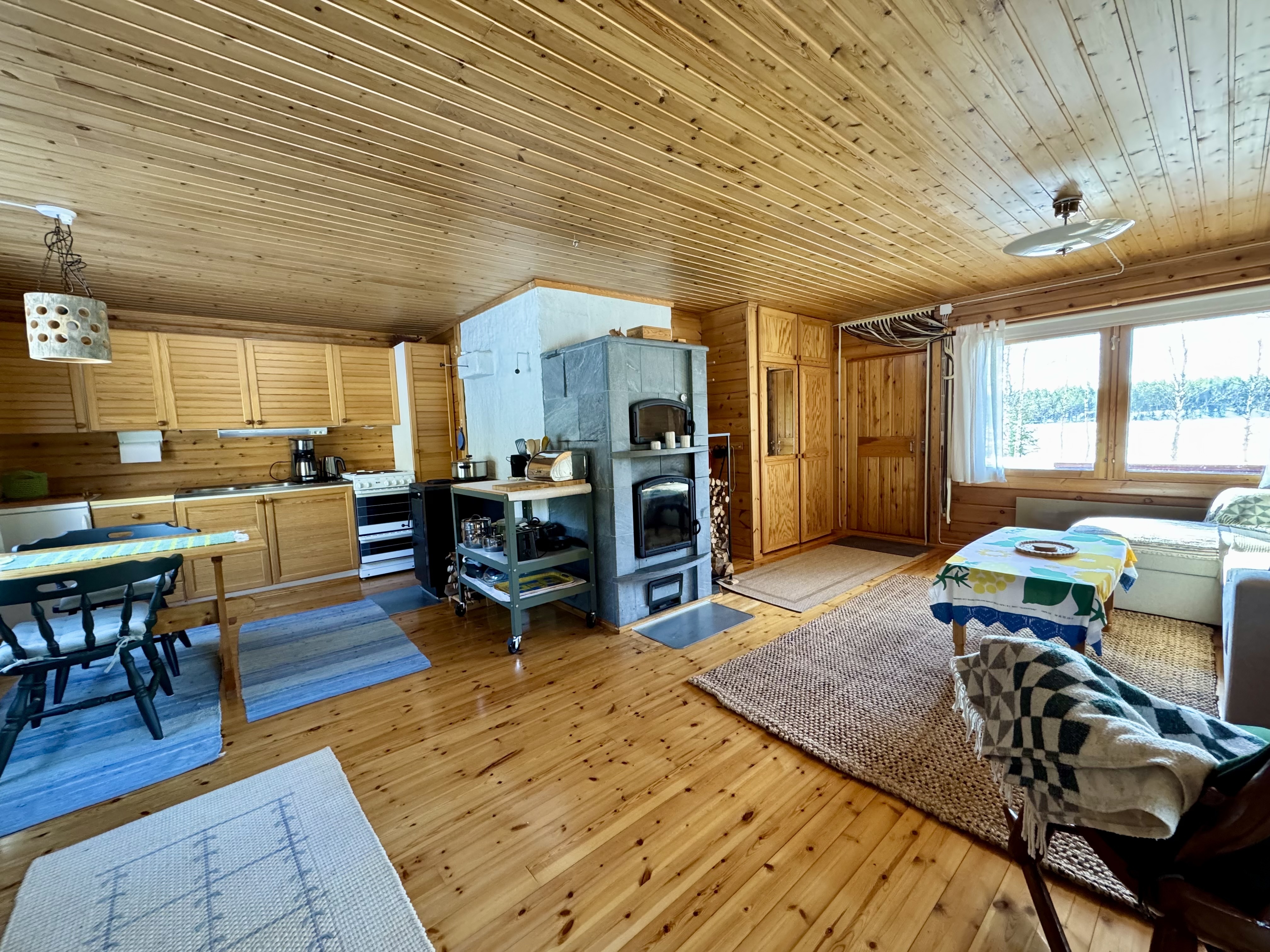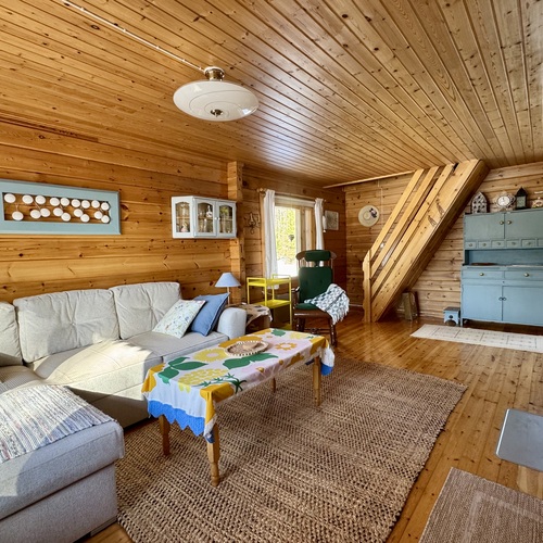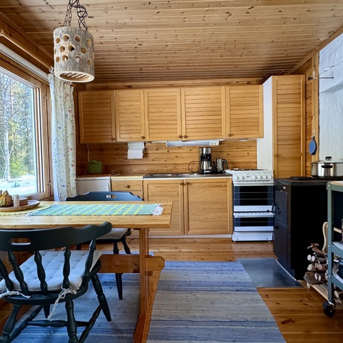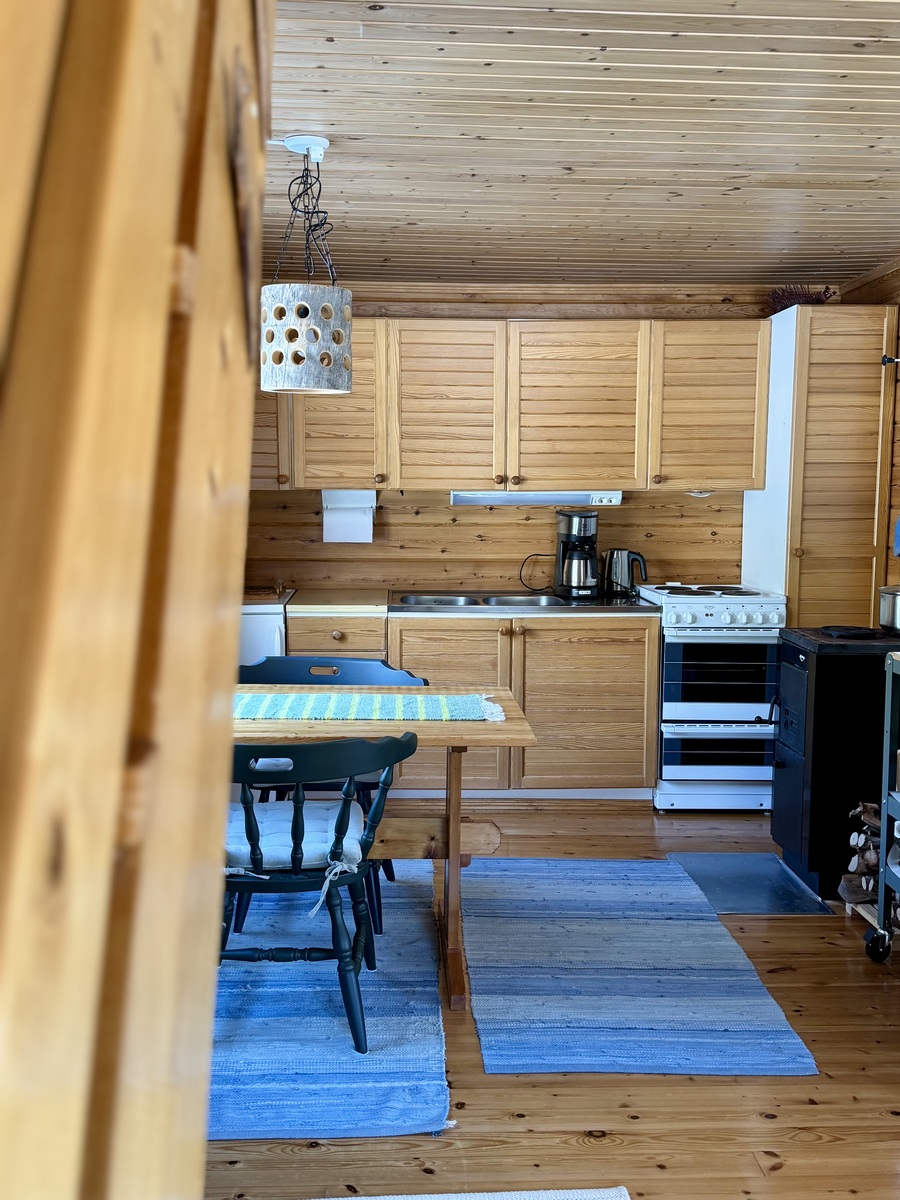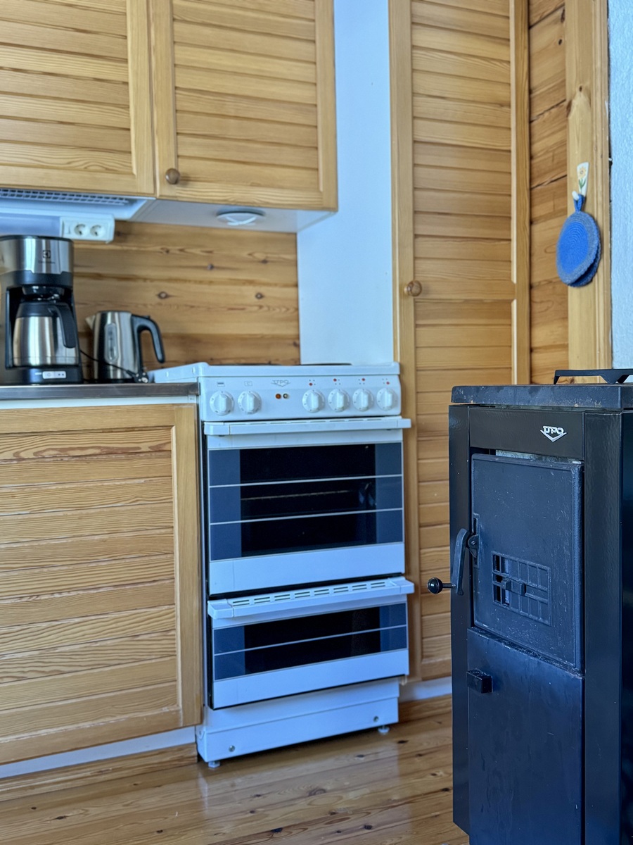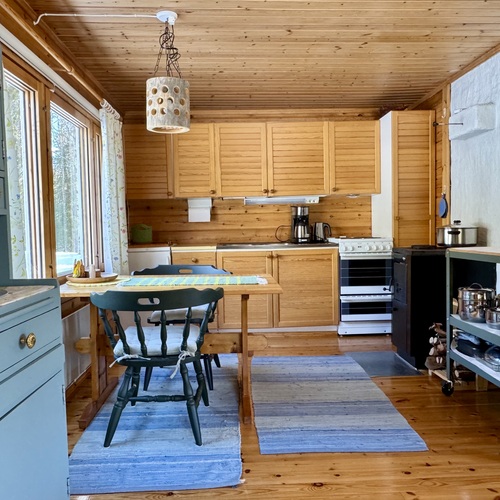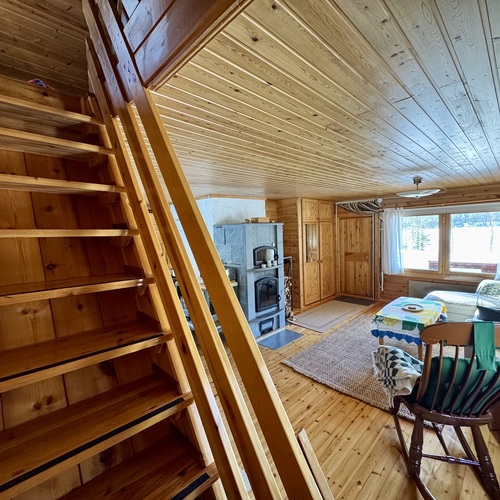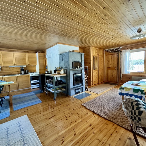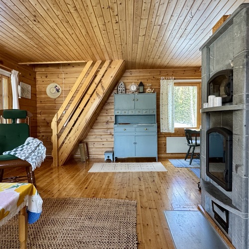 Alakerrassa tupakeittiö, jossa takka-leivinuuni. Parvella nukkumapaikat neljälle.