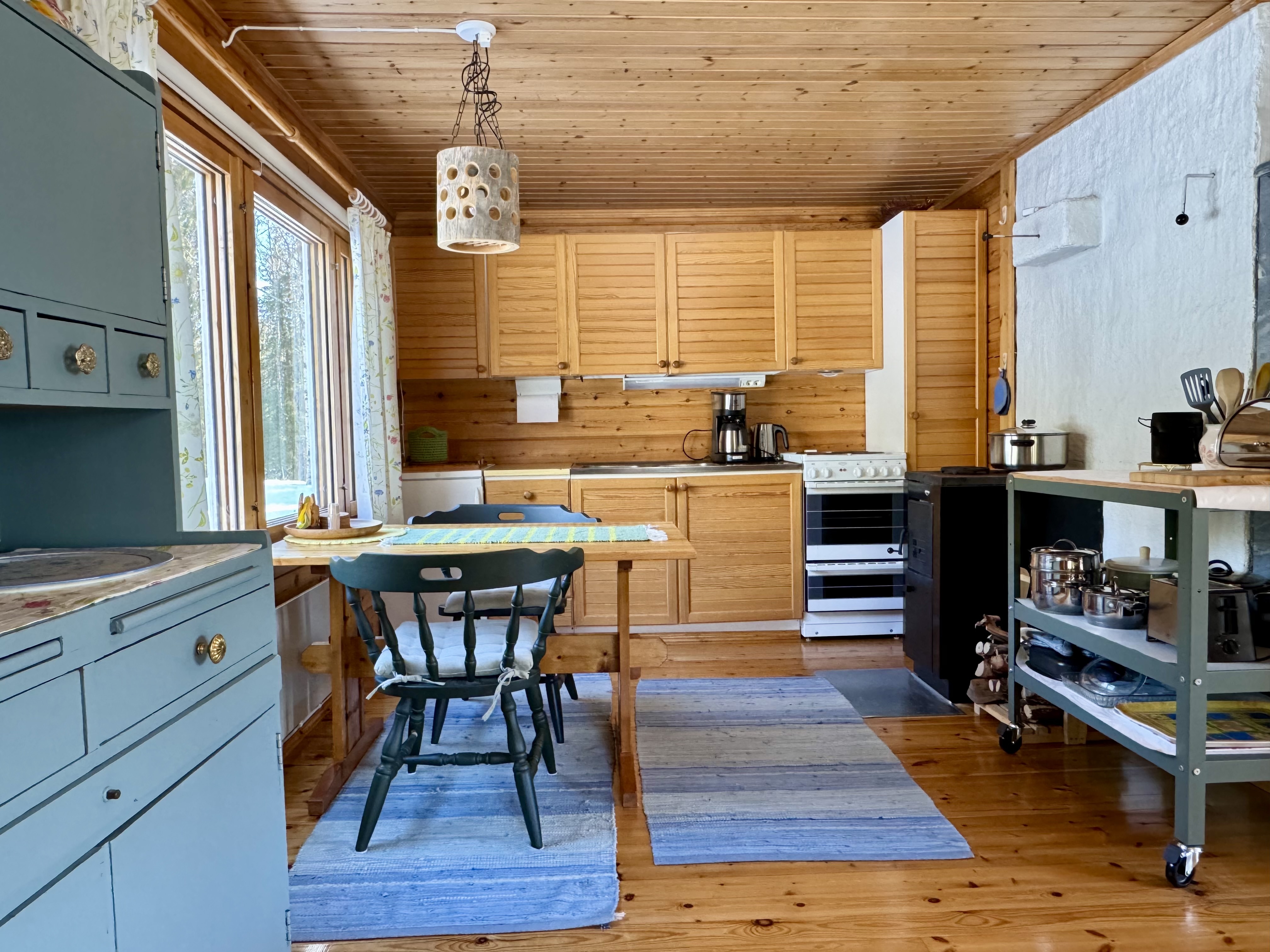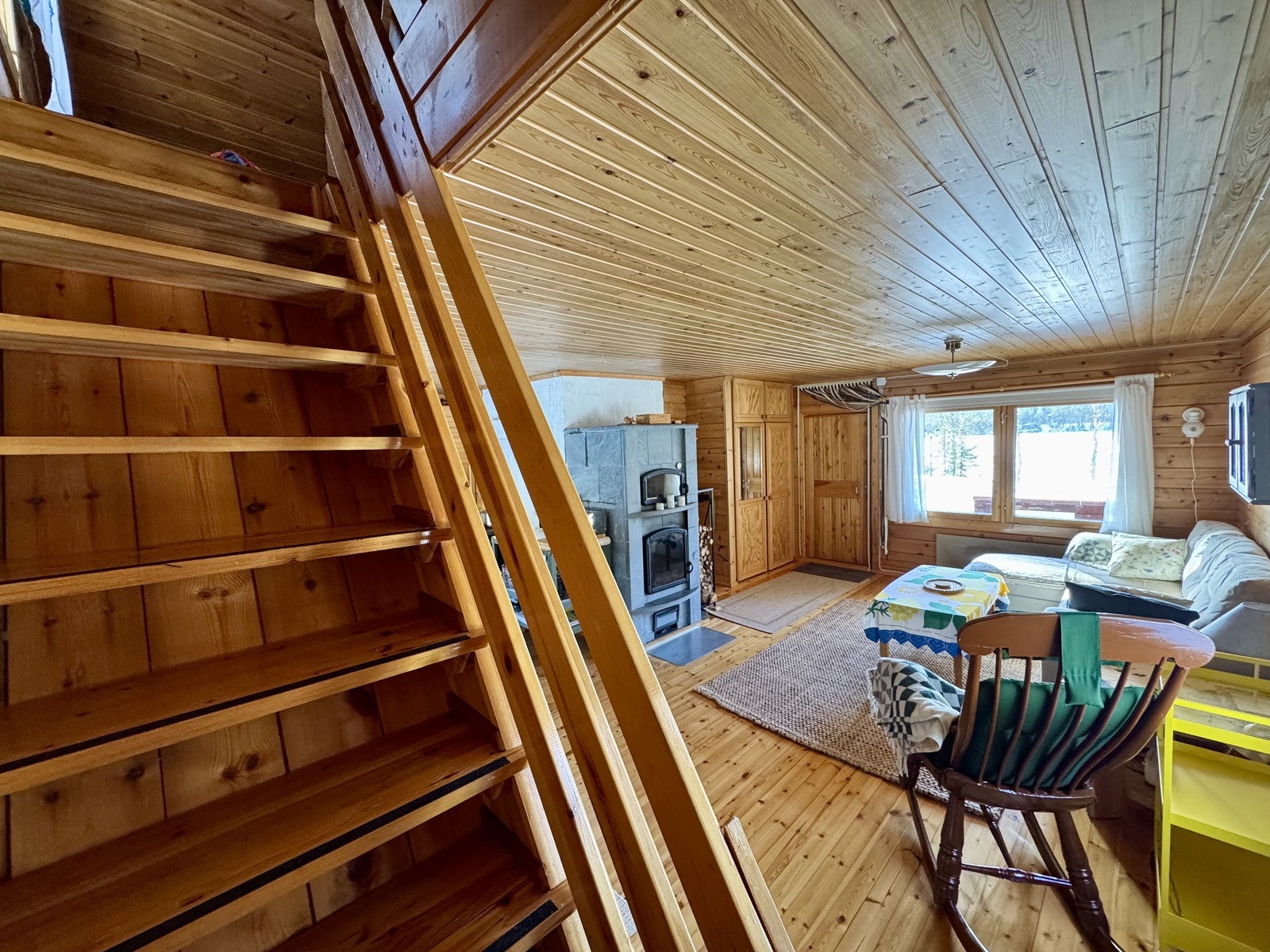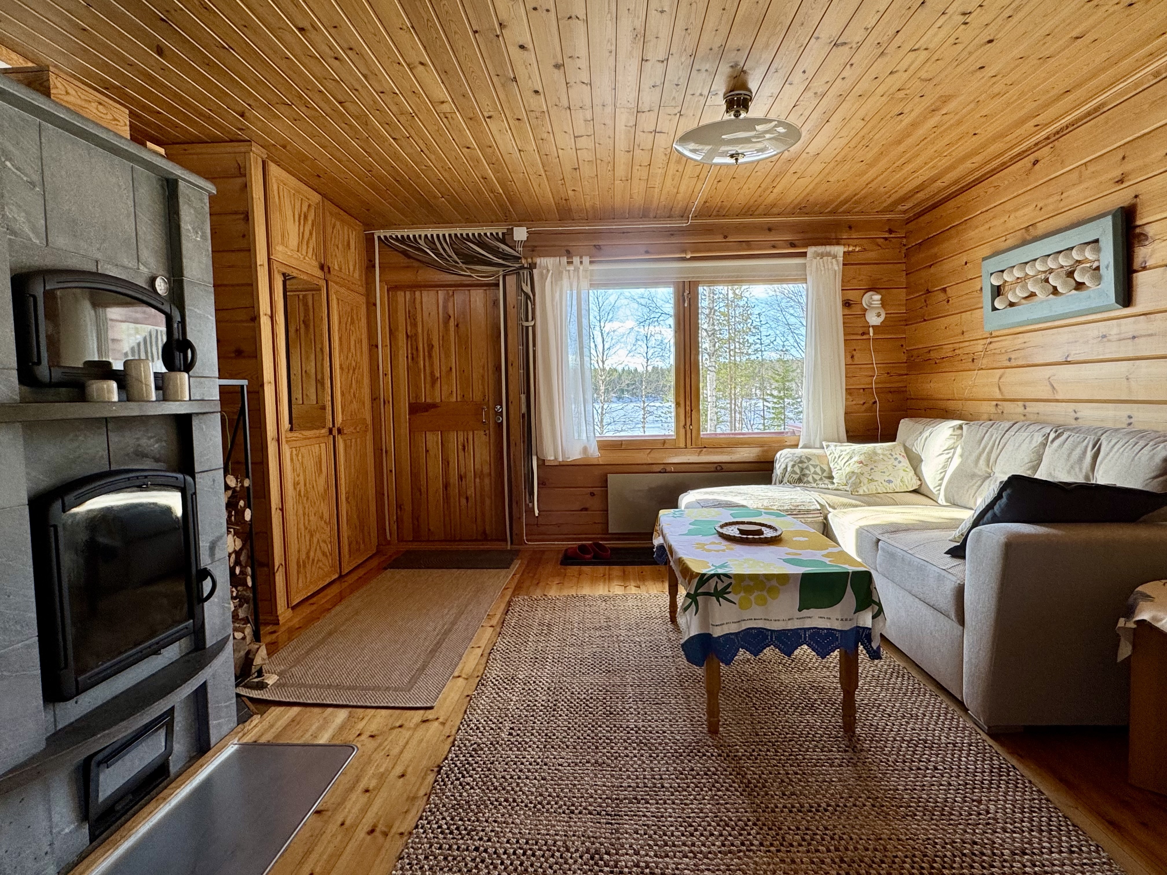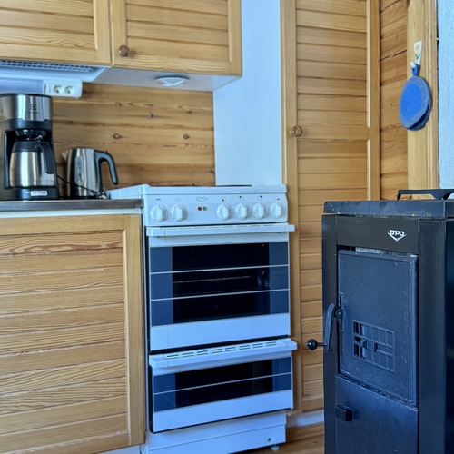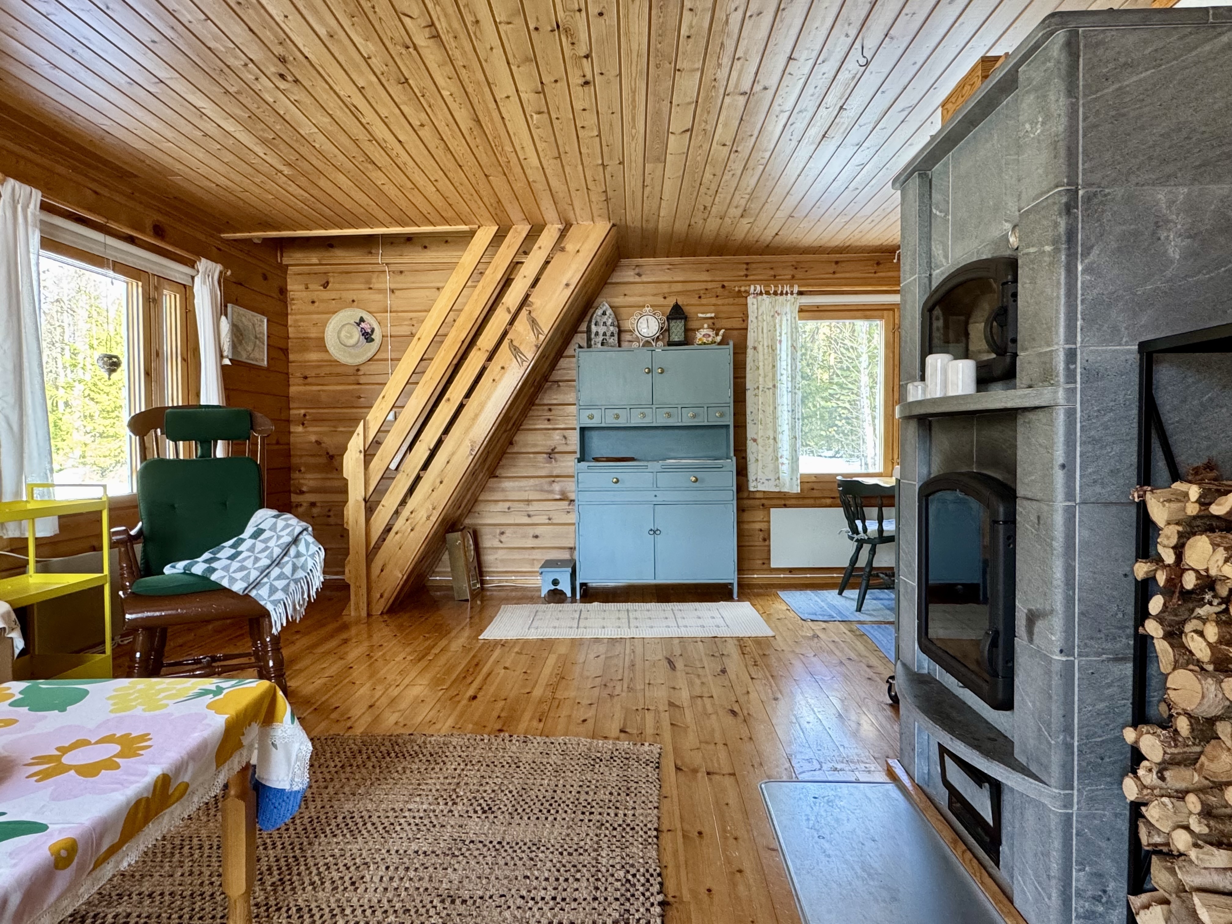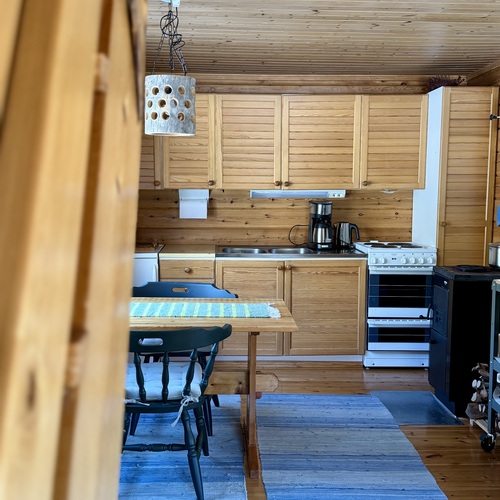 Alakerrassa tupakeittiö, jossa takka-leivinuuni. Parvella nukkumapaikat neljälle.