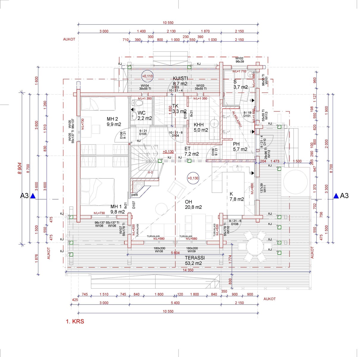 parvella mh ja aula, mökkiä kiertää 55 m² osittain katettu terassi