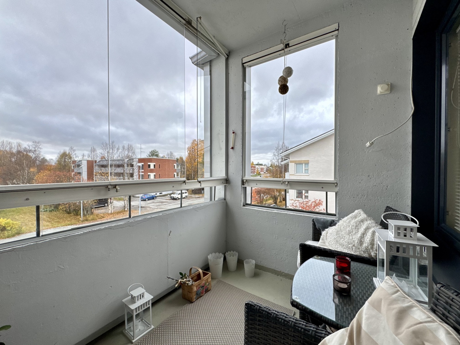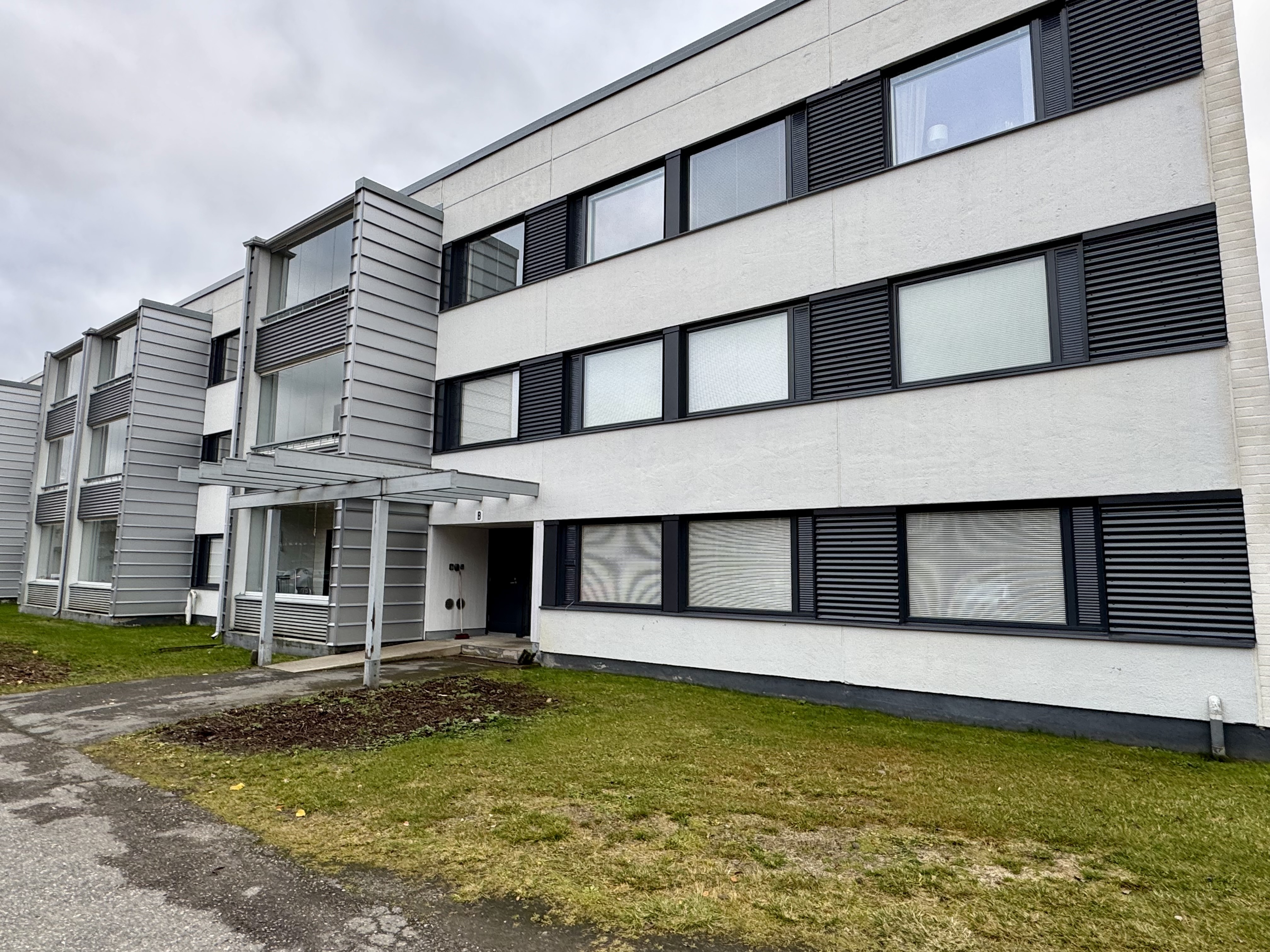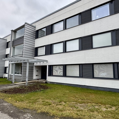 Keskustan palvelujen vieressä hissillisen kerrostalon ylimmän kerroksen tilava kolmio.