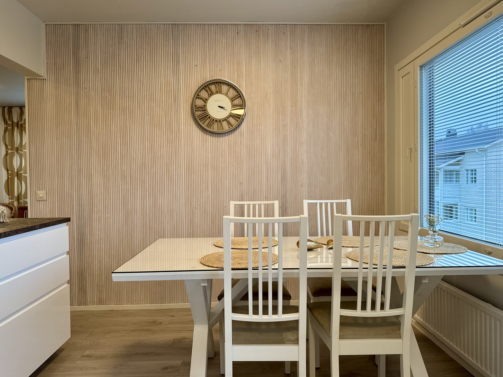 Muuttovalmis kaupunkiasunto, joka remontoitu kauttaaltaan v. 2018 ja on edelleen uuden veroisessa kunnossa. Tyylikkään keittiön ja eteisen seinissä kaunista sormipaneelia joka tuo lämpöä ja kodikkuutta.