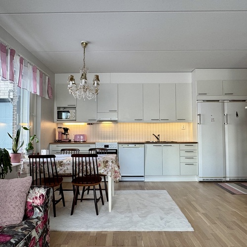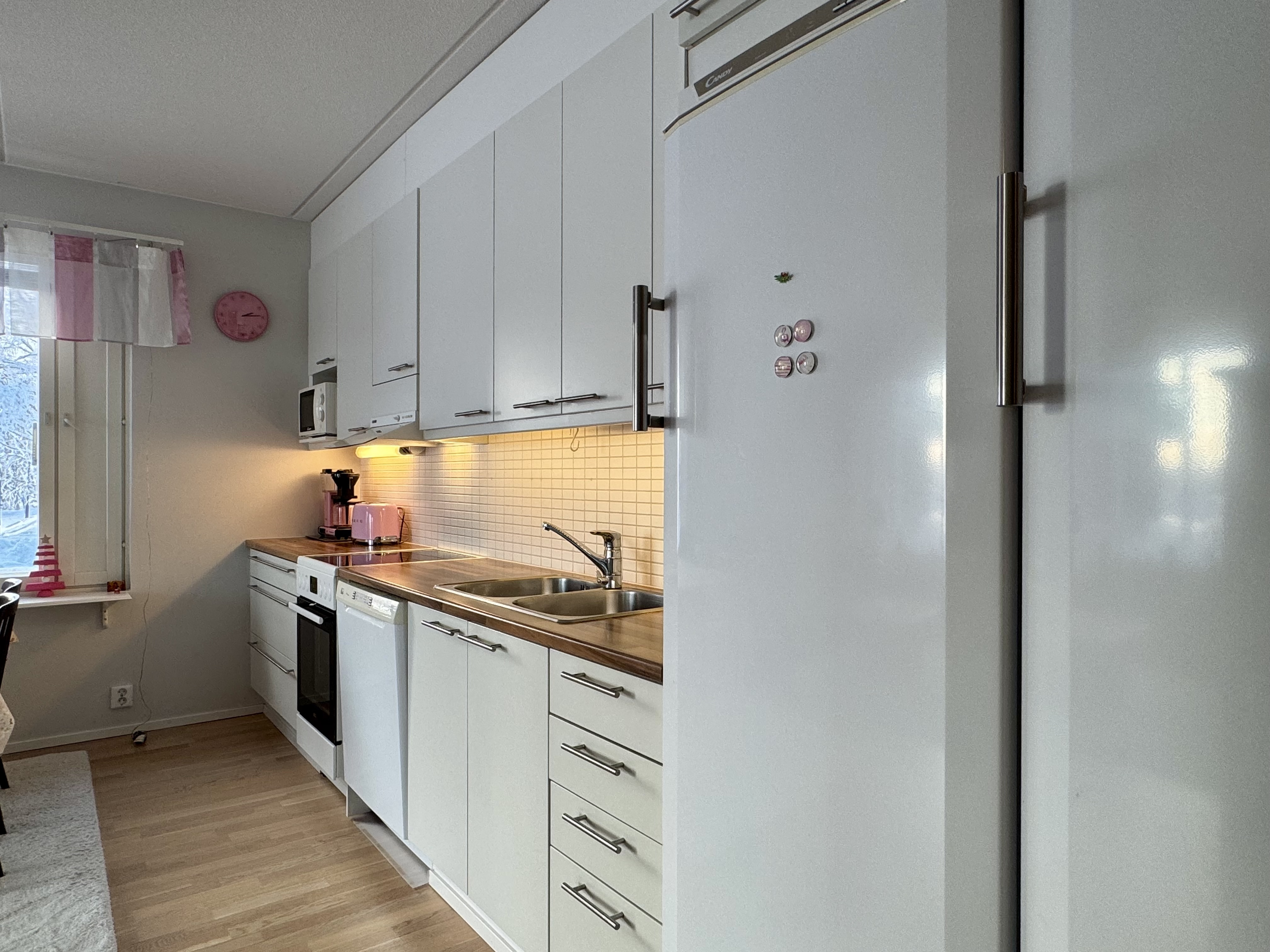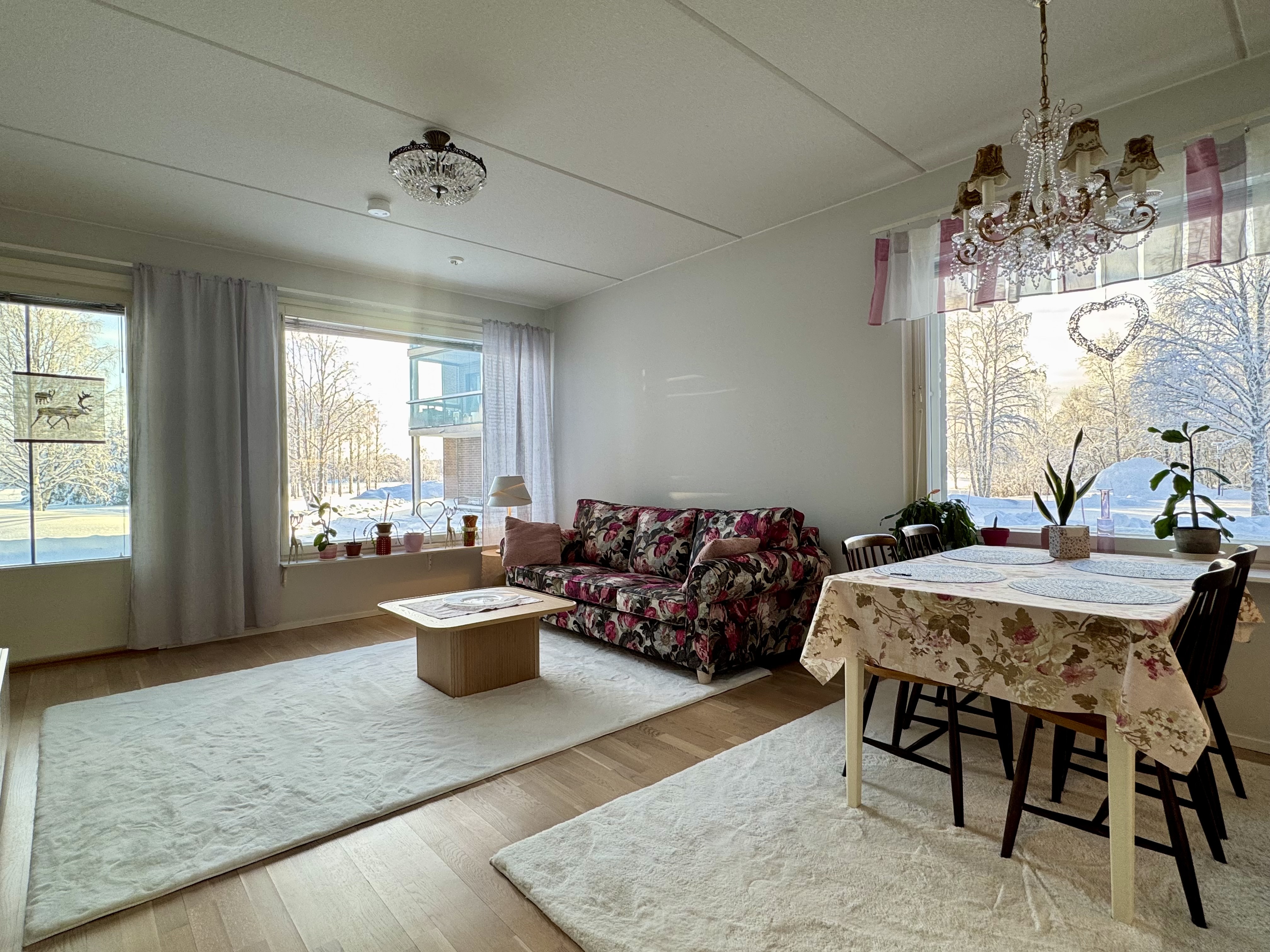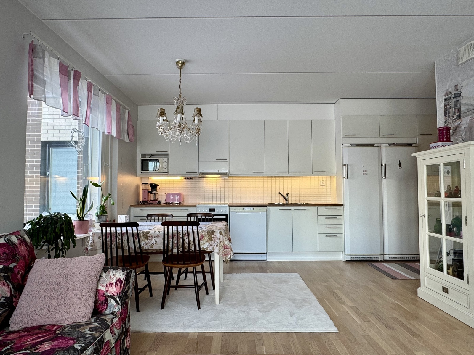 Tässä huoneistossa on valoisa pohjaratkaisu ja erinomaisessa kunnossa olevat pintamateriaalit.