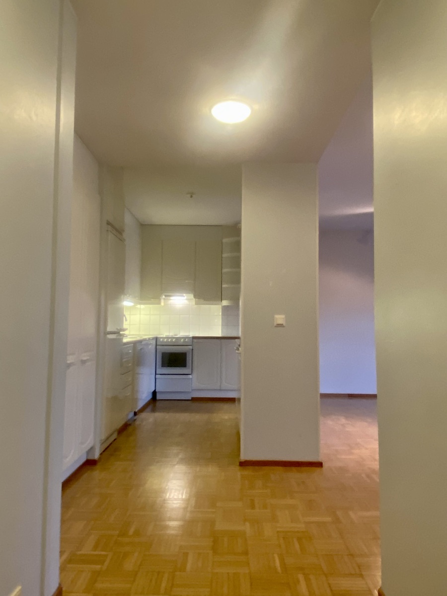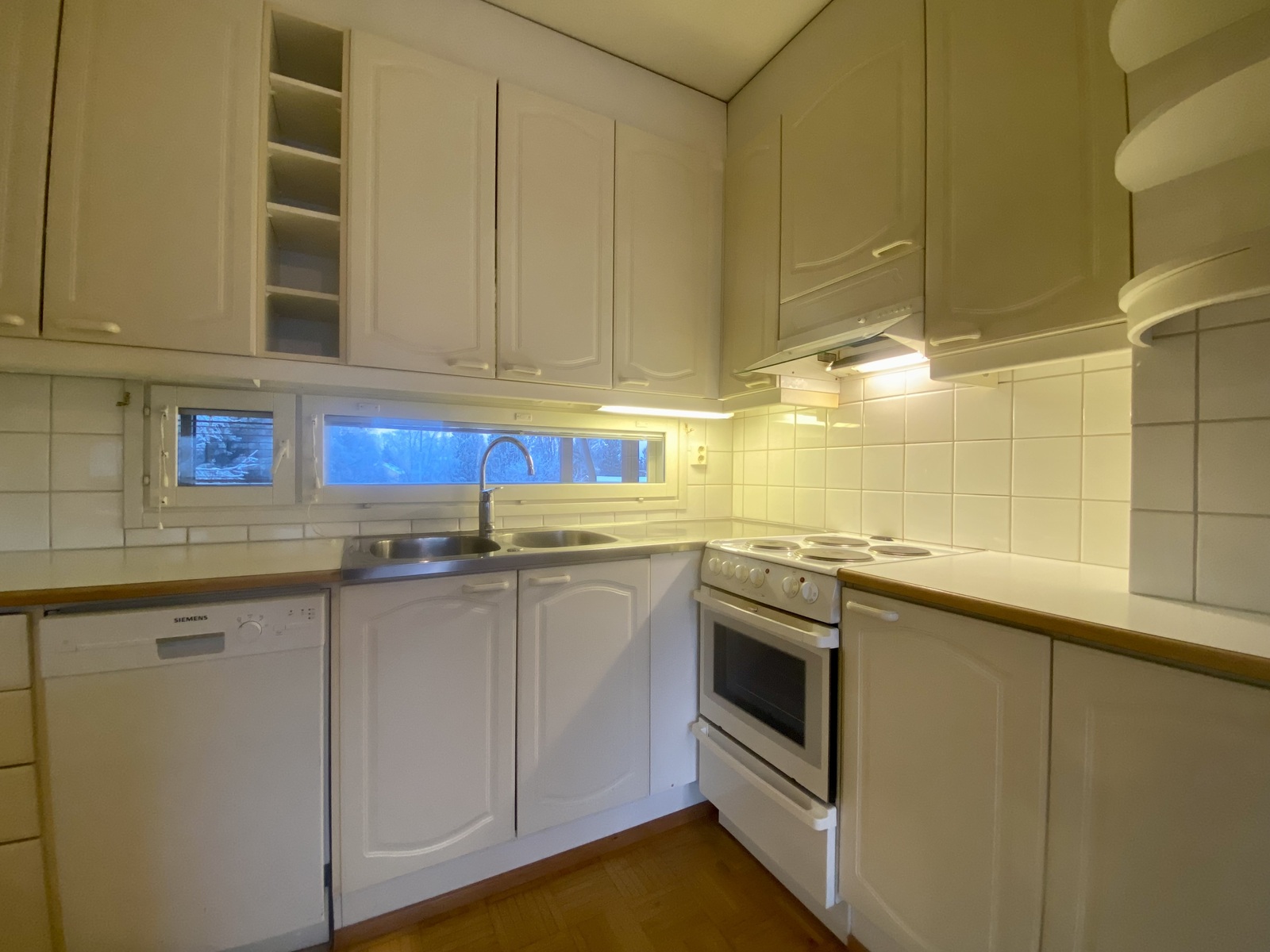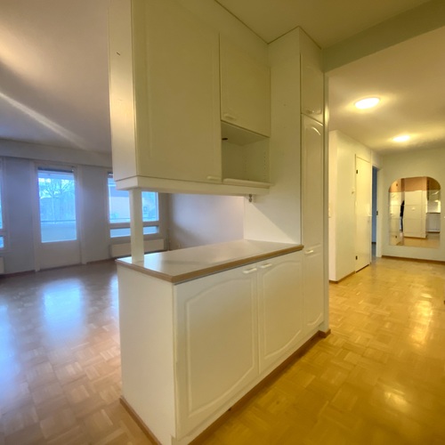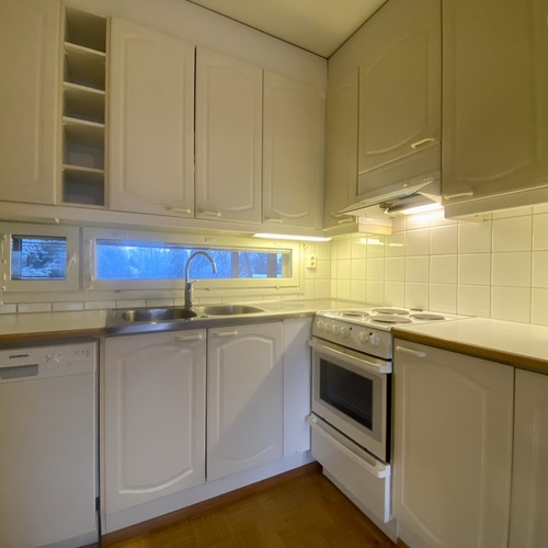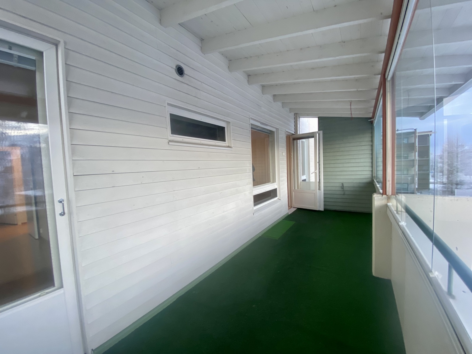 Saareke jakaa kodikkaan keittiön ja olohuoneen, keittiössä reilusti säilytystiloja. Tilava ja valoisa olohuone, josta käynti isolle lasitetulle itäparvekkeelle, parvekkeelta avautuu näkymät piha-alueelle. Todella tilava päämakuuhuone, josta myös käynti lasitetulle parvekkeelle. Toinen makuuhuone sopii vaikka työhuoneeksi. Huonetilojen lattiassa parketti, seinäpinnat vaaleat. Kompaktissa kylpyhuoneessa mukavuuslattialämmitys.