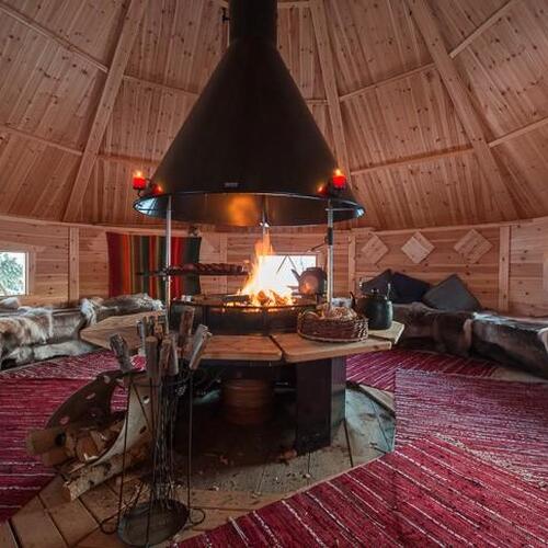 Isossa tunnelmallisessa kodassa pystyy kestitsemään jopa kymmeniä henkilöitä kerrallaan. Mikä sen parempaa, kuin nuotiolla paistettu makkara ja nuotiokahvit parin tunnin ratsastusreissun jälkeen!