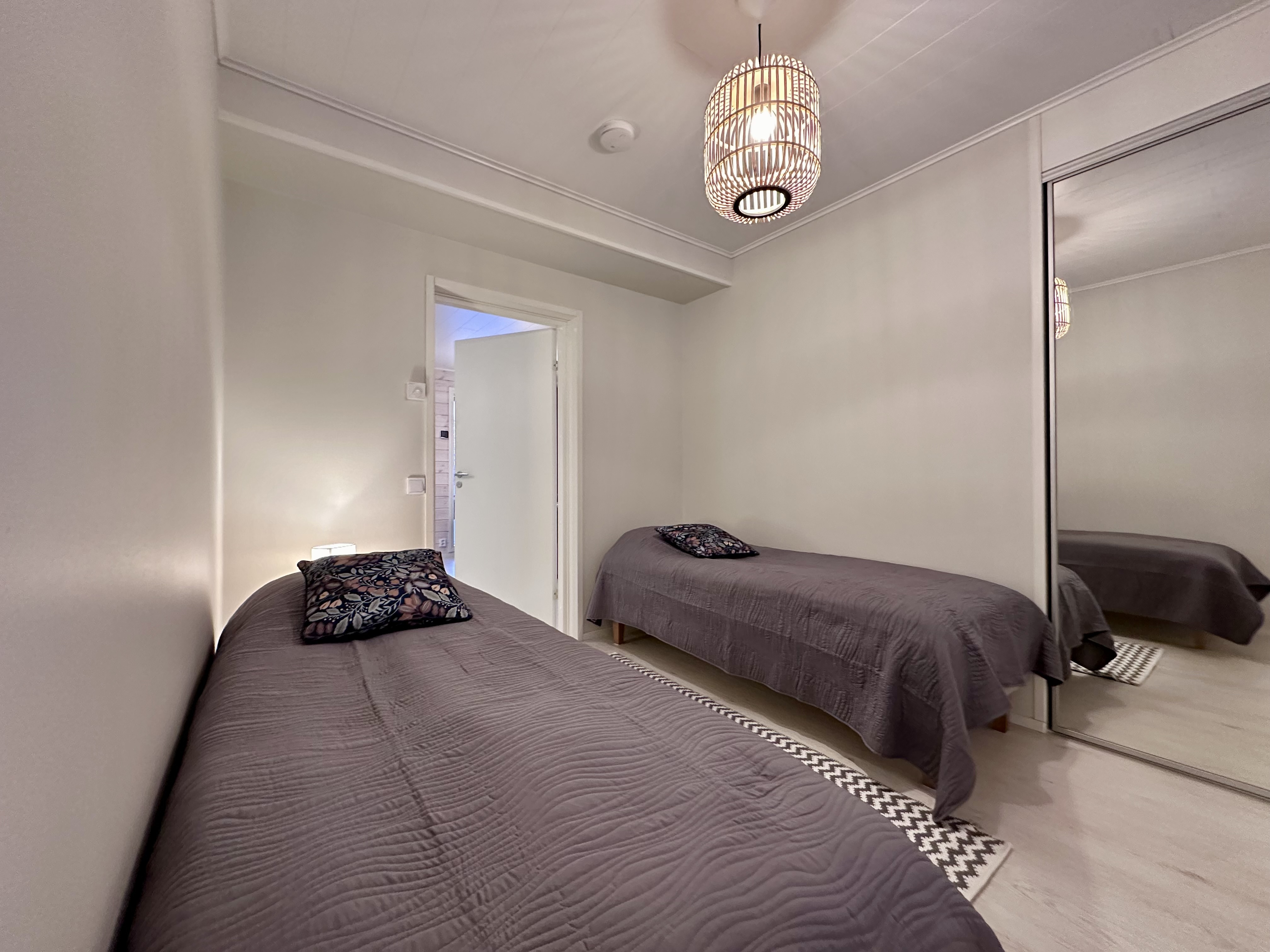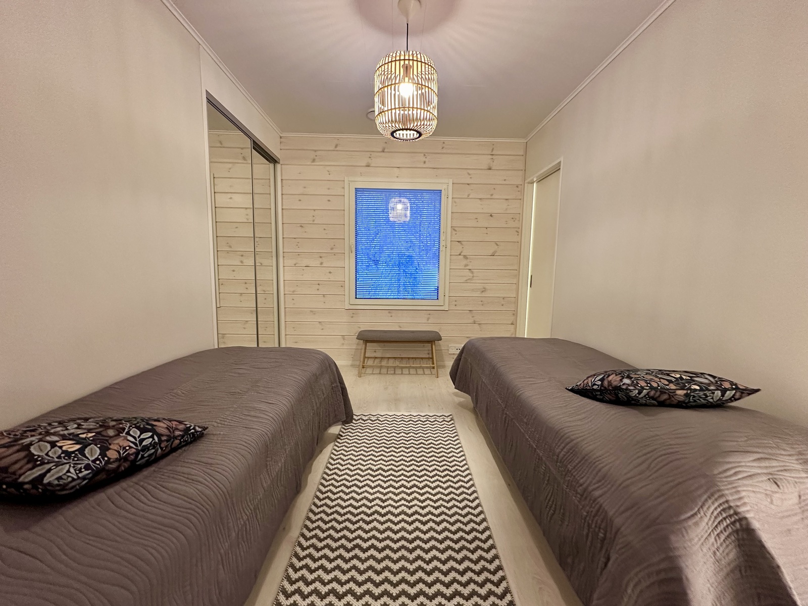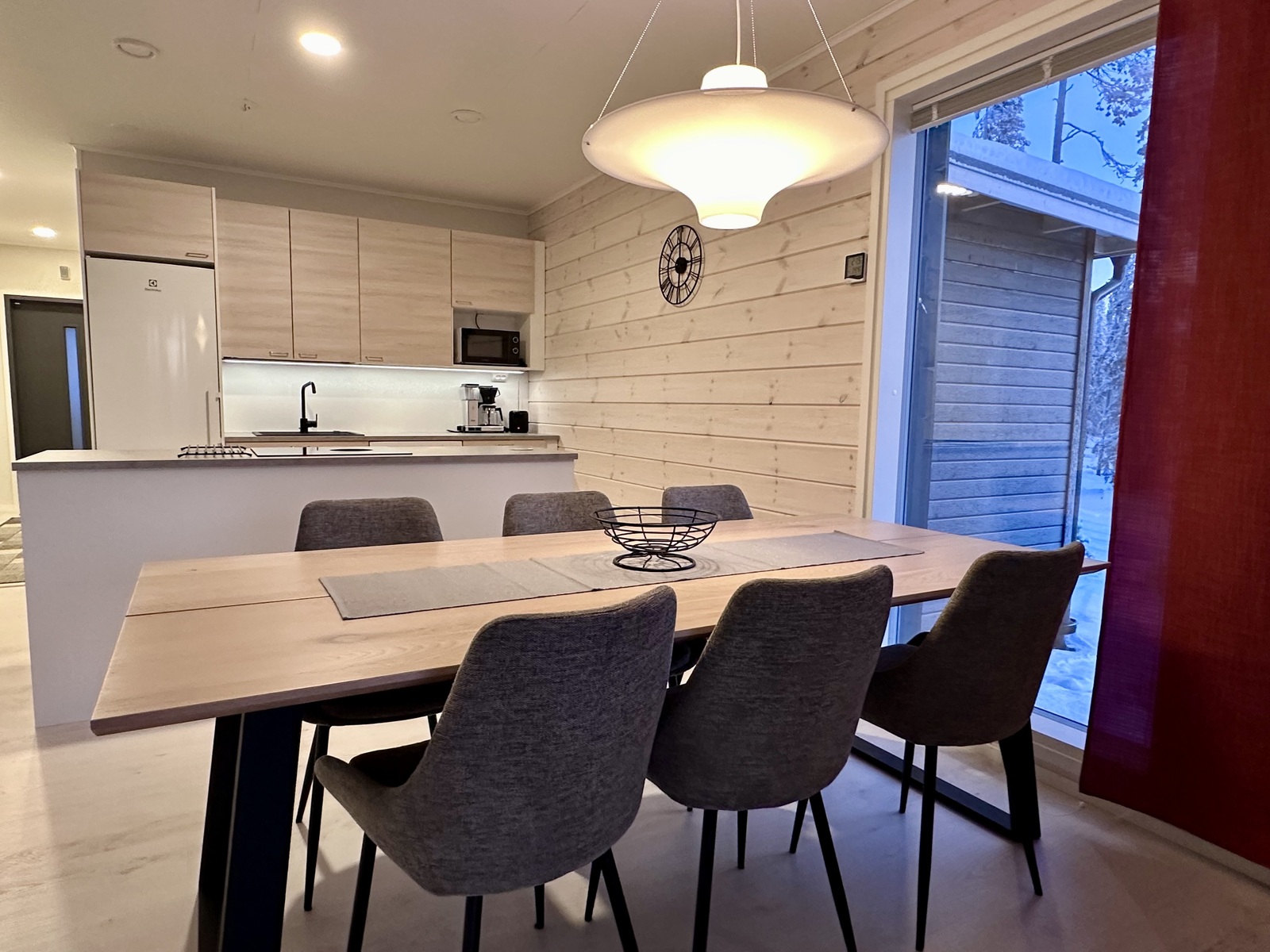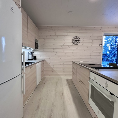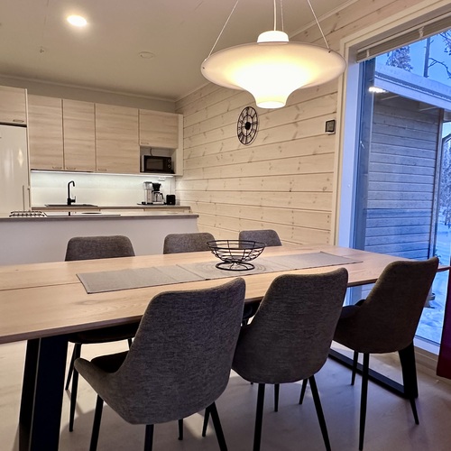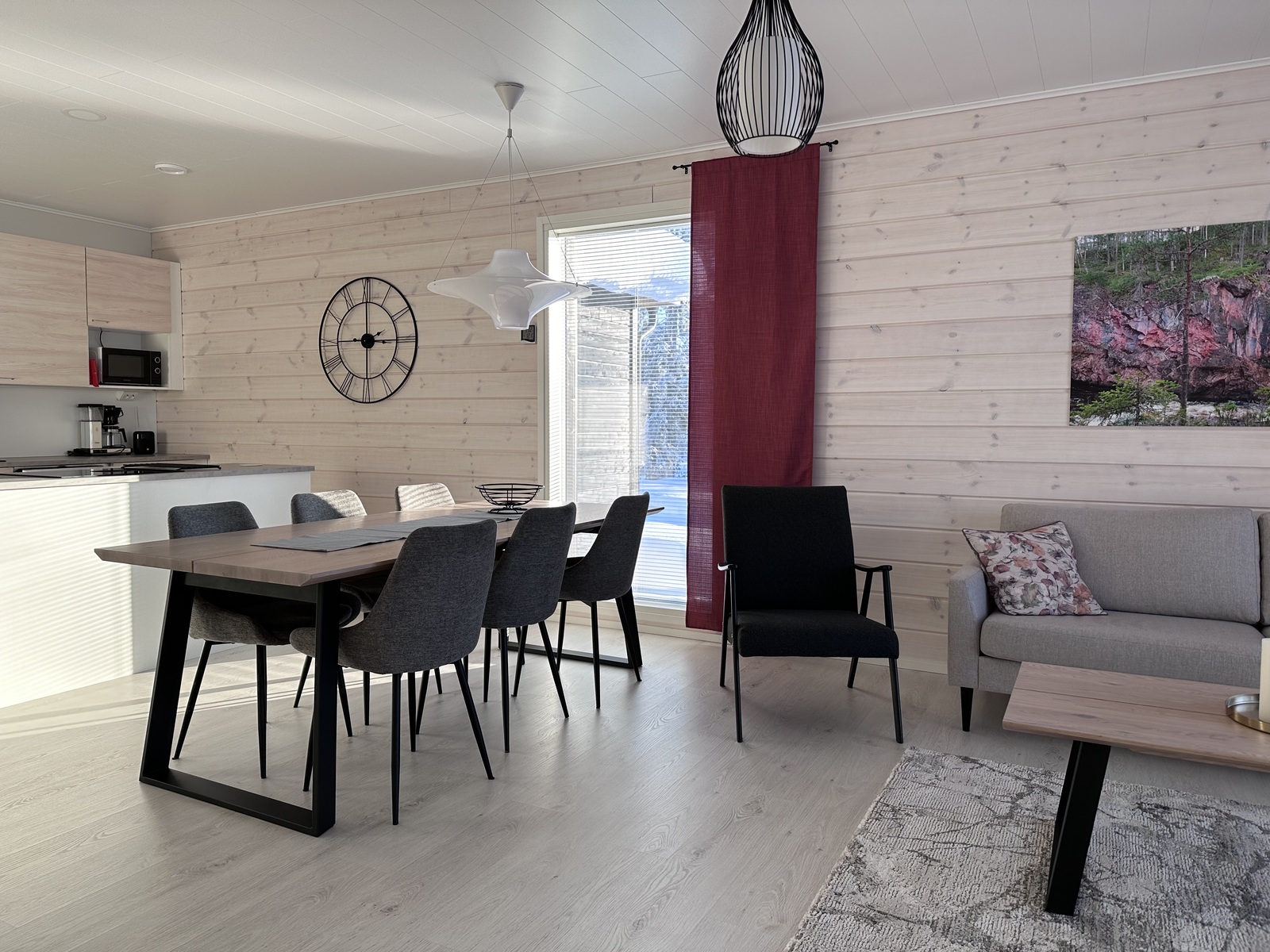 Tämän modernin vapaa-ajan asunnon sydämenä toimii olohuoneen, keittiön ja ruokailutilan muodostama avara kokonaisuus. Tilan suurista ikkunoista säteilee upeasti valoa sisään ja vuodenaikojen mukaan vaihtuvat maisemat maalaavat kuvankauniisti maiseman. Yhtenäinen avoin tila mahdollistaa kokkailun modernissa ja hyvin varustetussa keittiössä samalla perheen ja ystävien kanssa seurustellen. Kolme makuuhuonetta, joista suurimman yhteydessä pesuhuone wc:llä, joten täällä lomailee suurempikin seurue. Upeassa kahdella suihkulla varustetussa kylpyhuoneessa kelpaa rentoutua päivän päätteeksi. Kodinhoitohuone tarjoaa erinomaisesti tilaa vaatehuollolle.