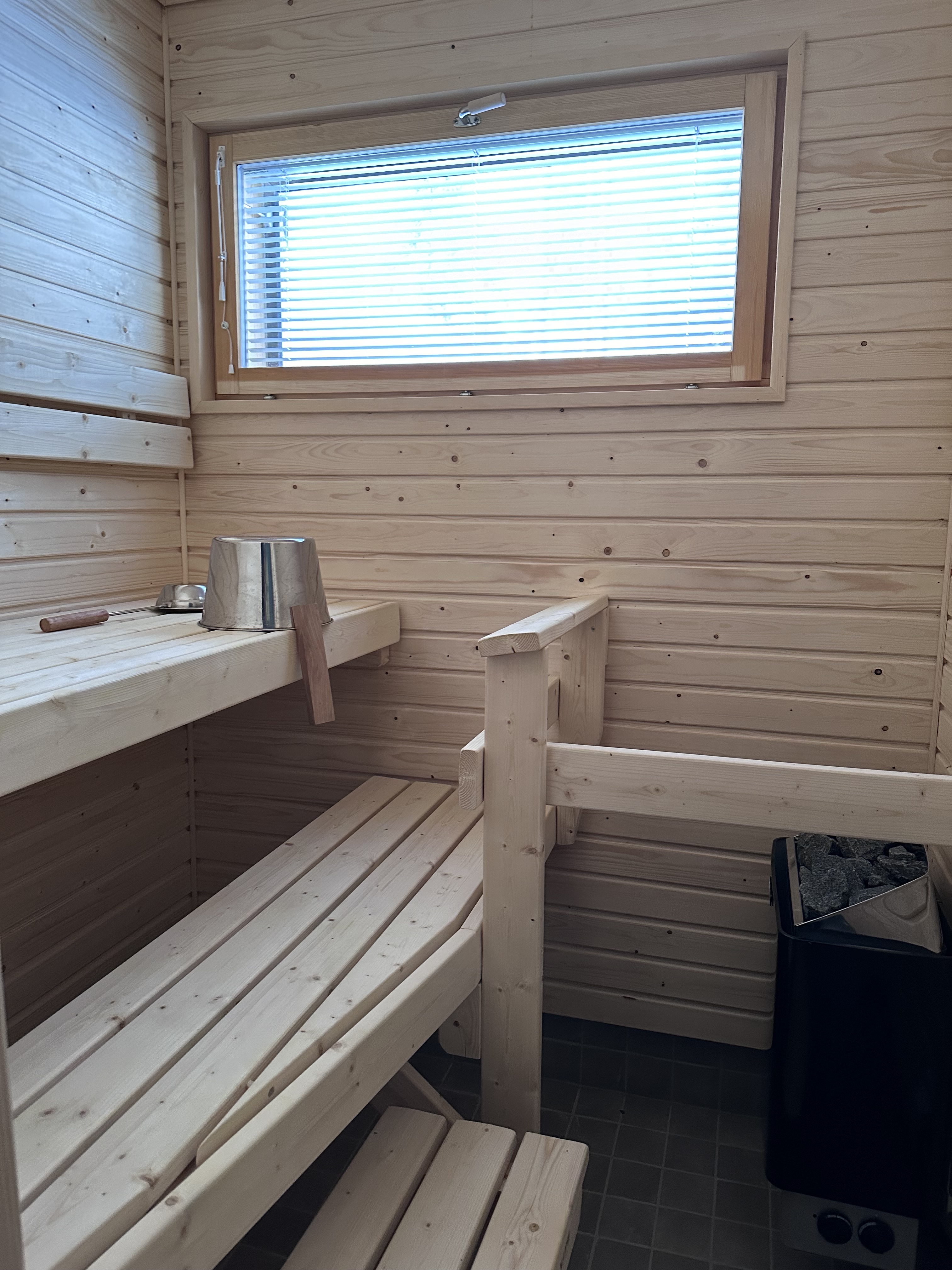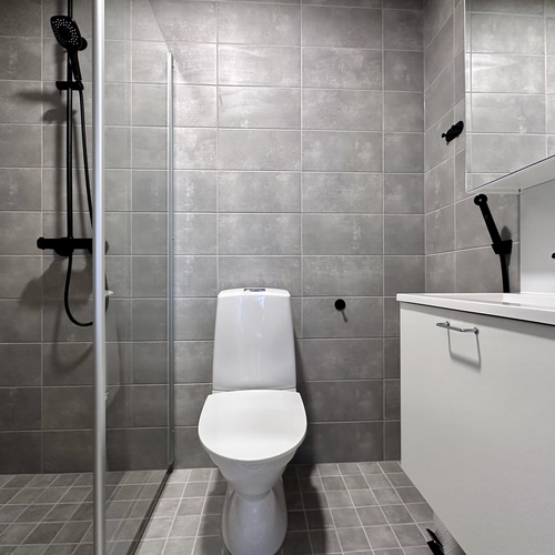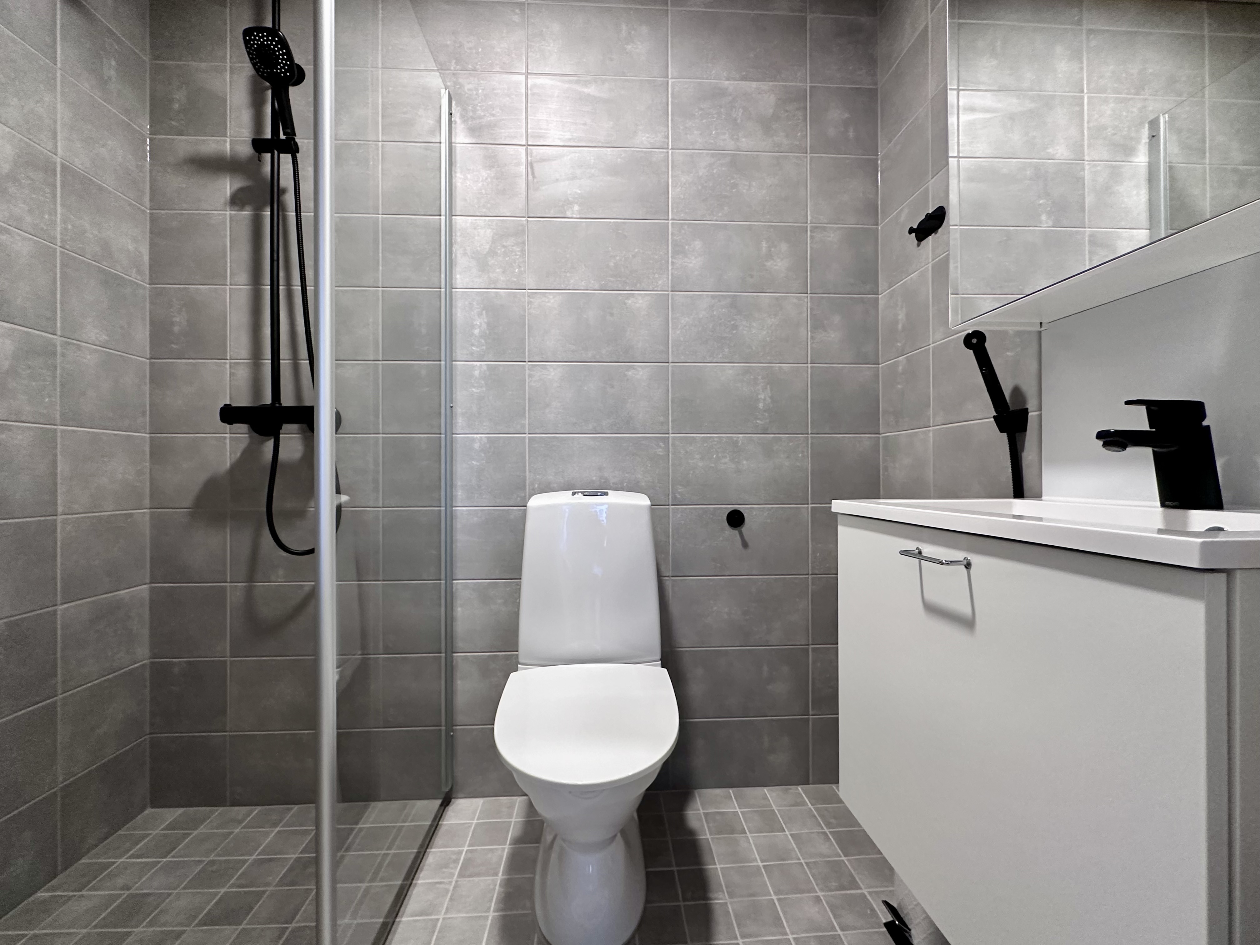 Varusteet: lattialämmitys, lattiakaivo, peilikaappi, bidee-suihku