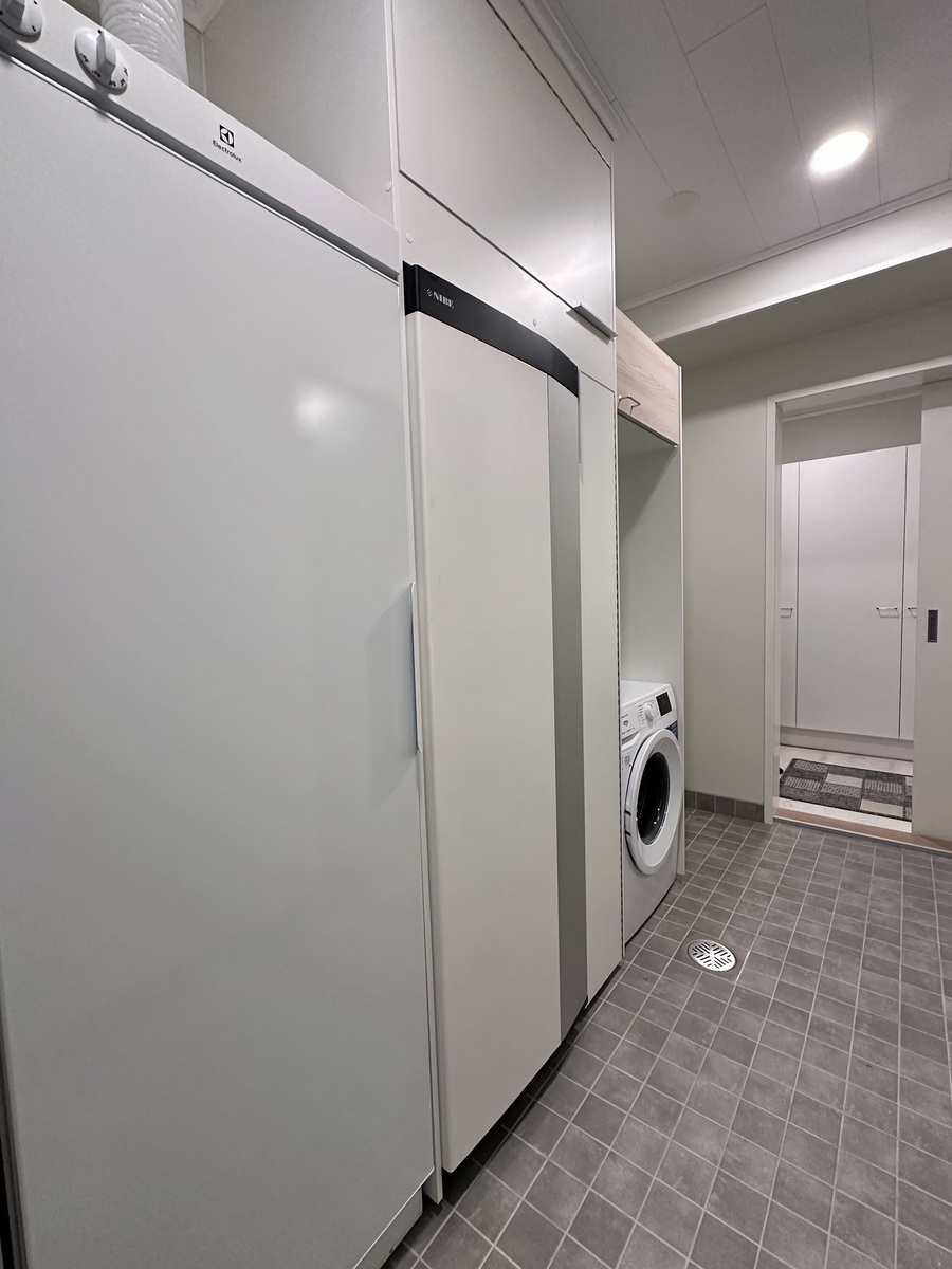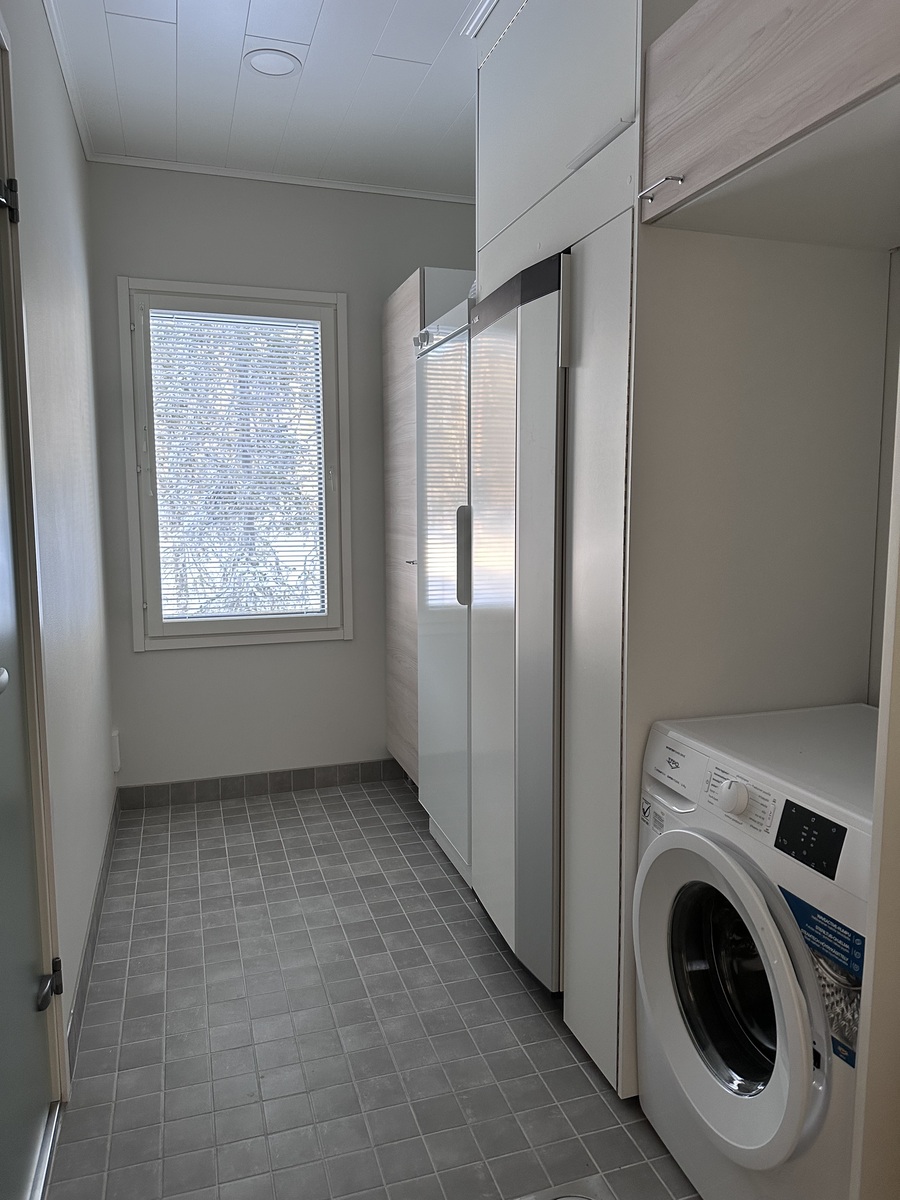 Varusteet: pesukone, pesukoneliitäntä, lattialämmitys, lattiakaivo