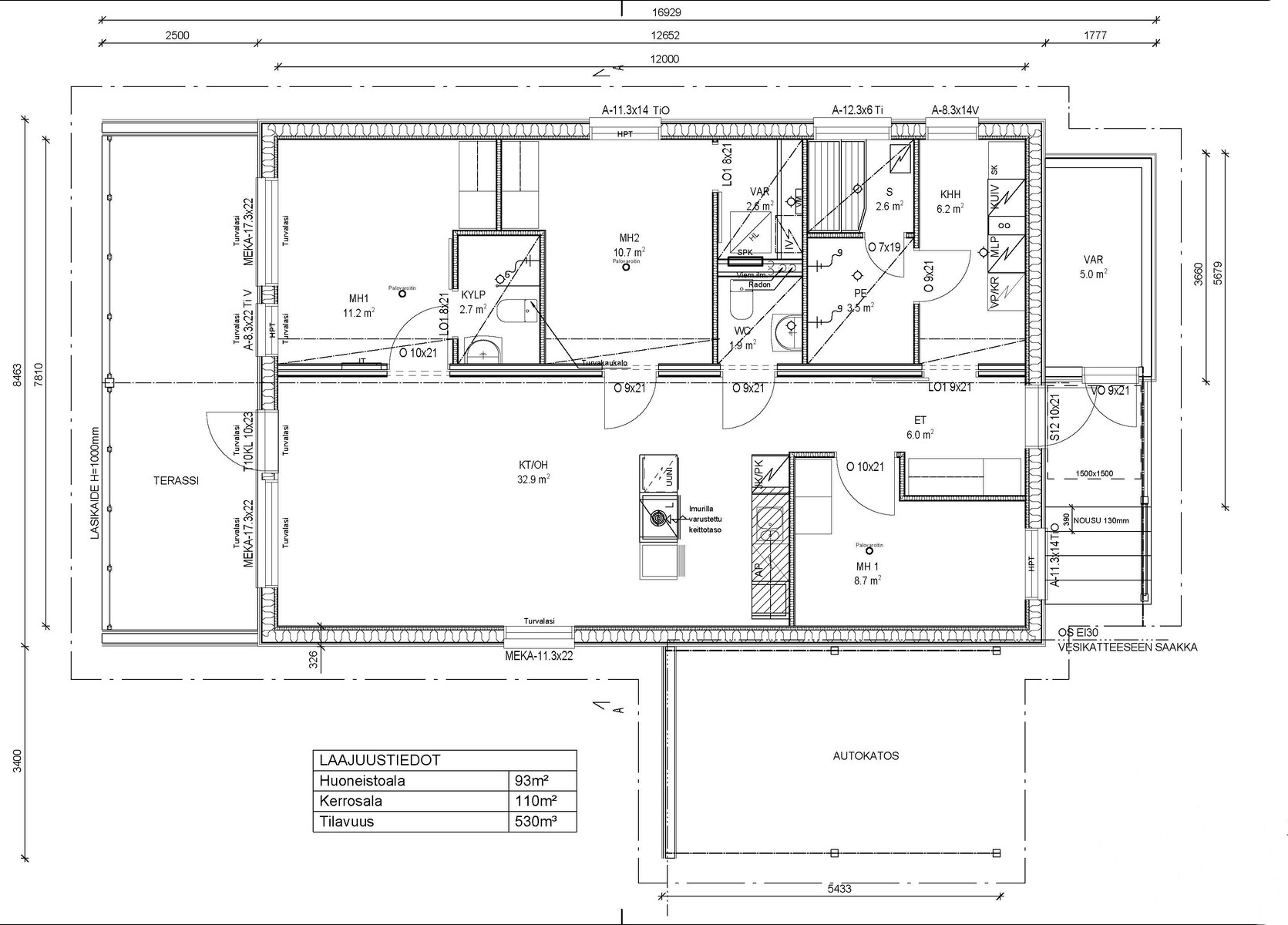 ilmoitettu pinta-alatieto on yhtiöjärjestyksen mukaan ilmoitettu kerrosala, autokatos 25 m²