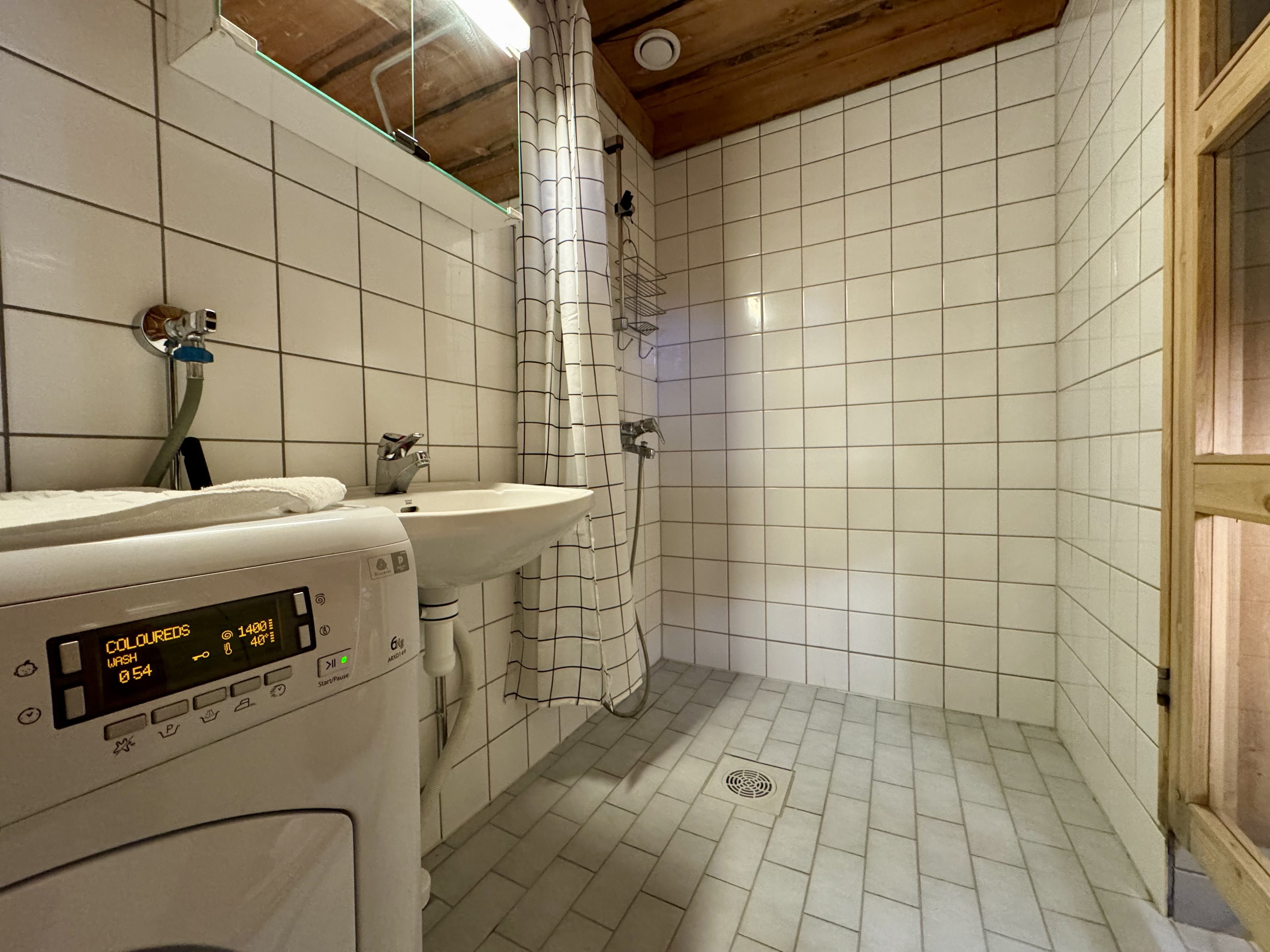 Varusteet: pesukone, pesukoneliitäntä, suihku, peilikaappi, kiinteät valaisimet