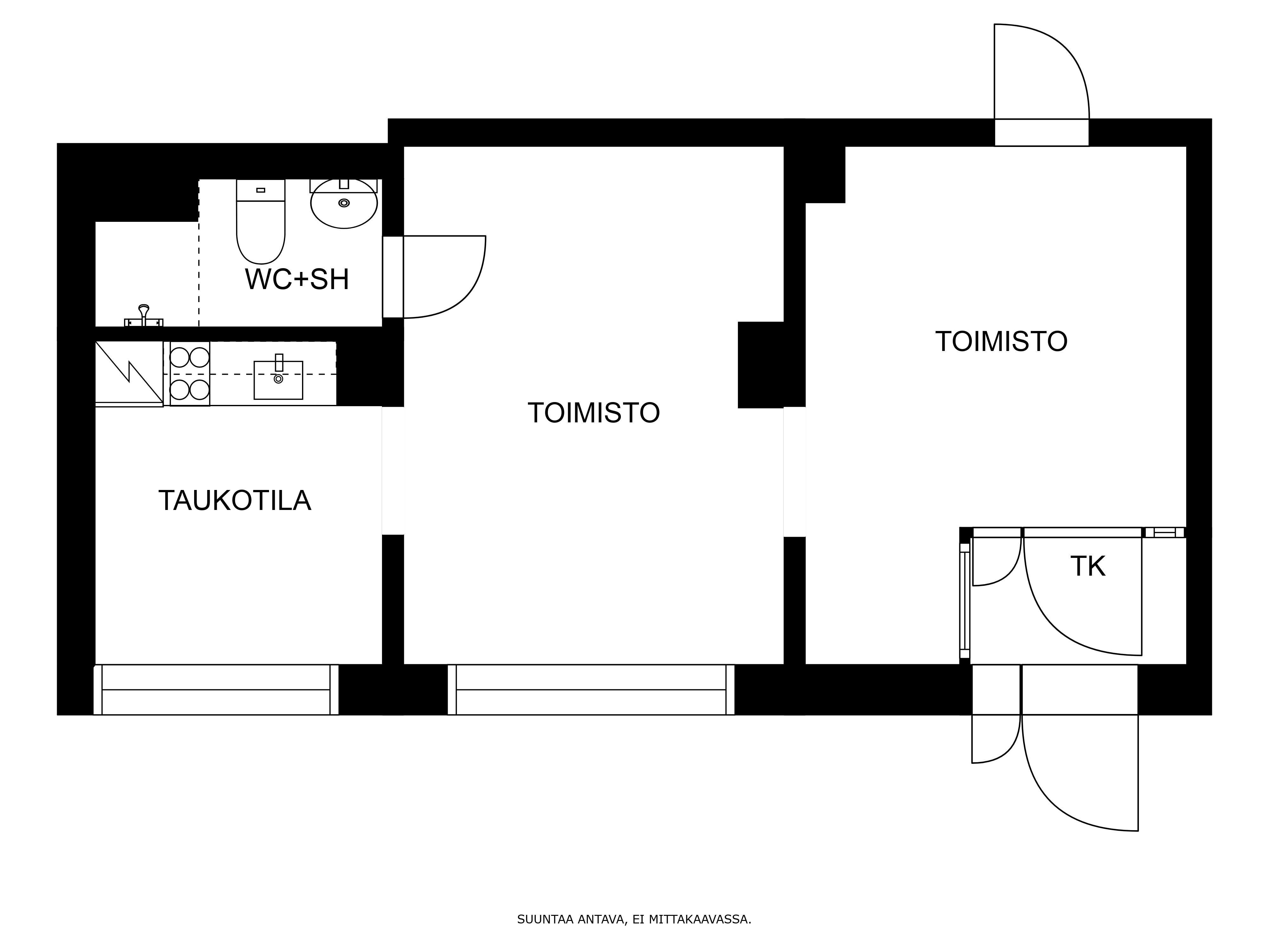2 toimistotilaa, taukotila, wc/ph, 41 m²