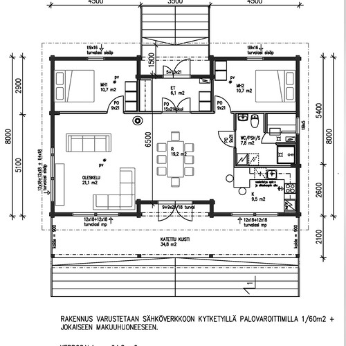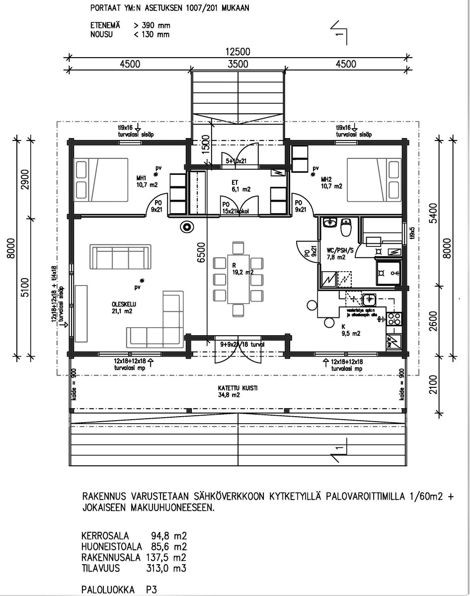 Uusi hirsihuvila 2 mh, oh, k, rt, ph, wc, s + kuisti, 85,60 m²