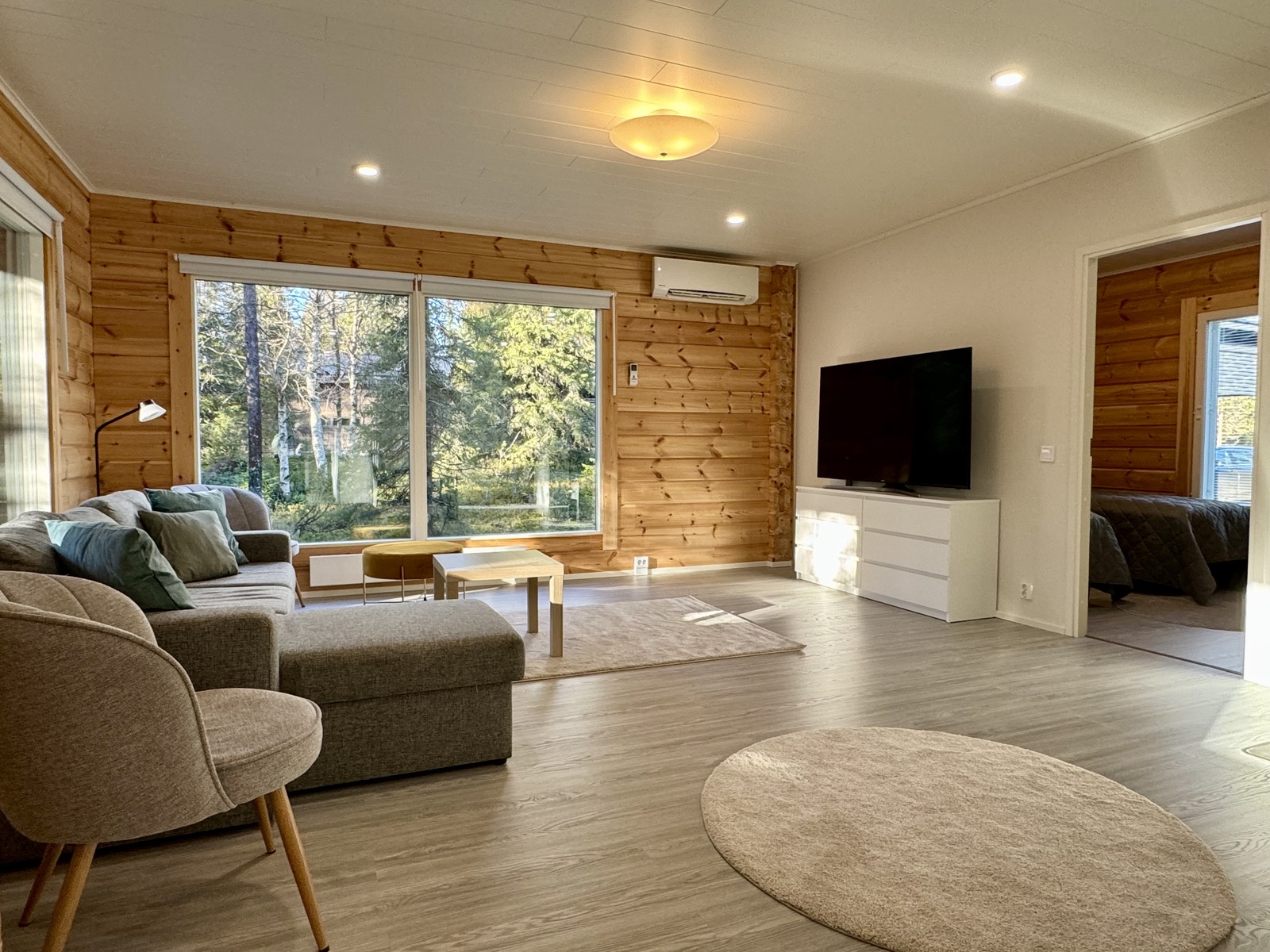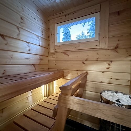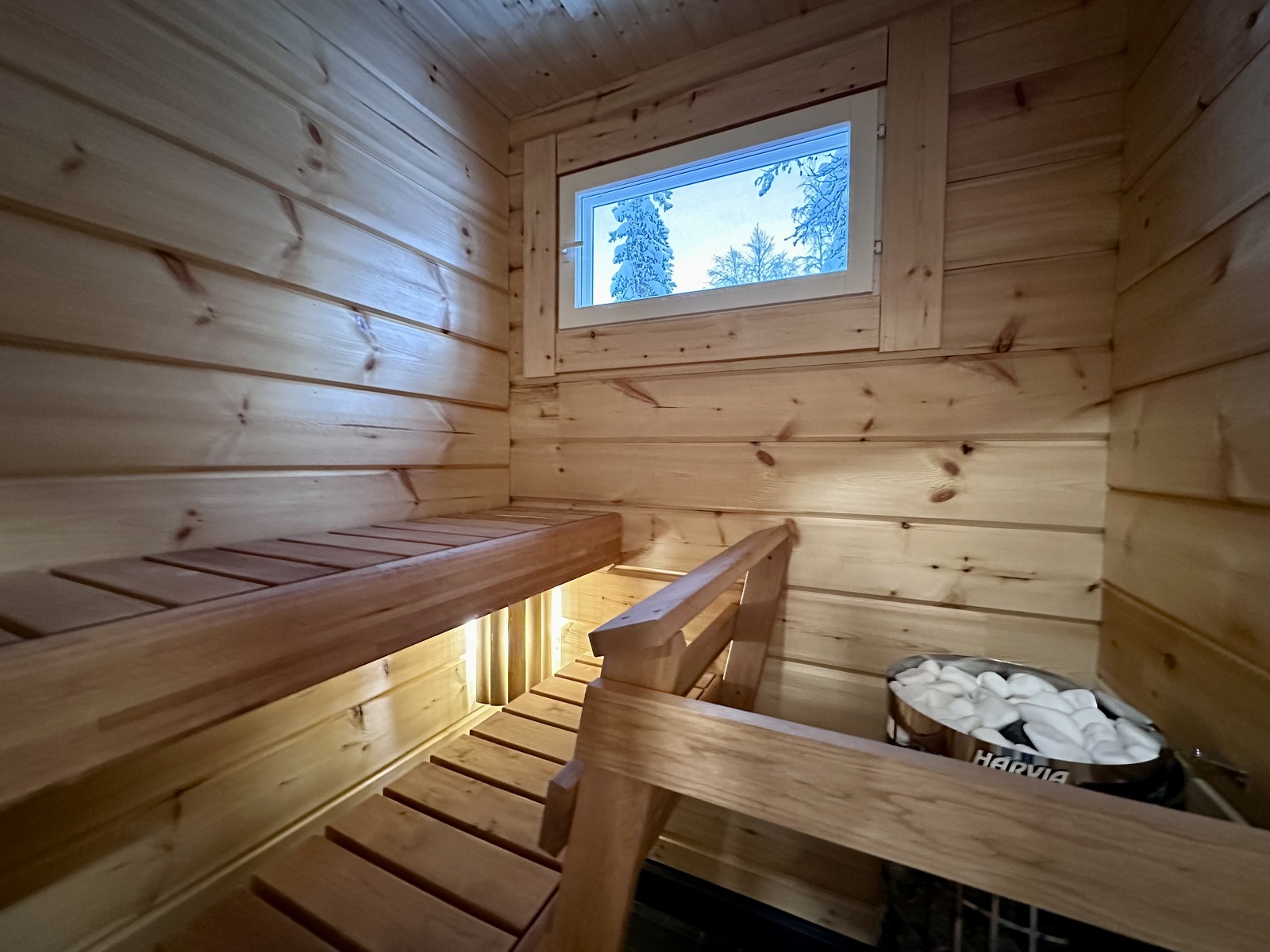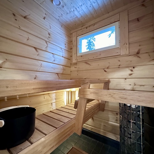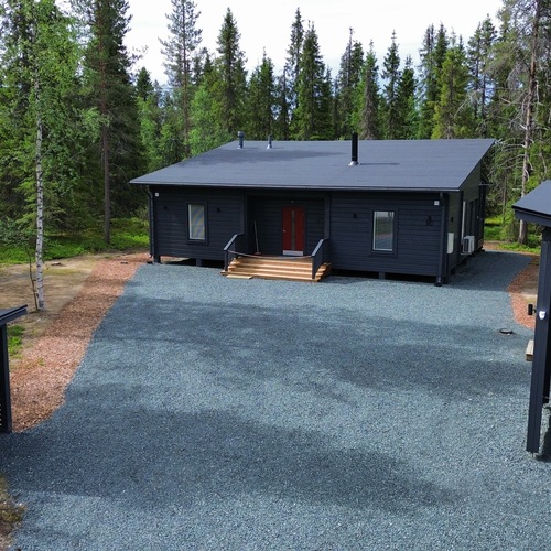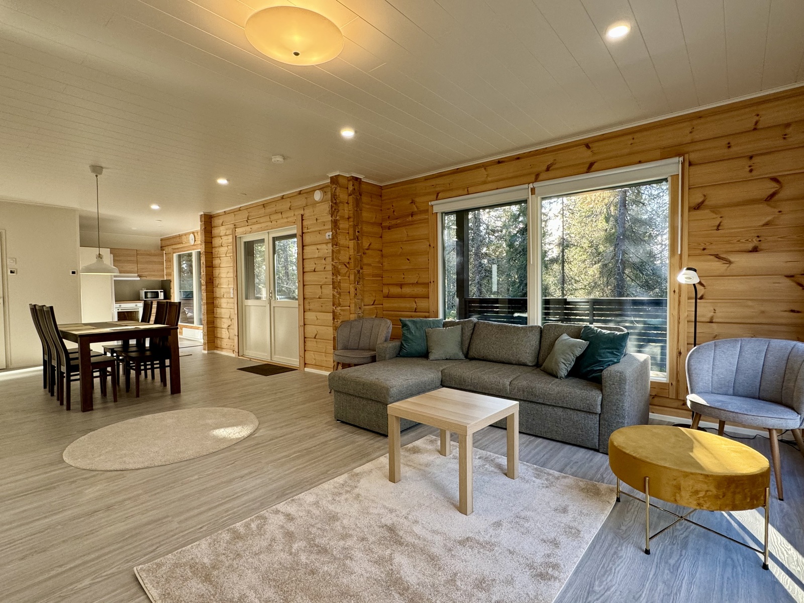 Tammikuussa 2024 valmistunut loma-asunto Rukan vaikutuspiirissä, vain 6 min. (4,3 km) Rukan keskusaukiolta.