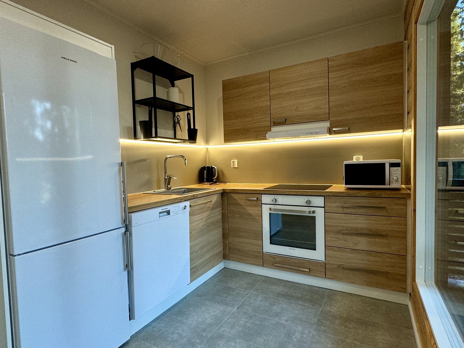 Varusteet: liesituuletin, mikroaaltouuni, astianpesukone