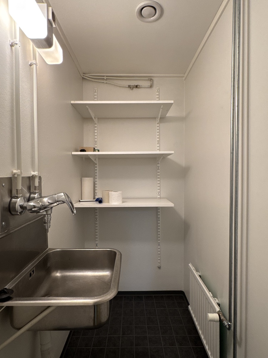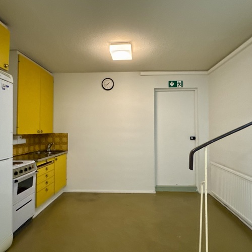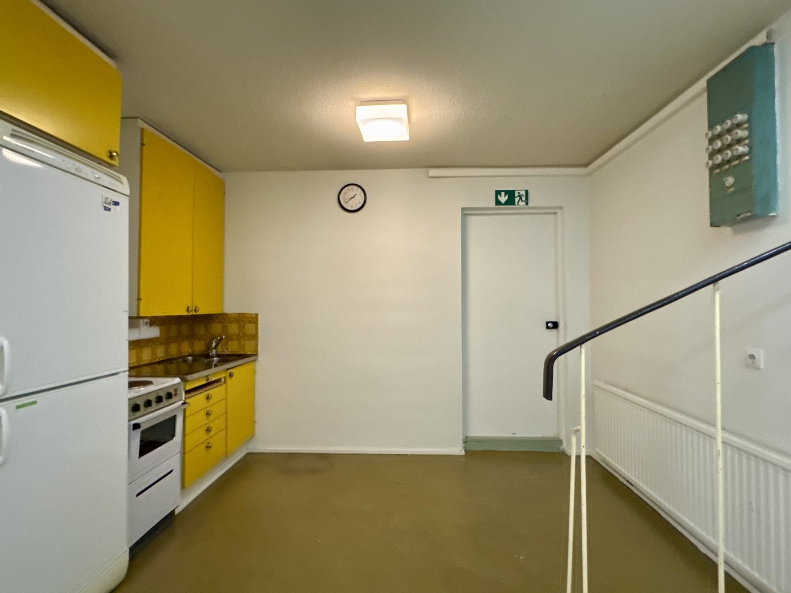 Katutasossa (68 m²) isot ikkunat tuovat hyvän näkyvyyden, alakerrasta (68 m²) löytyvät sosiaalitilat ja varastotilat.