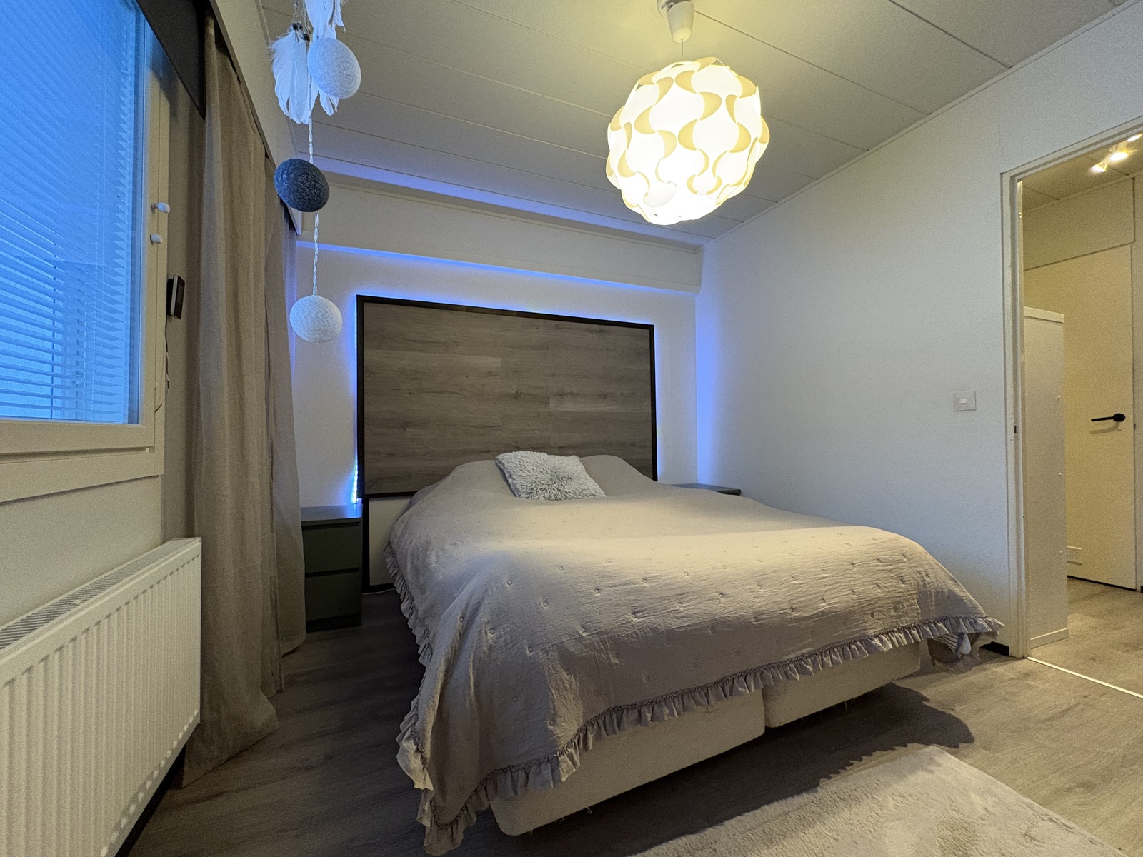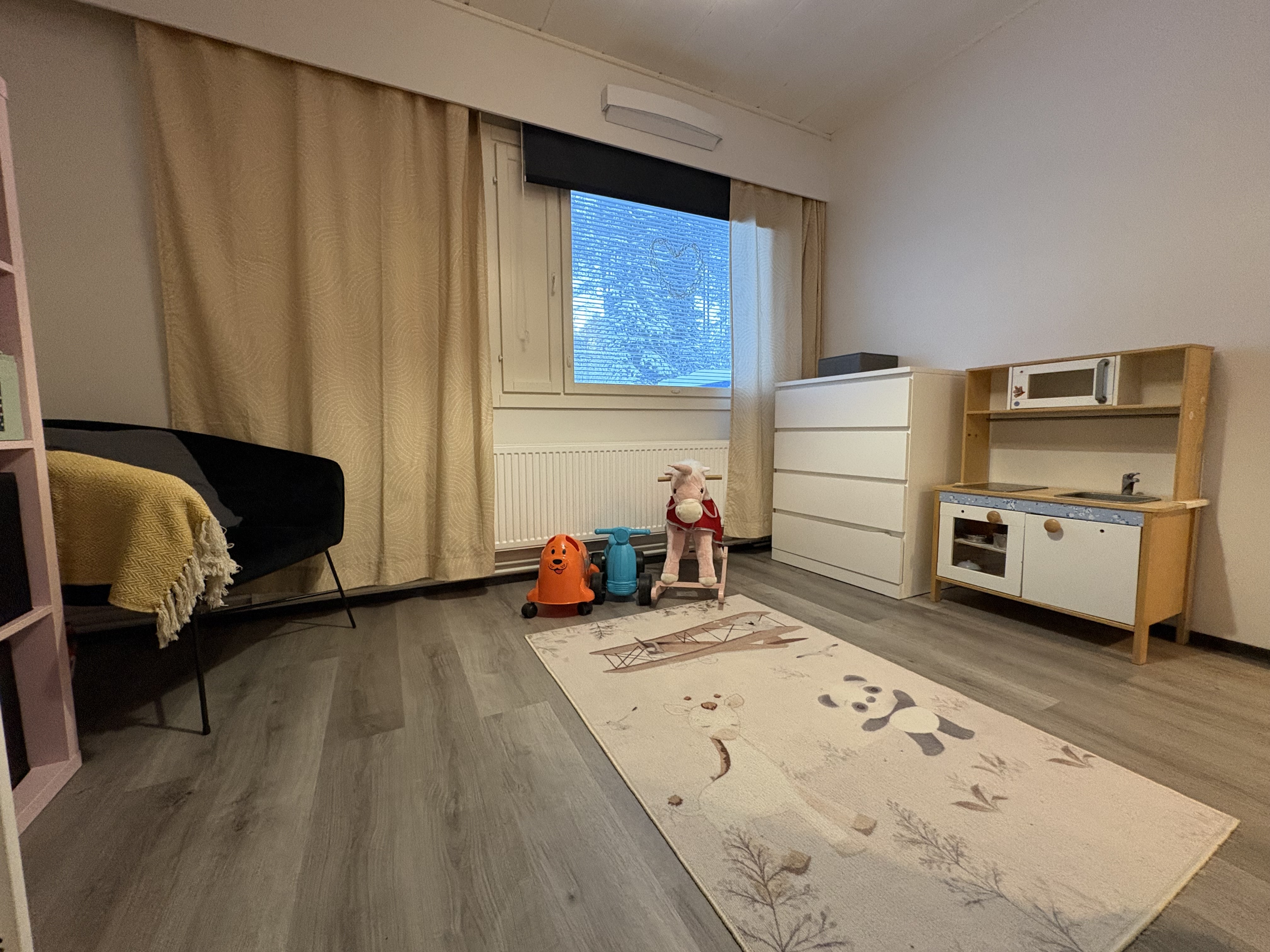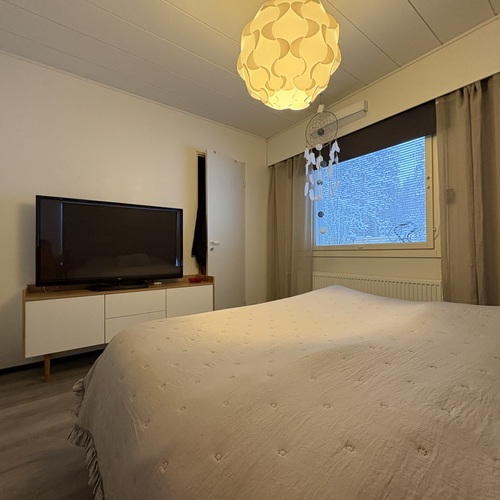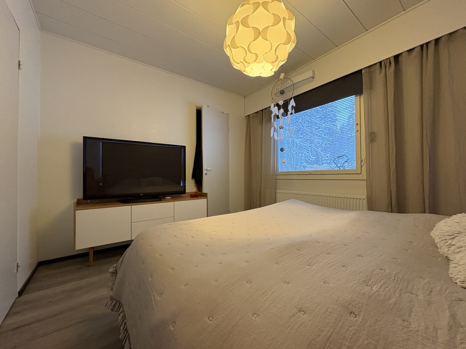 Varusteet: kaapistot, sälekaihtimet/rullaverhot, verhotangot, kiinteät valaisimet, ilmalämpöpumppu