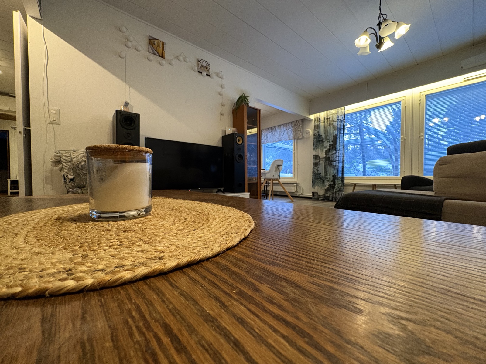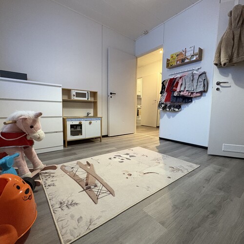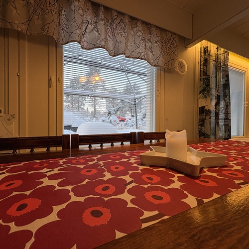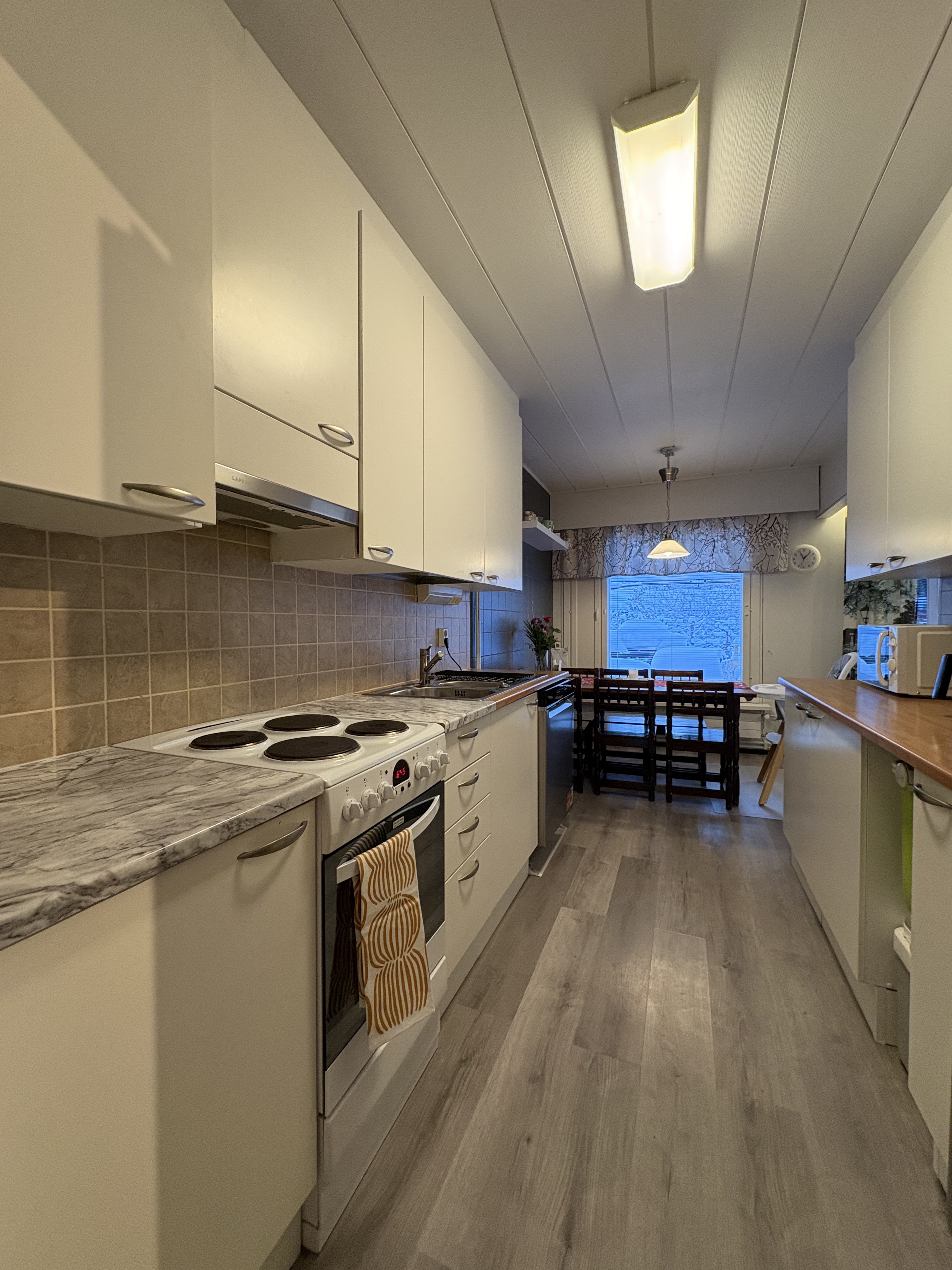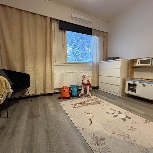 Varusteet: kaapistot, sälekaihtimet/rullaverhot, verhotangot, kiinteät valaisimet, ilmalämpöpumppu