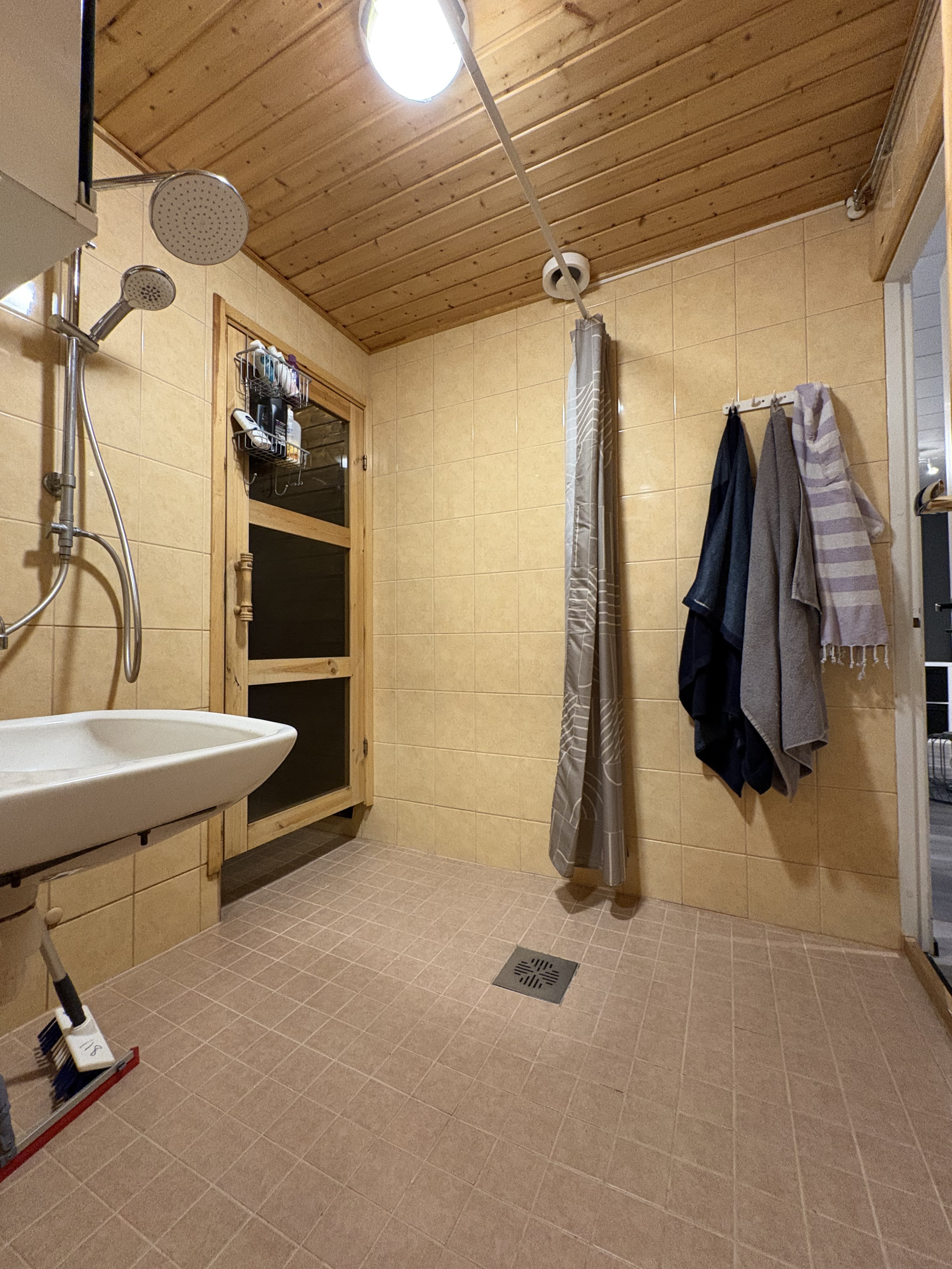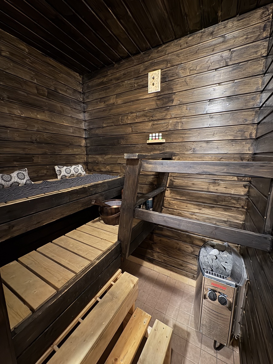 Sähkökiuaskiuas mahdollista vaihtaa puukiukaaseen, hormi valmiina